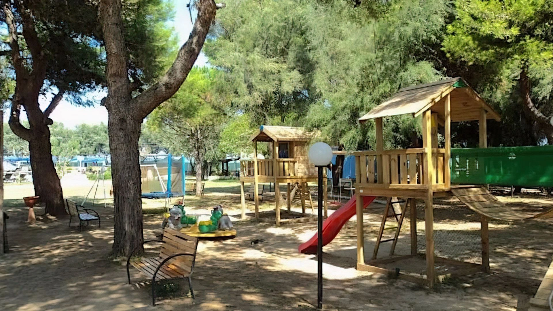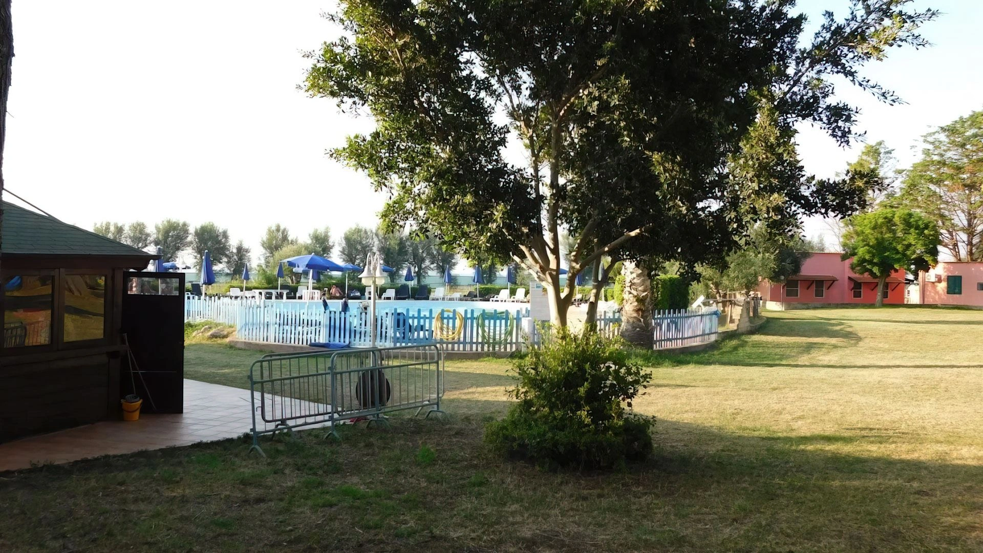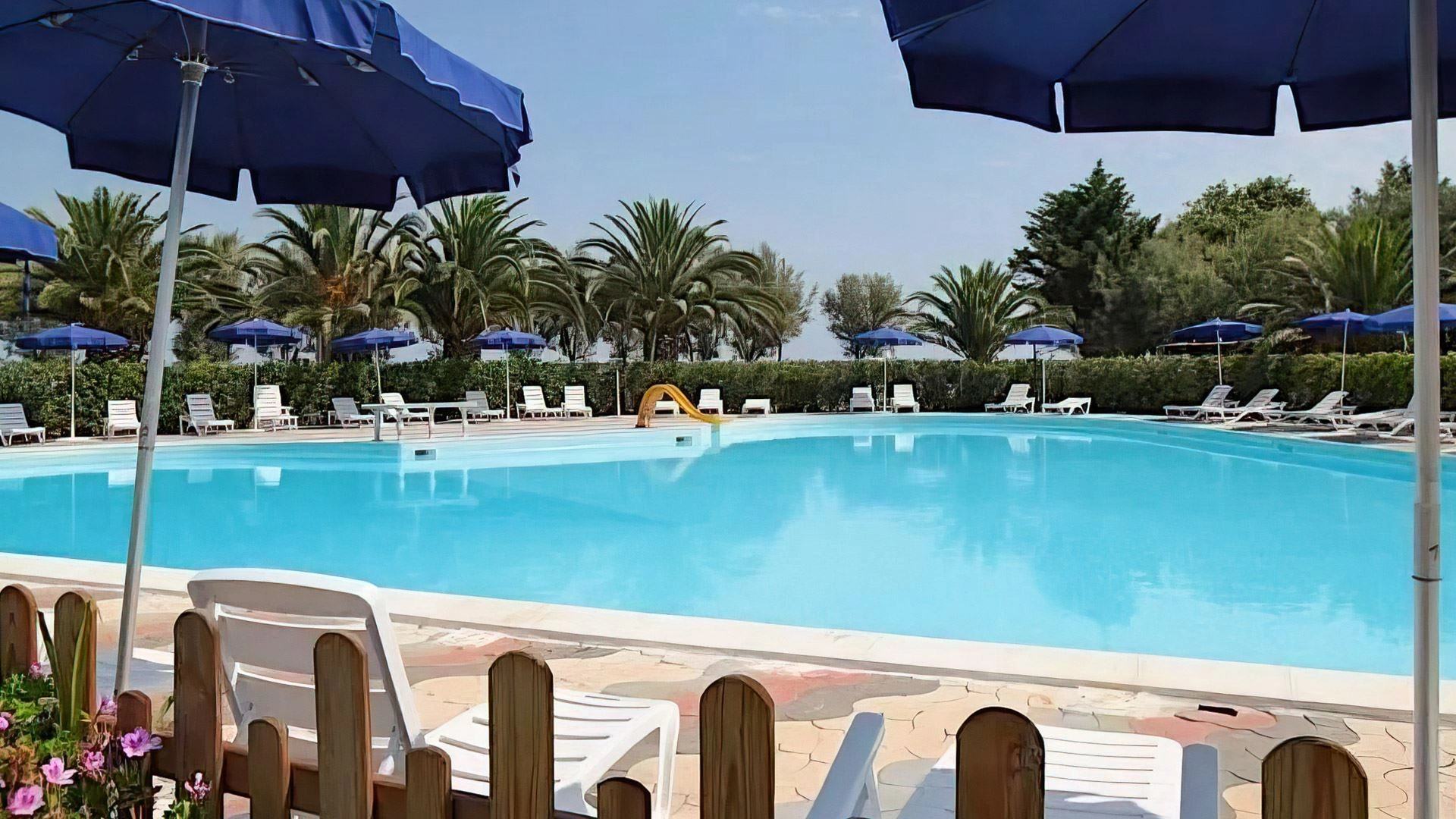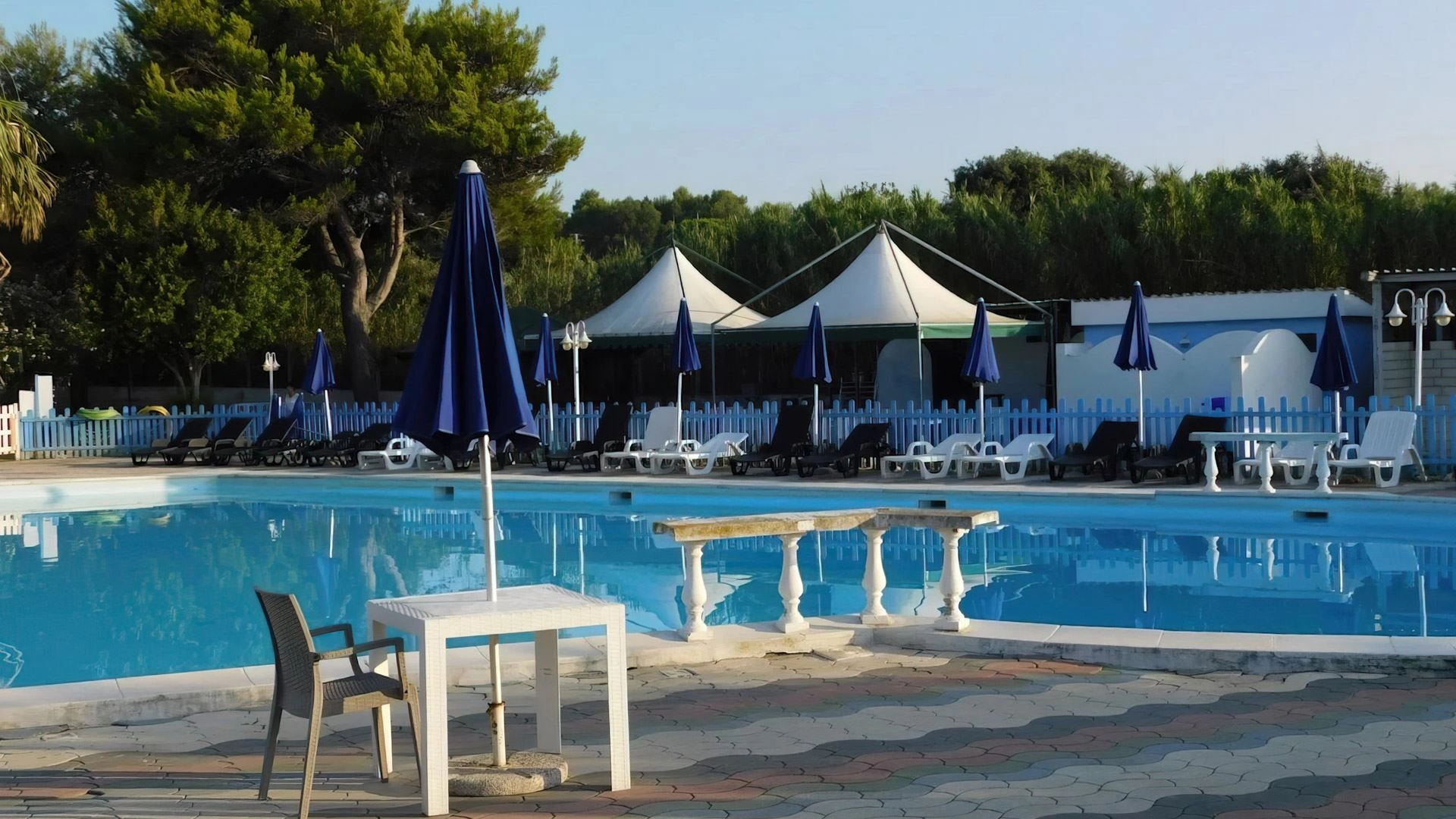 Surrounded by greenery within the residence area there is a heart-shaped swimming pool accessible to all ages. The surrounding area is used as a solarium with sunbeds and umbrellas. Rescue service present.