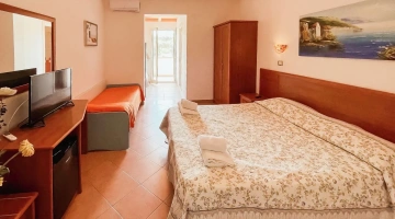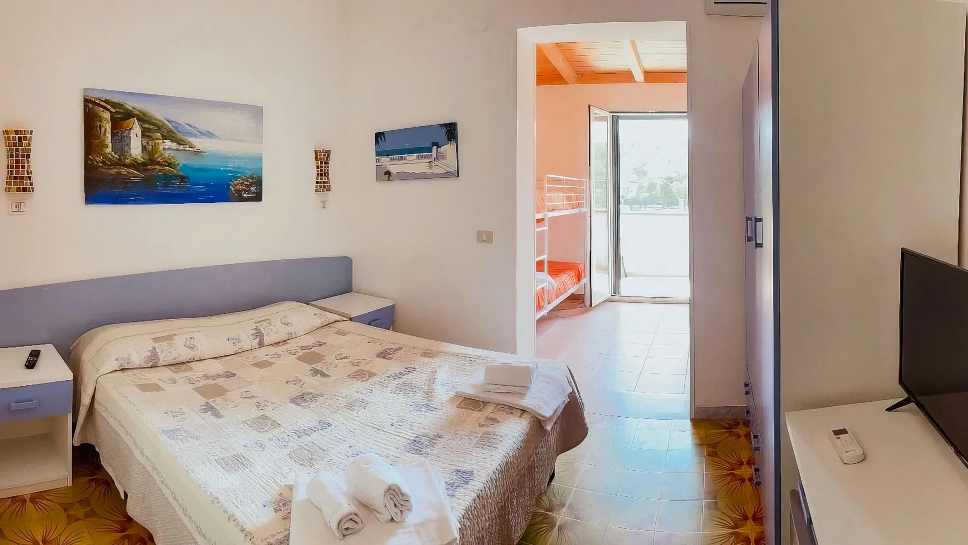 All the rooms present, available in double, triple and quadruple variants, are equipped with Wi-Fi connection, air conditioning, minibar, TV and bathroom with shower cubicle and wall-mounted hairdryer. Some rooms have balconies and enjoy sea views.
