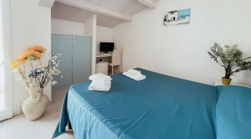 The apartments available in residence formula are located a few minutes walk from the main building and are equipped with air conditioning, TV, living area with equipped kitchen and furnished veranda.