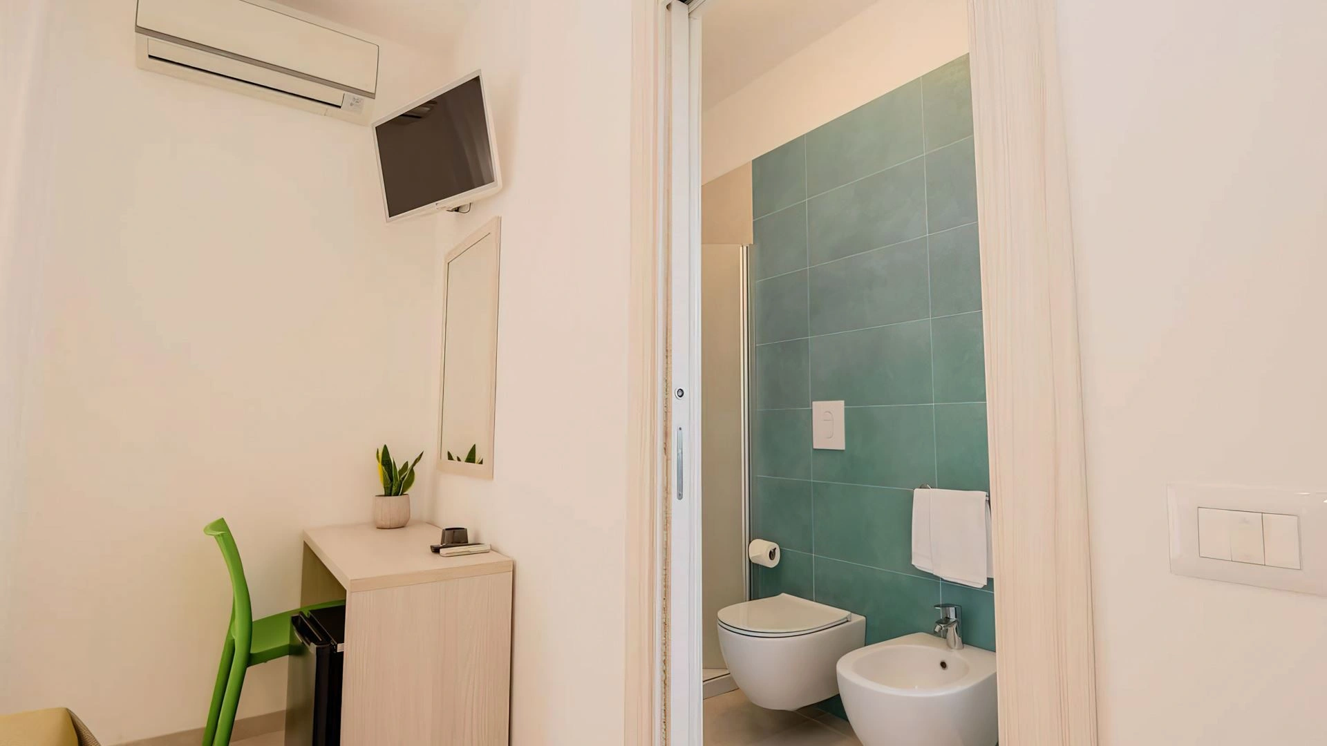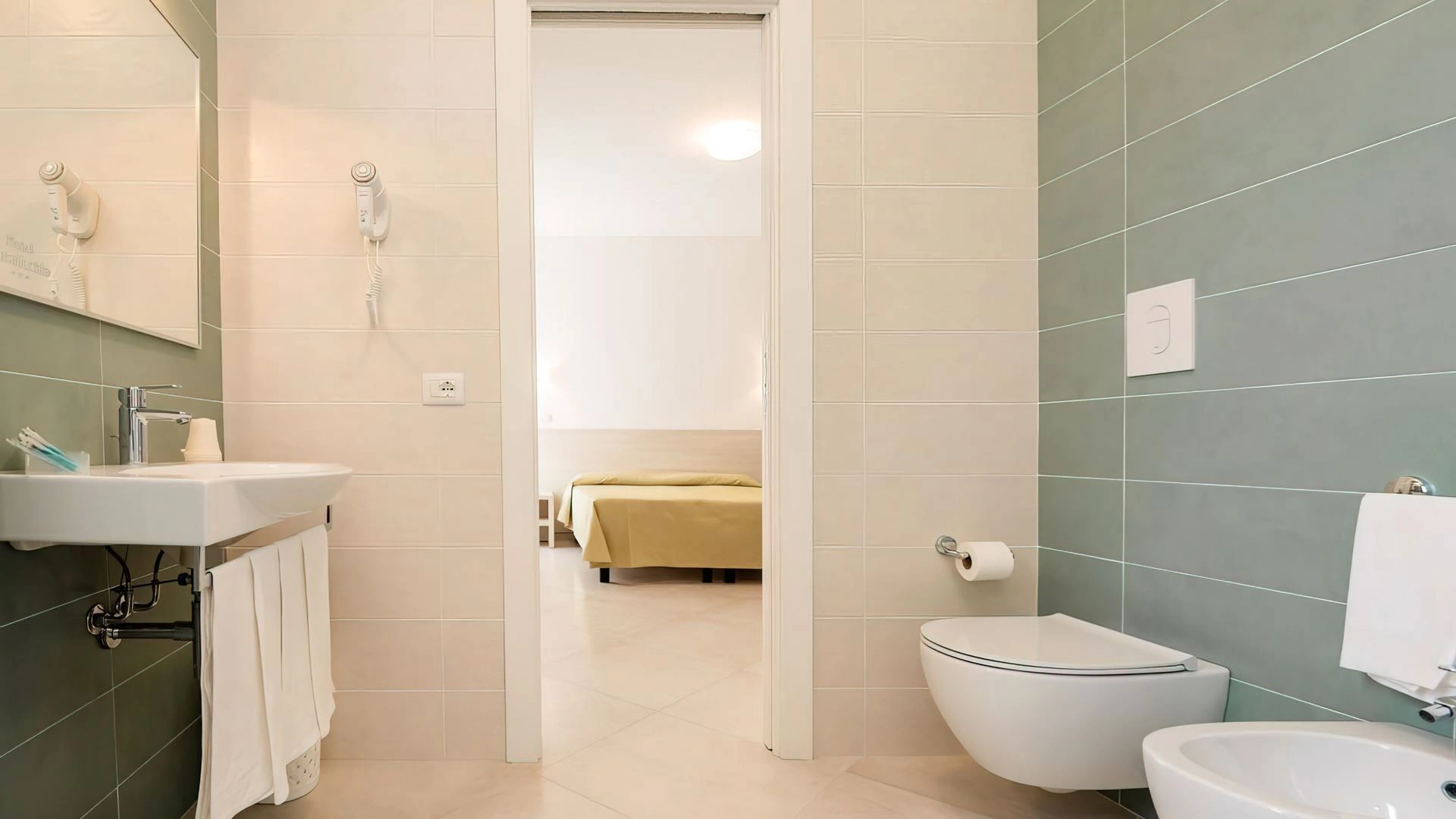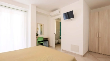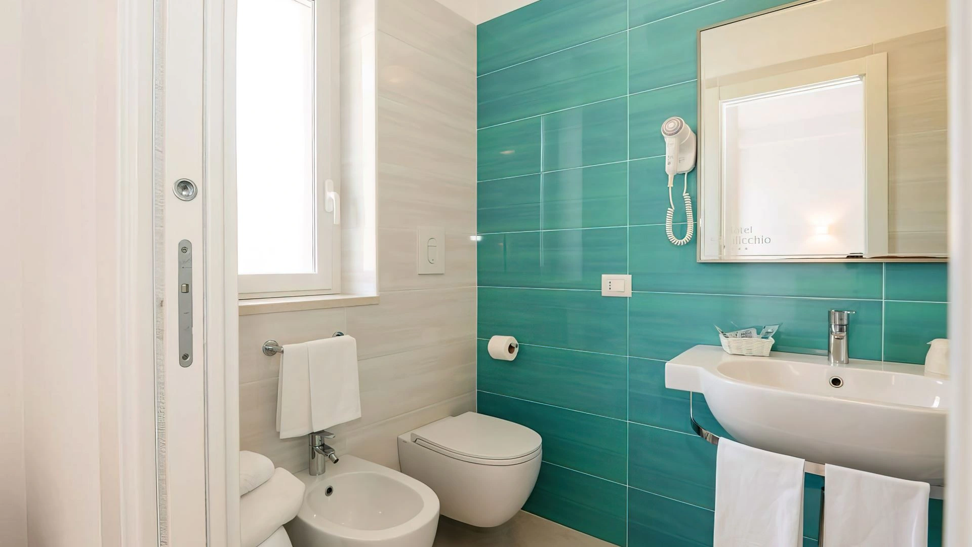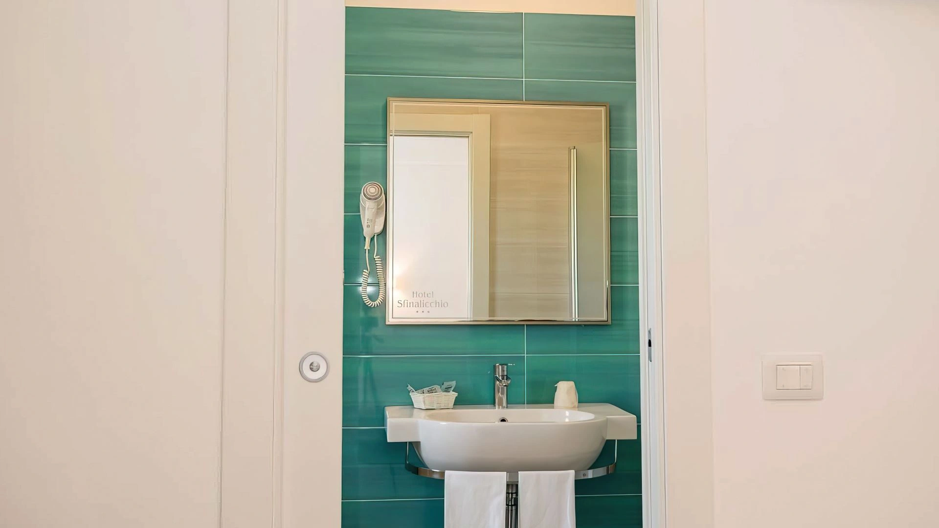 The rooms at Hotel Sfinalicchio have a balcony or terrace, air conditioning, Wi-Fi connection, satellite TV, safe, minibar and private bathroom with shower cubicle, courtesy set and hairdryer.