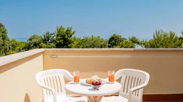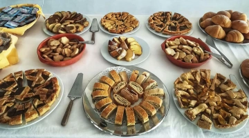 A breakfast buffet with sweet and savory foods is set up every morning. At meals, traditional national and local recipes are offered, made with fresh and selected ingredients. All accompanied by a list of wines found in the area.