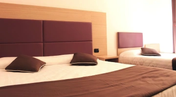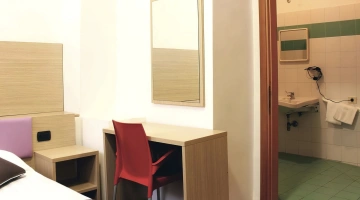 The 11 rooms of the Hotel Esperanza are sober and bright, with parquet floors and modern furnishings. They can accommodate from one to four people and are all equipped with: private bathroom with shower, courtesy set, hairdryer, independent air conditioning and heating, free Wi-Fi connection, flat-screen TV and electric kettle. Some rooms have a minibar and/or a small terrace with a view over the roofs of the historic centre.