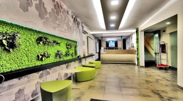 The hotel offers private paid parking with valet service. There is a furnished veranda, a bar and a reading room. The building is covered by Wi-Fi in all rooms and is served by a lift.