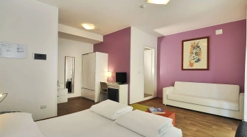 Some rooms offer a sofa for greater relaxation, while others are equipped with a sofa bed, ideal for those who need additional beds.