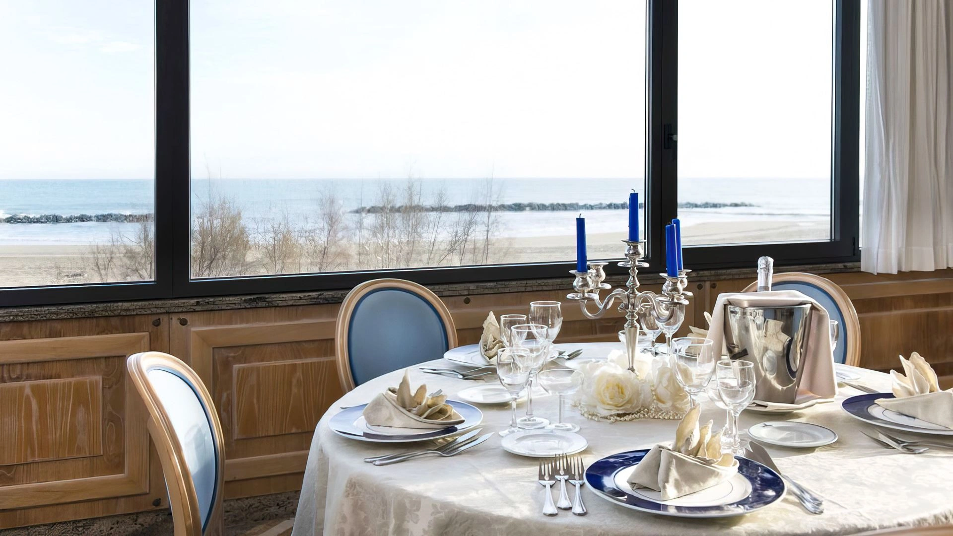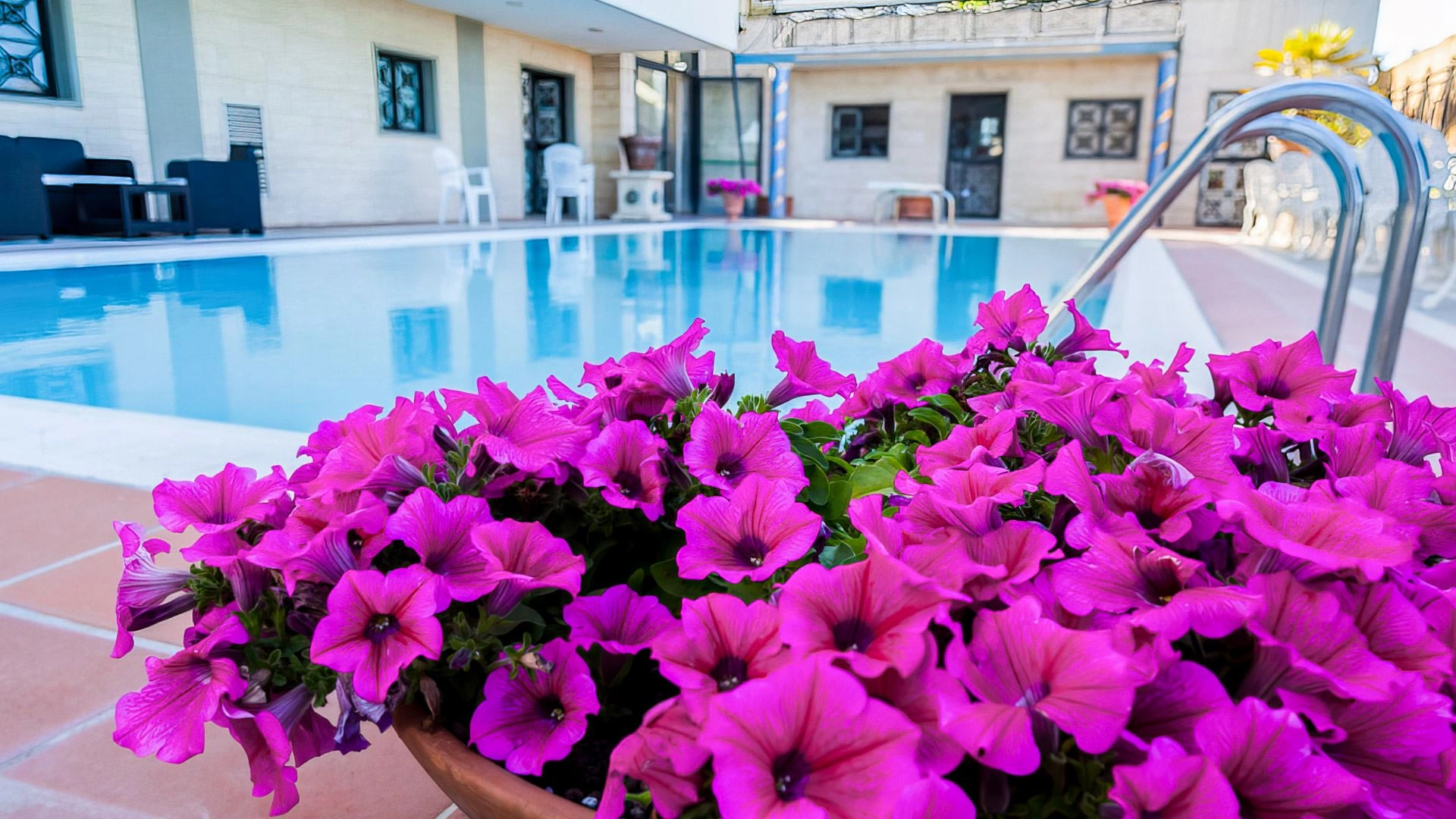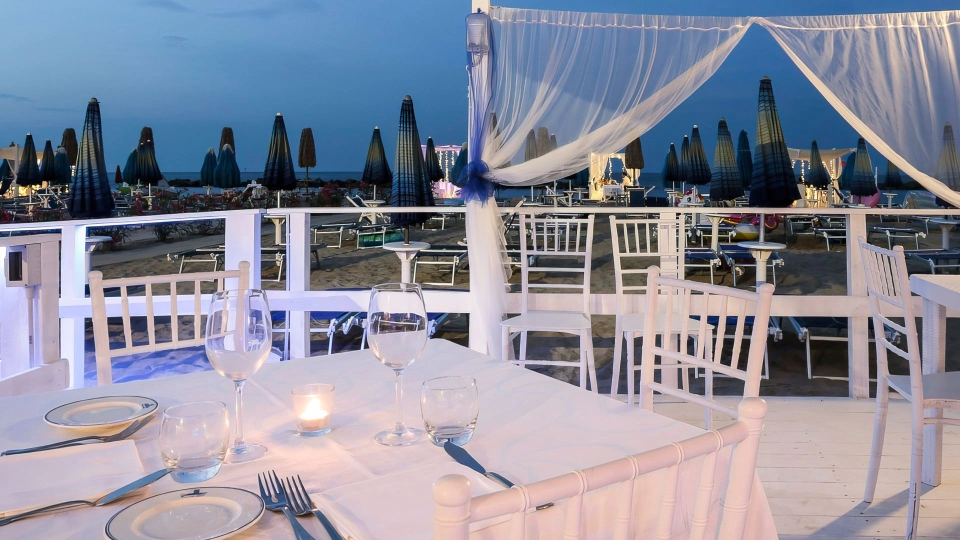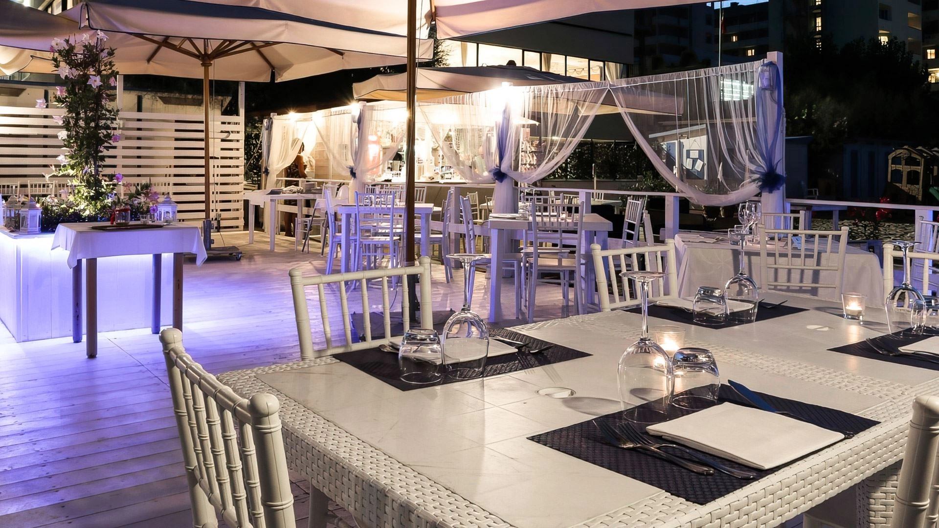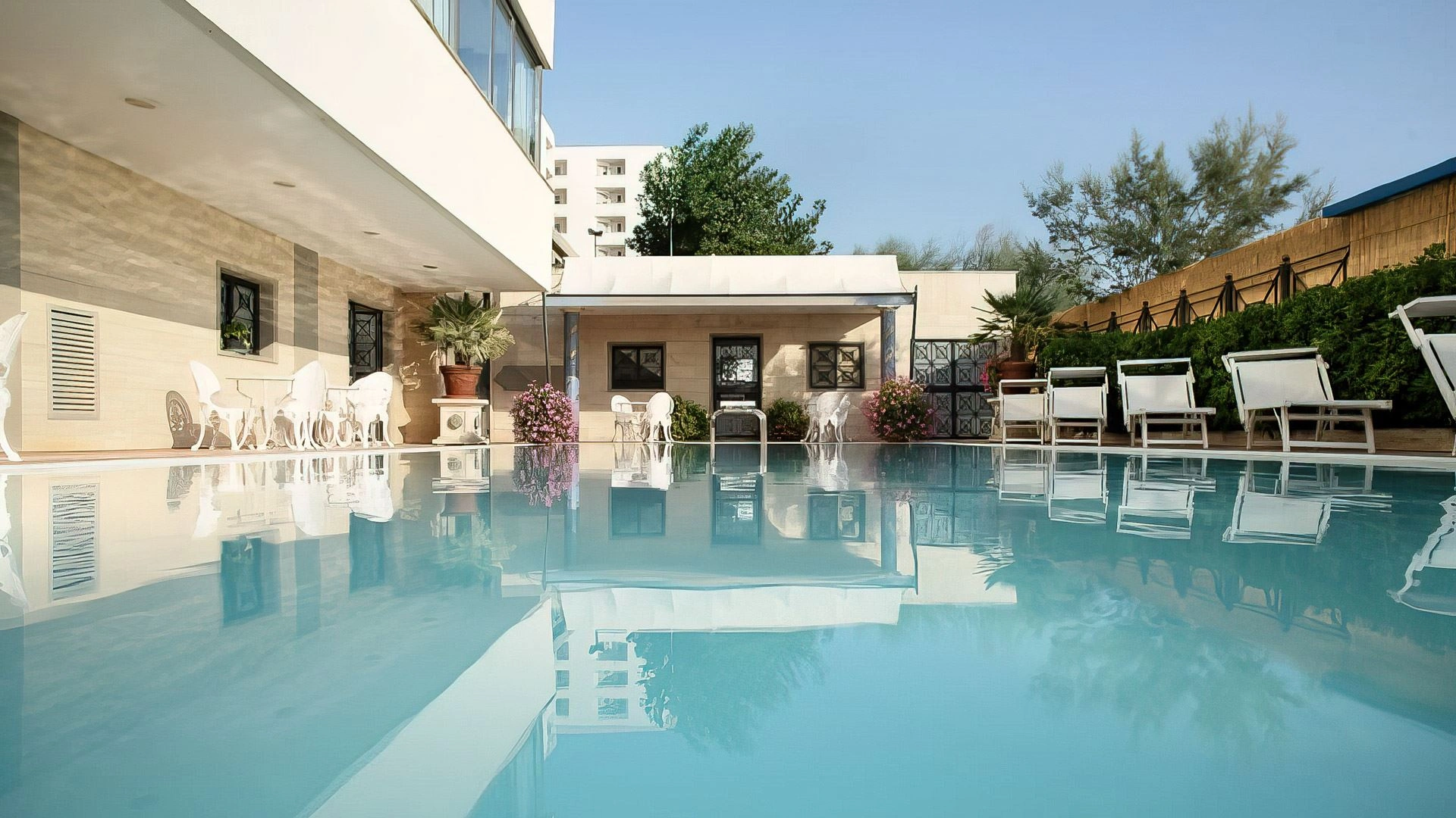 L'hôtel dispose d'une piscine extérieure juste en face de la plage, entourée de chaises longues. L'espace est adapté aux apéritifs et aux événements au bord de la piscine.