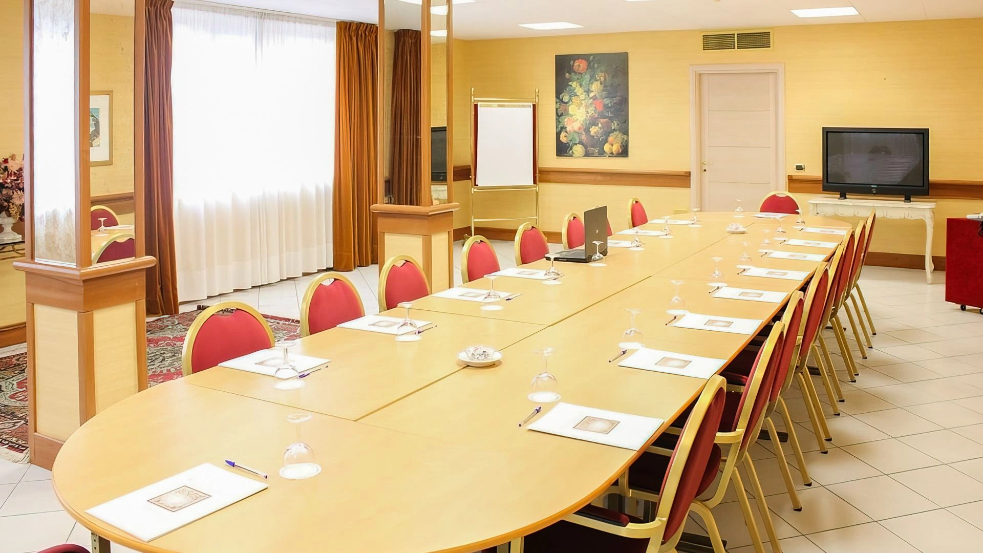 Le centre de conférence comprend 5 salles de conférence de différentes tailles, pouvant accueillir de 15 à 180 personnes. Toutes les pièces sont éclairées par la lumière naturelle et équipées d'équipements technologiques modernes. Les plus grandes salles (Gran Sasso, Galatea et D'Annunzio) ont des entrées indépendantes.