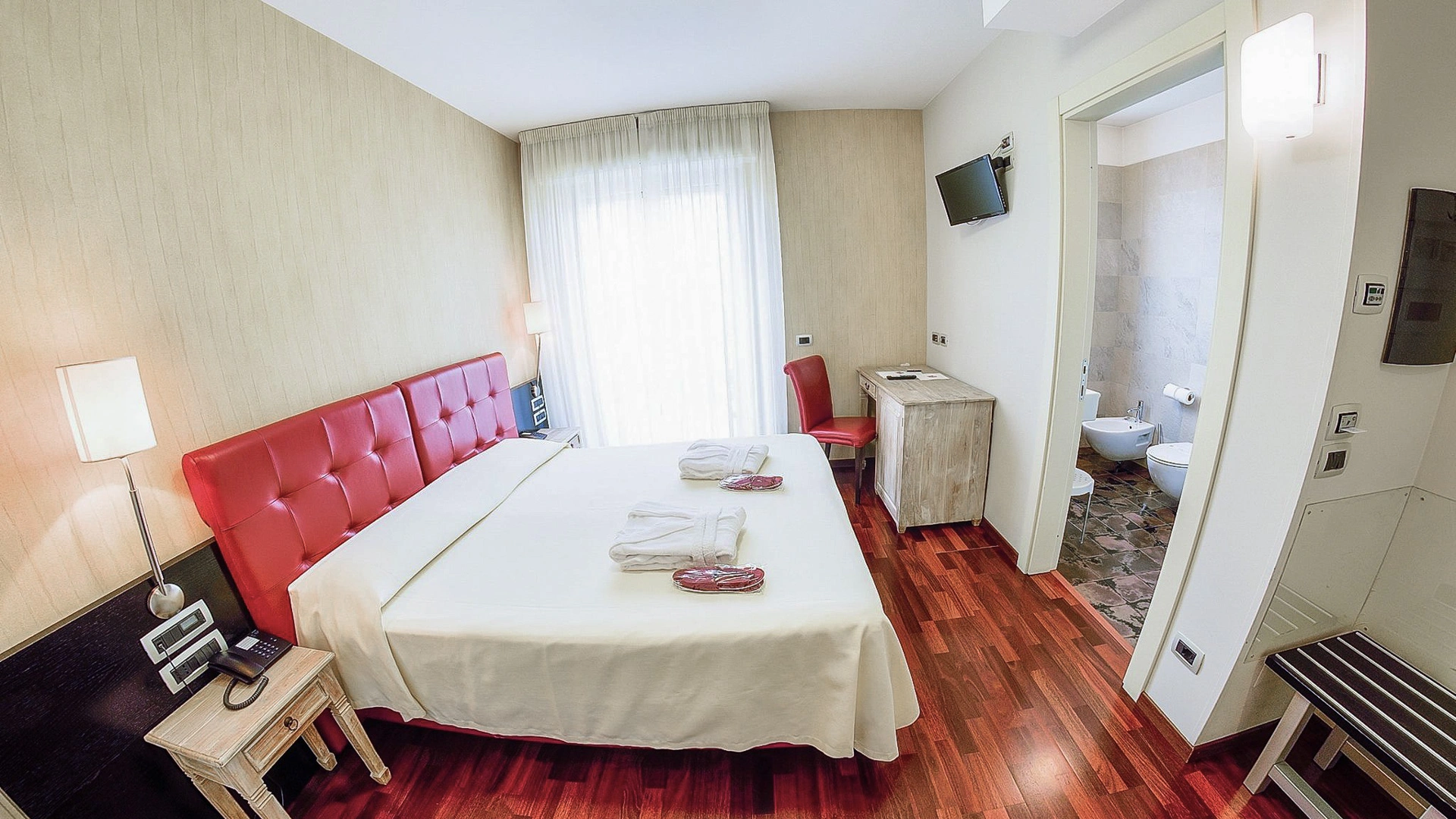 Les chambres de l'hôtel Victoria sont toutes meublées dans un style contemporain et disposent de parquet et de têtes de lit en cuir coloré. Elles sont équipées de balcon, climatisation et chauffage, TV LCD par satellite avec Pay TV, téléphone, coffre-fort, minibar, salle de bain privée avec cabine de douche et jet d'hydromassage, sèche-cheveux et set de courtoisie. Une suite avec coin salon, bar avec évier et baignoire d'hydromassage avec chromothérapie est également disponible.