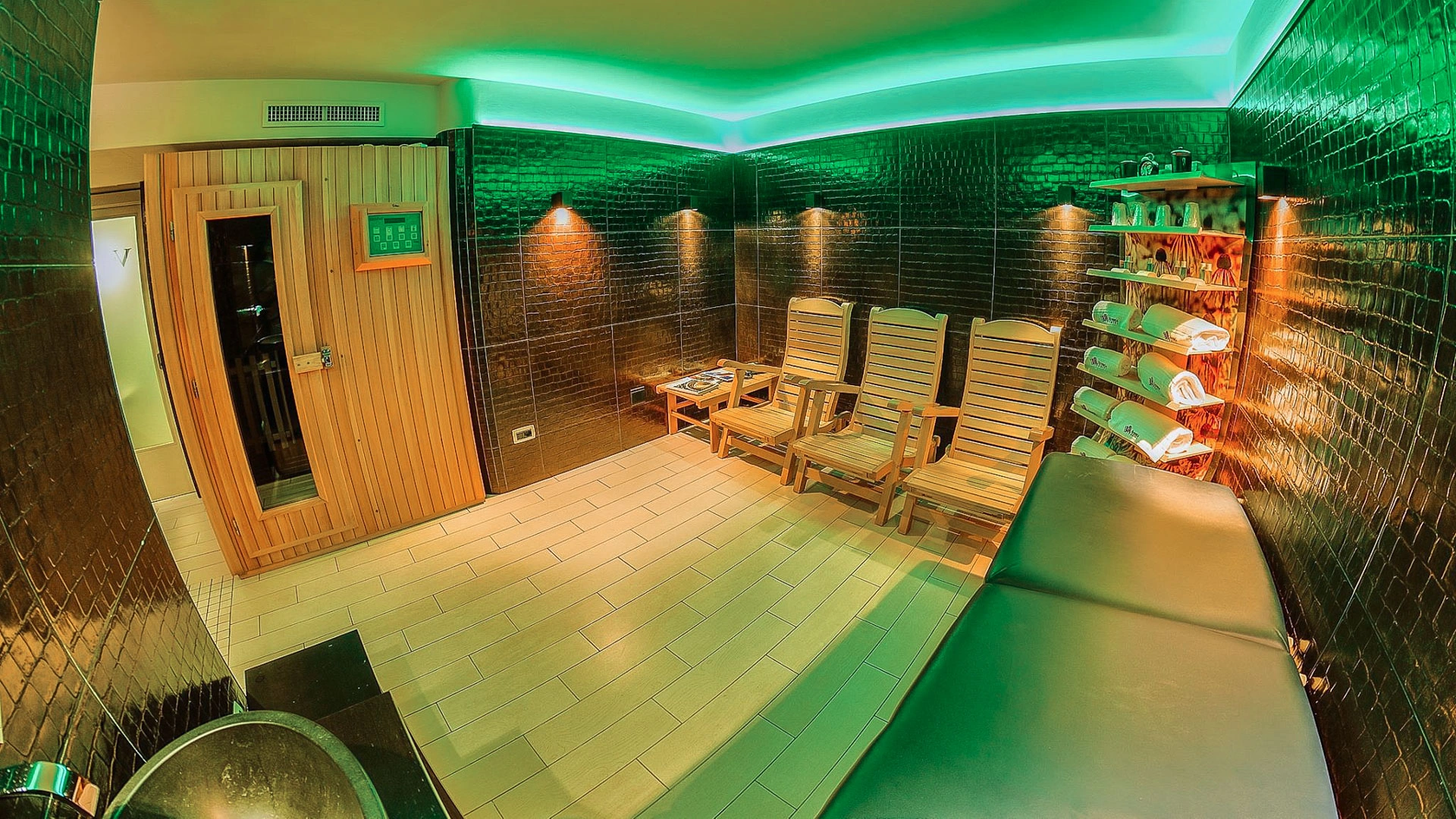 Le centre de bien-être de l'hôtel est accessible directement depuis les chambres. A l'intérieur se trouve un espace détente avec tisanes et transats, sauna, bain turc, espace massage. Un peignoir et des chaussons sont fournis.