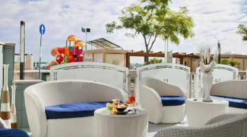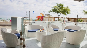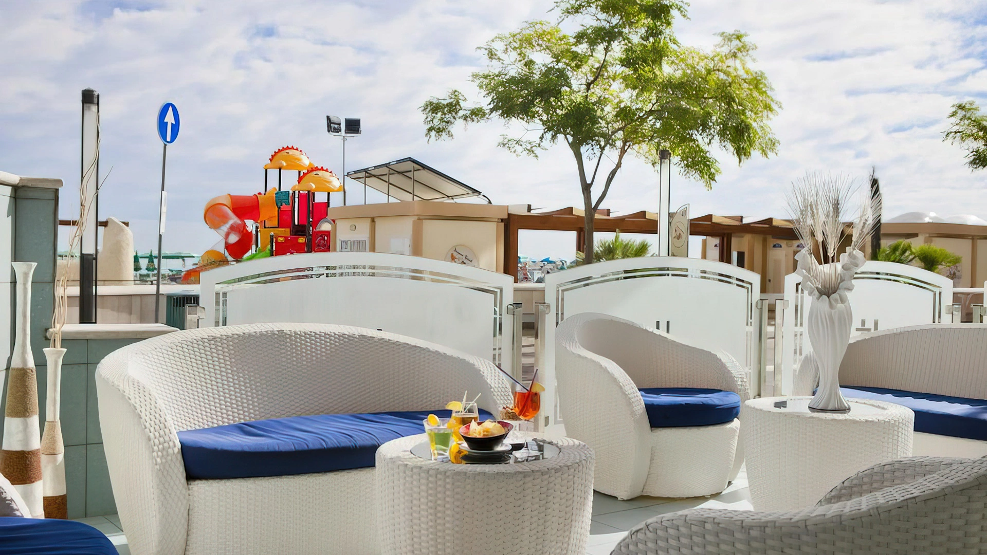 La propriété dispose d'une plage privée dédiée aux clients de l'hôtel. Il propose : des jeux pour enfants, des animations, des terrains de pétanque et de ping-pong, un espace détente avec Wi-Fi et bien plus encore.