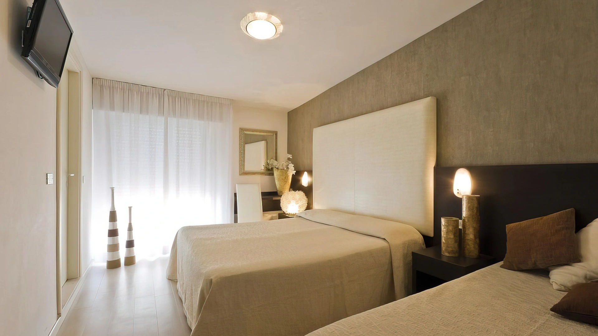 Les chambres disposent d'un balcon, vue mer (front de mer sur demande, avec supplément), climatisation, Wi-Fi fibre rapide, TV satellite, coffre-fort, téléphone, minibar, salle de bain avec cabine de douche et sèche-cheveux. Petit déjeuner en chambre sur demande.