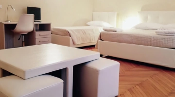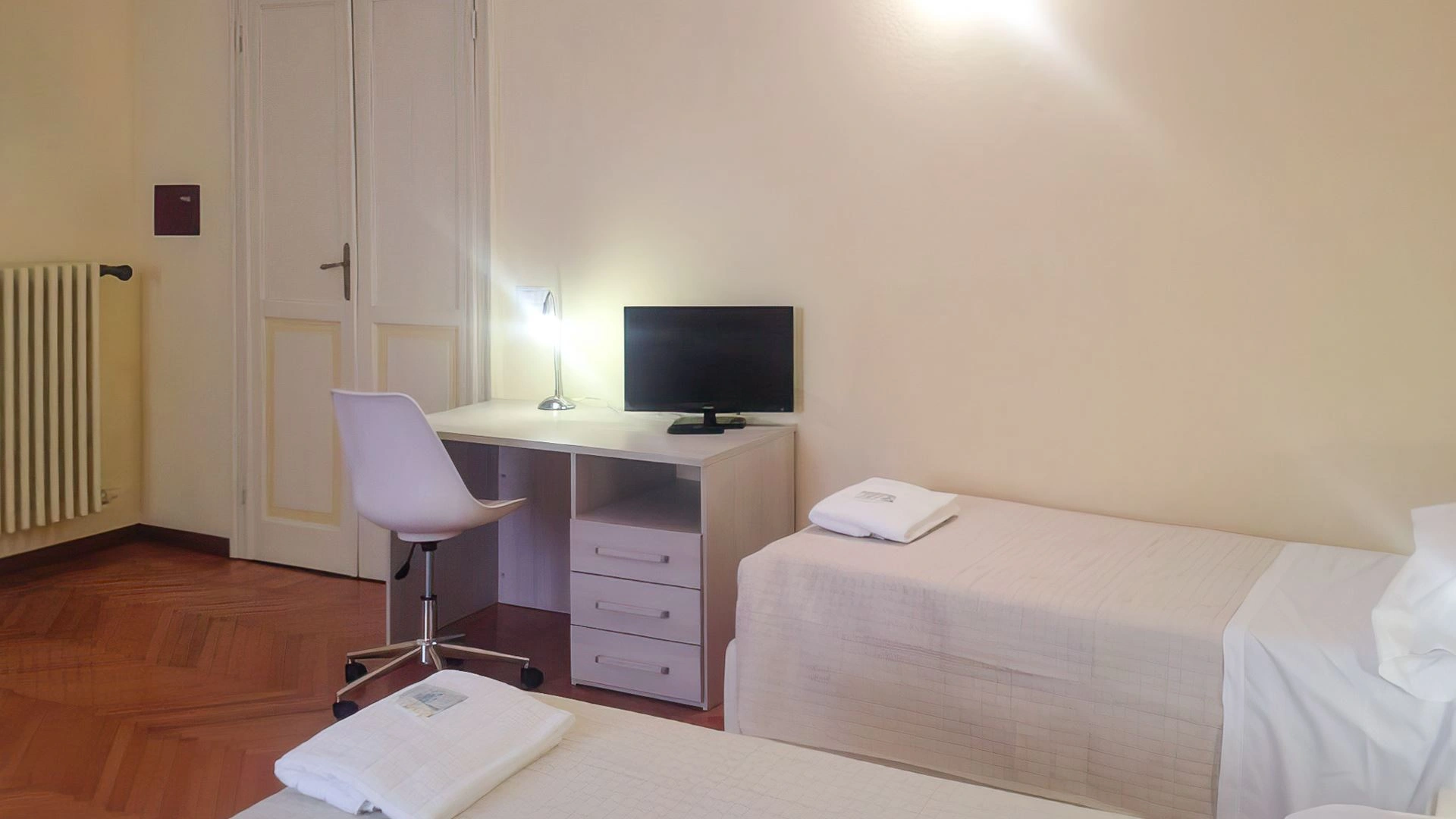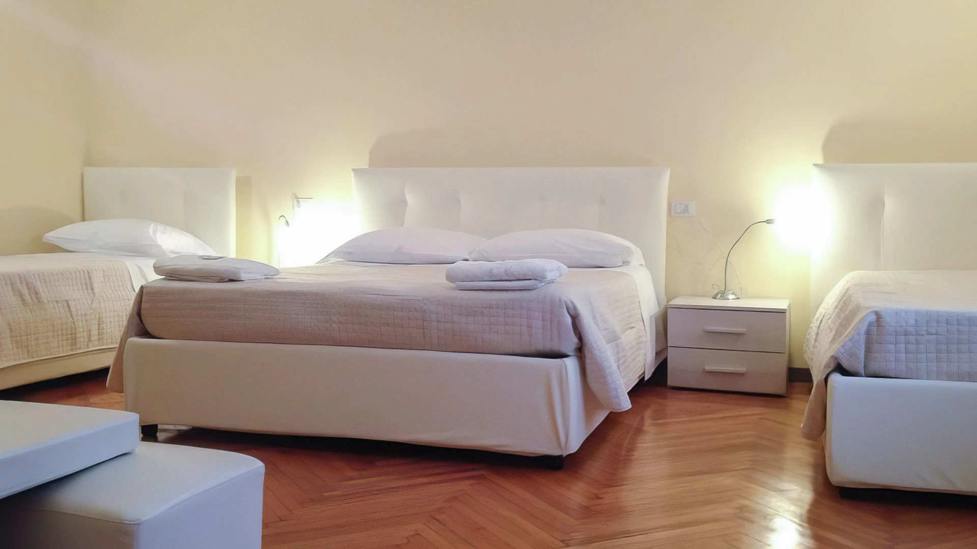Les 3 chambres (une double, une triple et une quadruple) mesurent environ 30 mètres carrés et disposent de grands espaces lumineux comprenant un coin salon et une salle de bain privative avec cabine de douche, sèche-cheveux et kit de courtoisie. Parmi les équipements de la chambre, il y a : réfrigérateur, bouilloire, réseau Wi-Fi gratuit, TV LCD et coffre-fort électronique. Certaines chambres disposent également de la climatisation et d'une vue sur les tours.