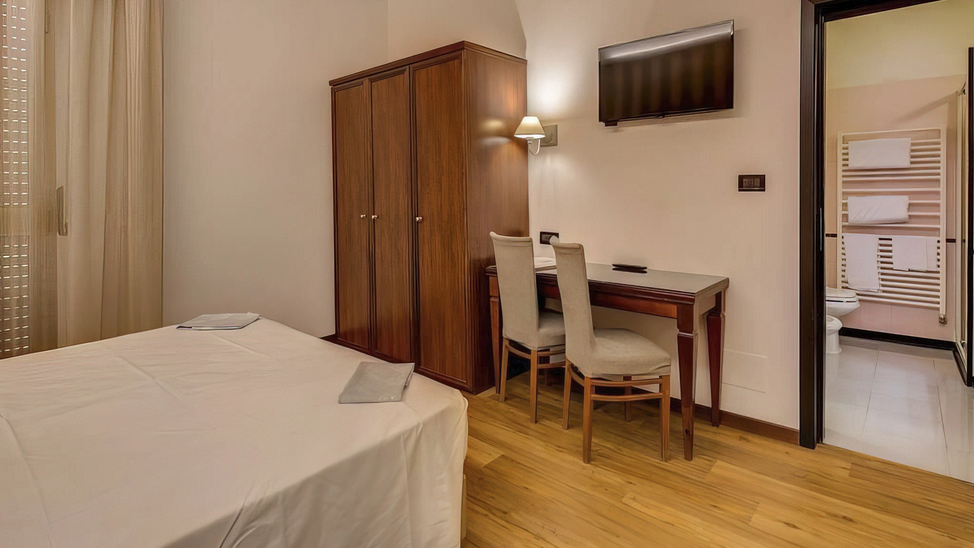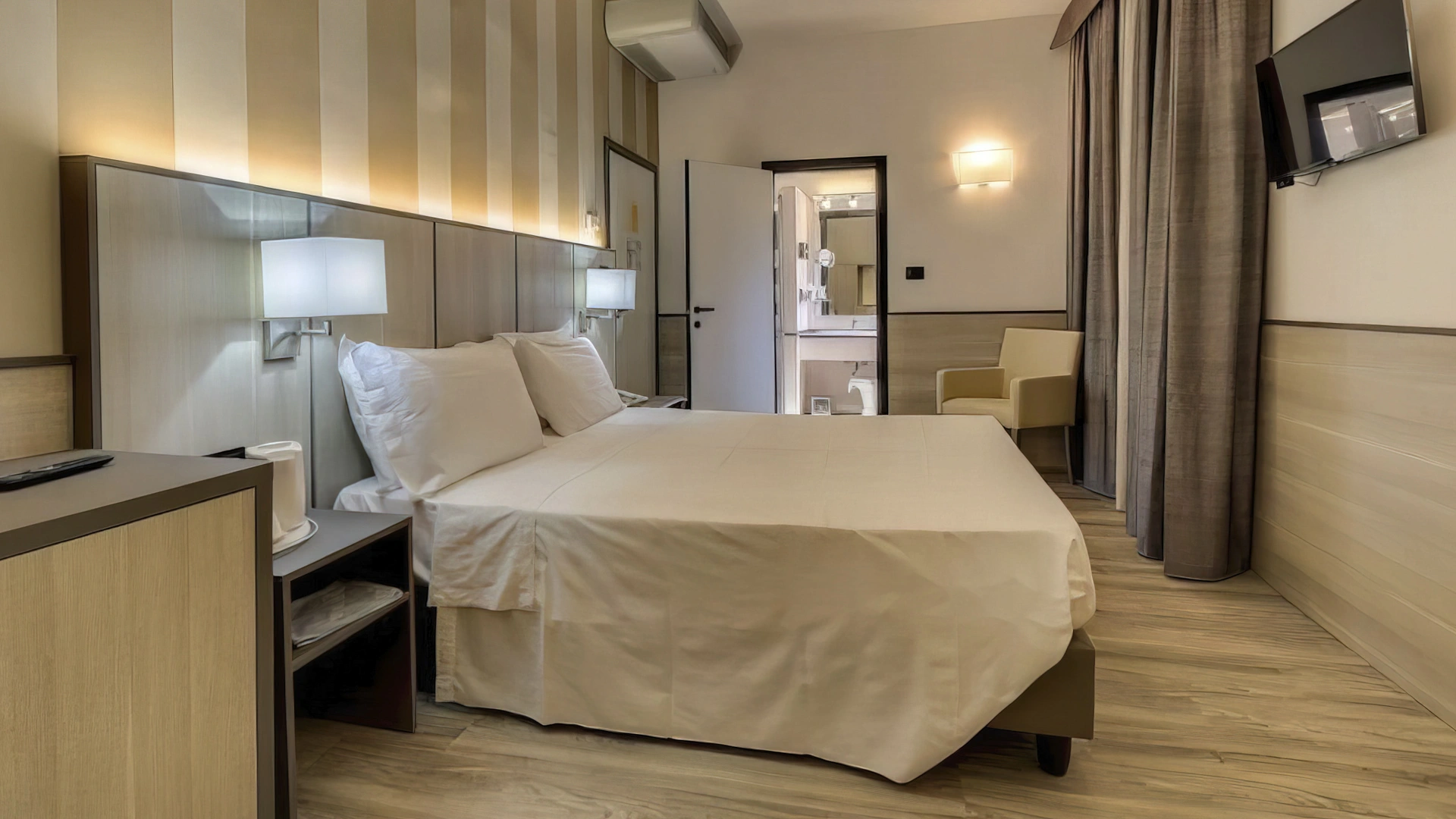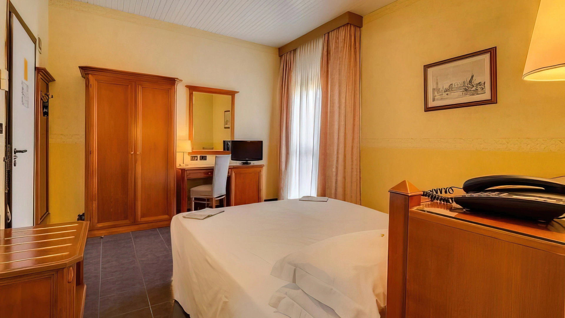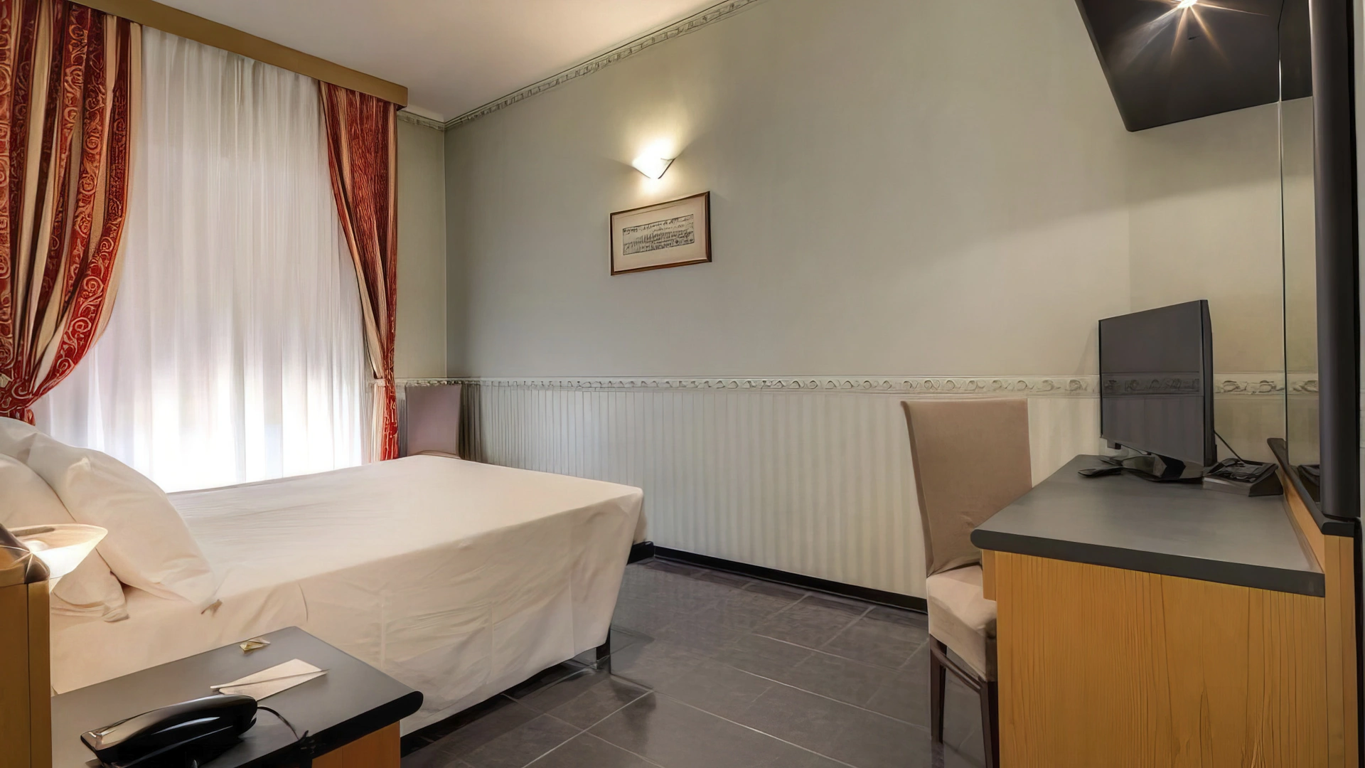 Les 59 chambres, de style classique, au mobilier sobre et élégant, sont toutes équipées de connexion Wi-Fi gratuite, TV, minibar, climatisation et salle de bain privée avec douche et sèche-cheveux. Les chambres se différencient par la taille des espaces, la qualité de l'ameublement et la vue sur le centre-ville. Les solutions Economy peuvent être simples ou doubles et sont idéales pour les voyageurs d'affaires, les chambres Classic et Deluxe sont équipées d'un lit Queen Size et des chambres familiales triples et quadruples sont disponibles.