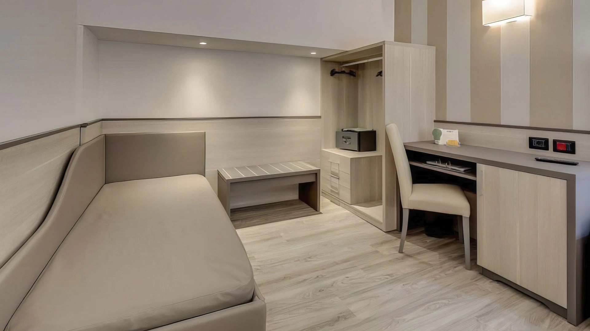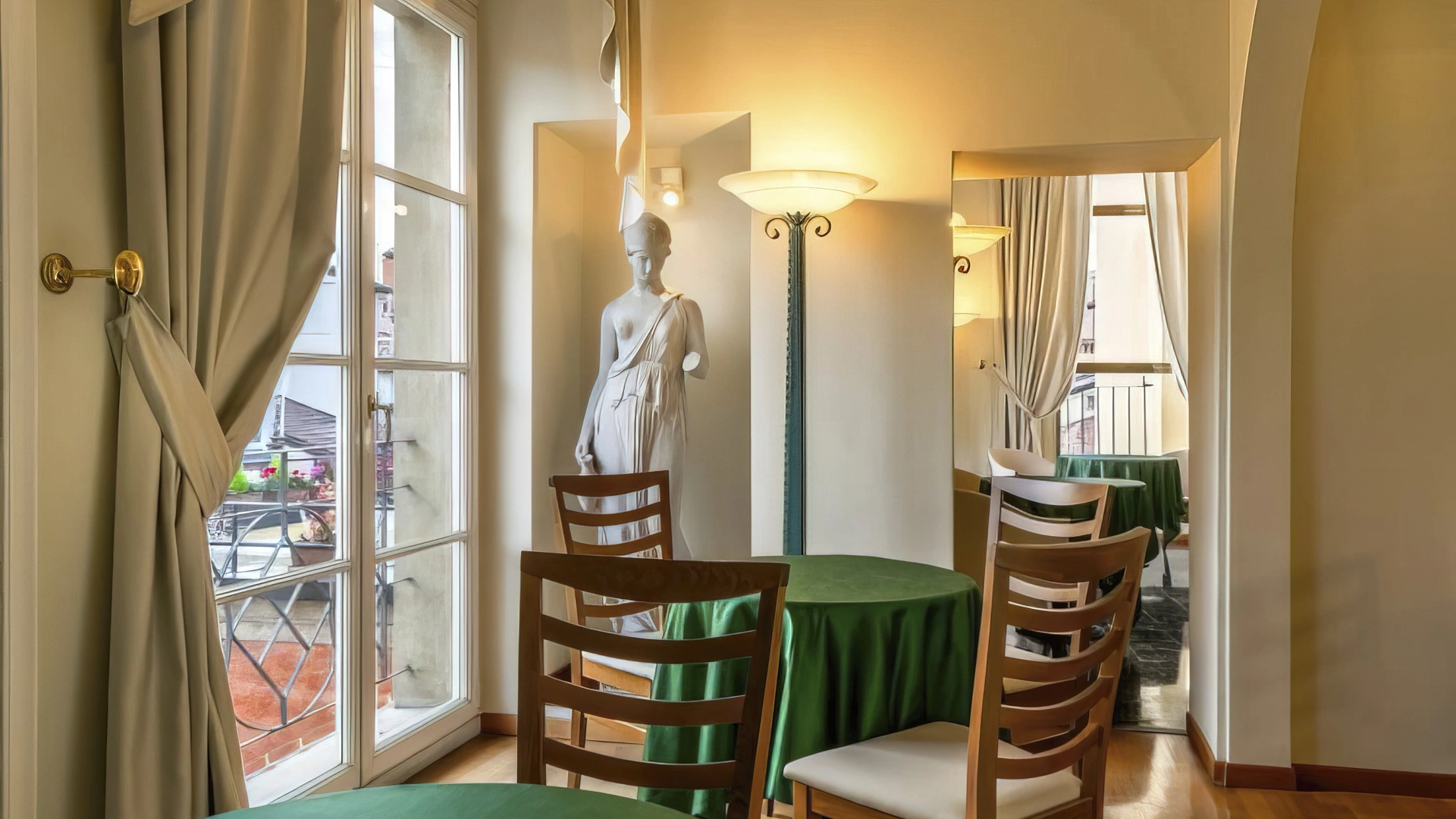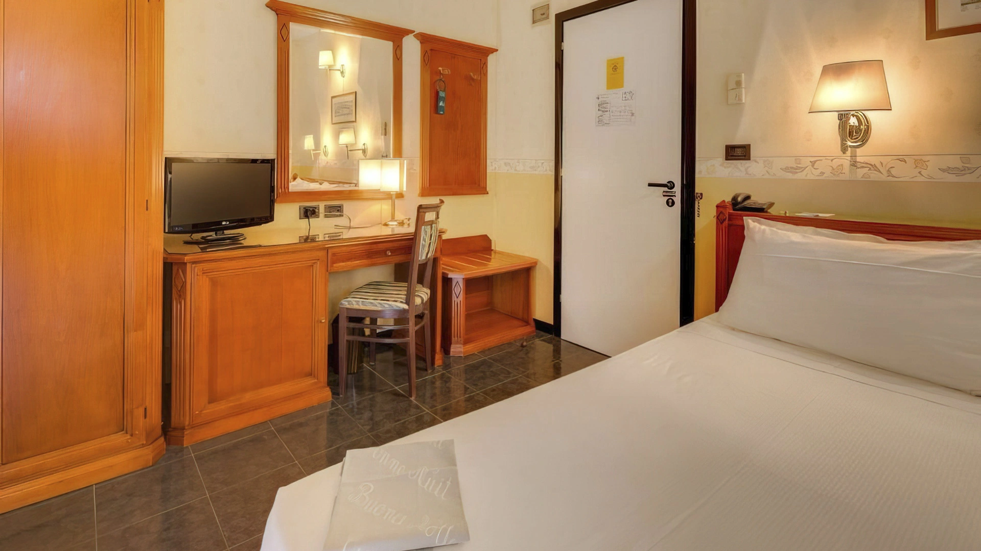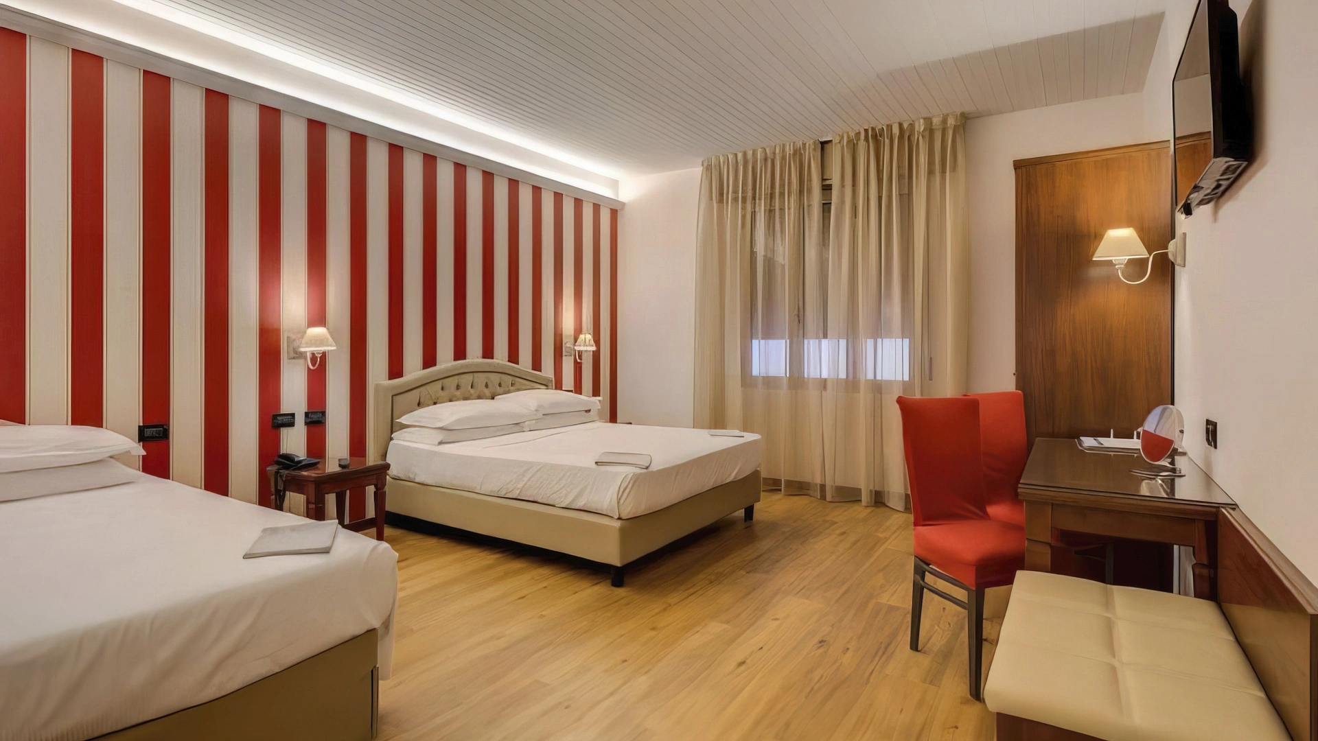 Les 59 chambres, de style classique, au mobilier sobre et élégant, sont toutes équipées de connexion Wi-Fi gratuite, TV, minibar, climatisation et salle de bain privée avec douche et sèche-cheveux. Les chambres se différencient par la taille des espaces, la qualité de l'ameublement et la vue sur le centre-ville. Les solutions Economy peuvent être simples ou doubles et sont idéales pour les voyageurs d'affaires, les chambres Classic et Deluxe sont équipées d'un lit Queen Size et des chambres familiales triples et quadruples sont disponibles.