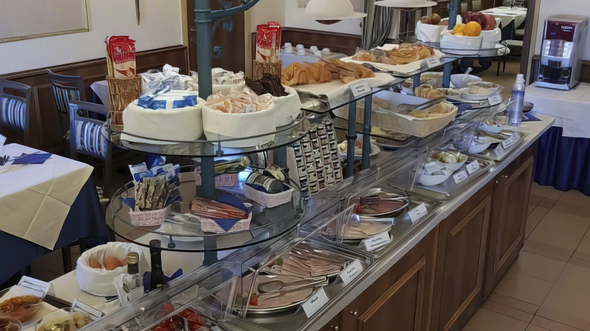 Le petit-déjeuner continental et italien est servi sous forme de buffet dans la salle commune. Des plats sans gluten sont également disponibles. Le bar est ouvert toute la journée avec possibilité de boire sur les terrasses.