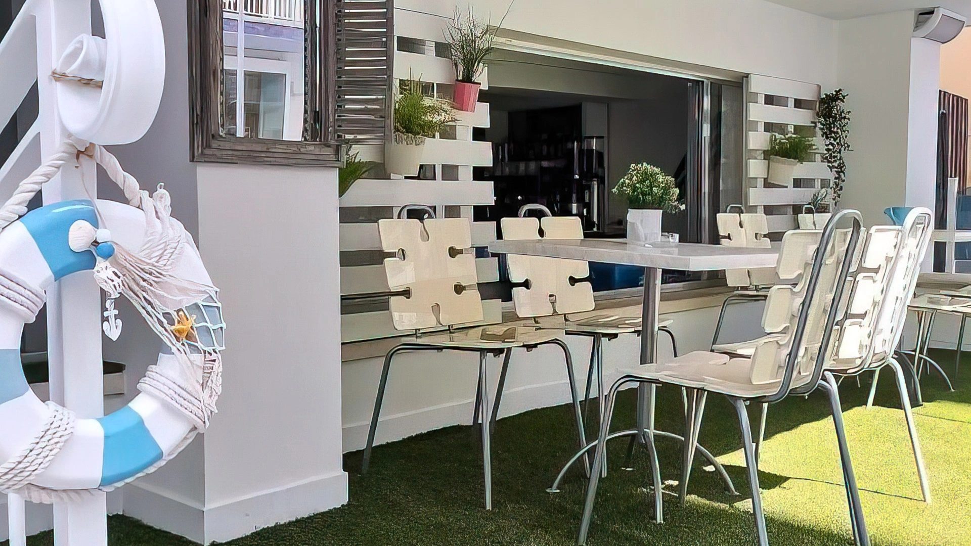 Espace extérieur équipé de chaises et tables, terrasse, ascenseur, bar, veilleur de nuit, soirées à thème.