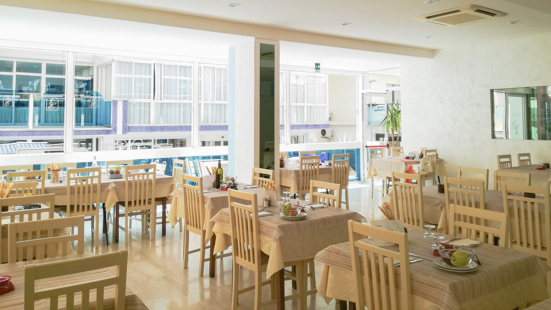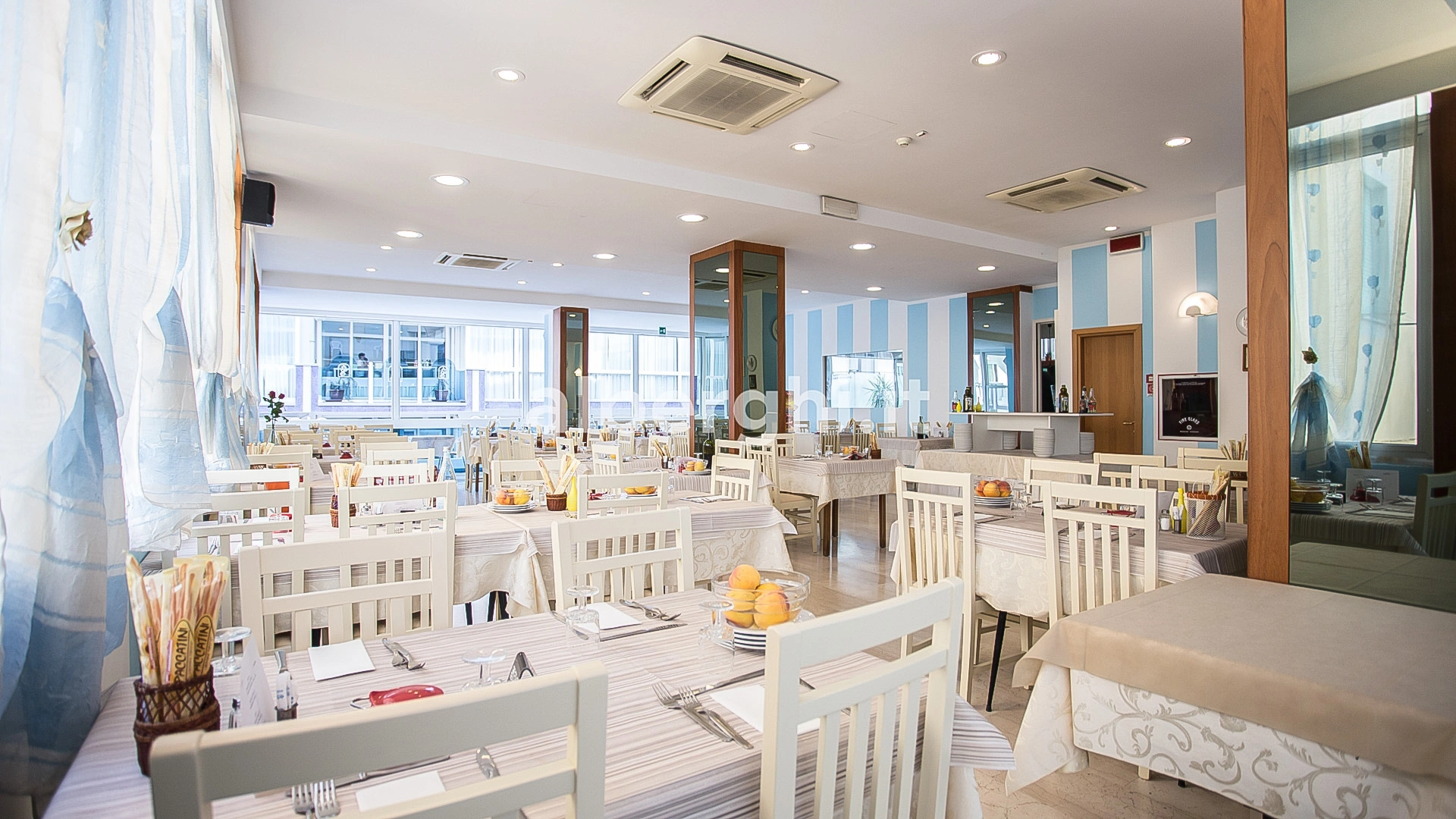 Les chambres ont été récemment rénovées et disposent toutes d'un balcon, de la climatisation, d'une connexion Wi-Fi, d'un téléphone, d'un coffre-fort, de la télévision numérique terrestre, d'une salle de bain avec cabine de douche et sèche-cheveux. Des chambres avec vue sur la mer sont disponibles sur demande.