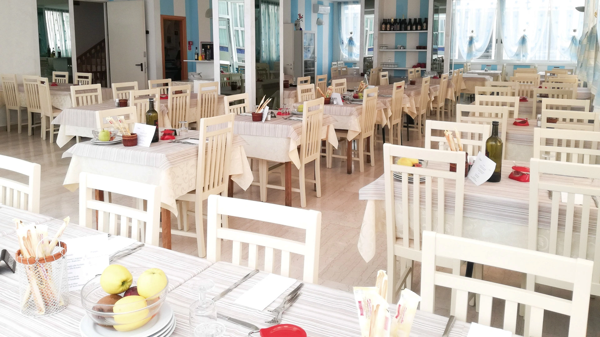 DÉJEUNER ET DÎNER: 2 menus différents sont proposés aux repas avec des recettes traditionnelles de la Romagne et à base de viande et de poisson; les pâtes et les desserts sont faits maison.