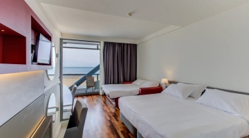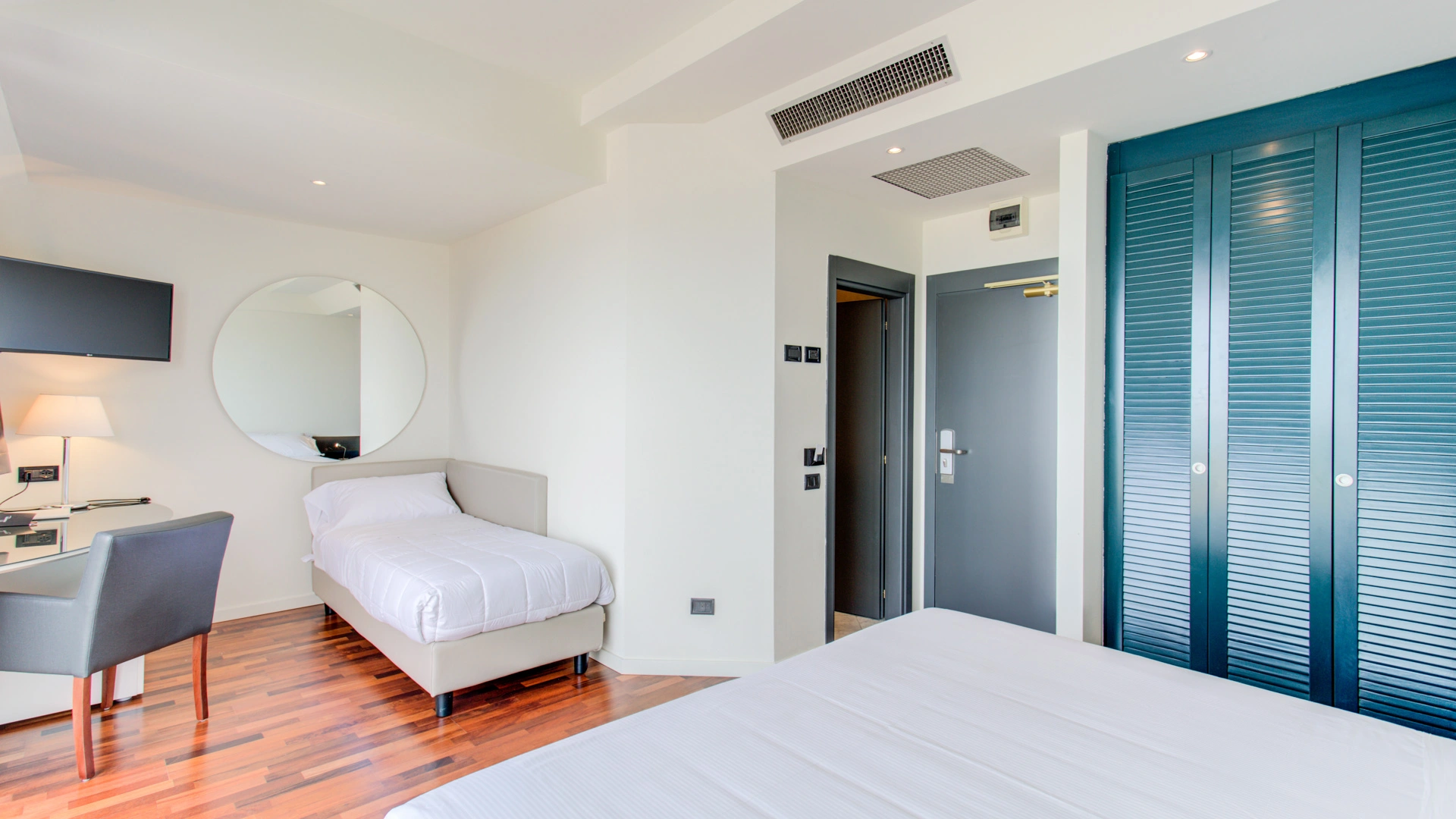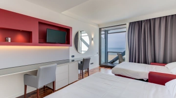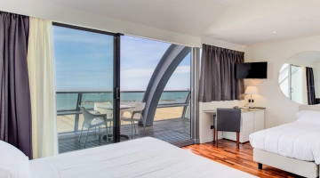 Les chambres sont dotées d'un balcon, d'une vue sur la mer, de la climatisation, d'une connexion Wi-Fi fibre optique à 100 Mbps, de la télévision par satellite, d'un coffre-fort, d'un téléphone, d'un minibar, d'une salle de bains avec douche ou baignoire (dans 17 chambres) et d'un sèche-cheveux. Un service d'étage est disponible moyennant supplément.