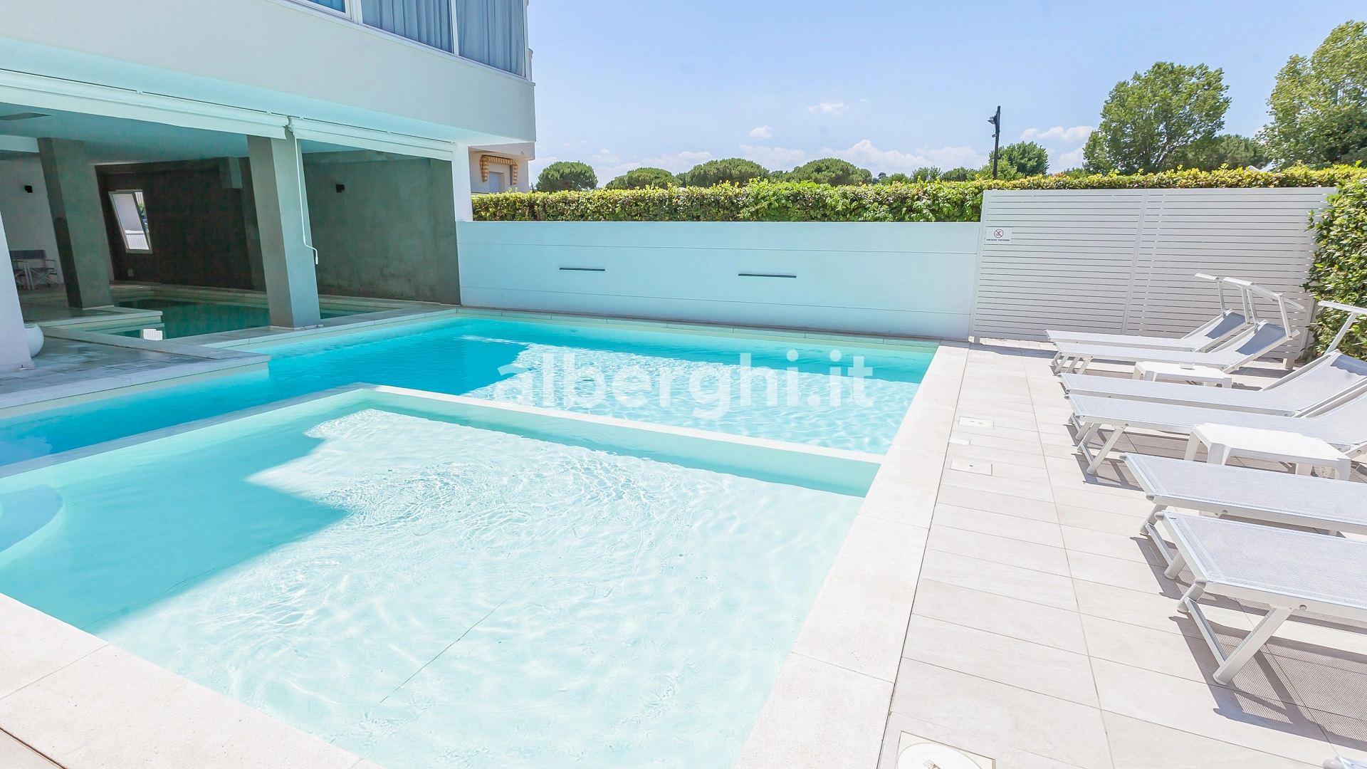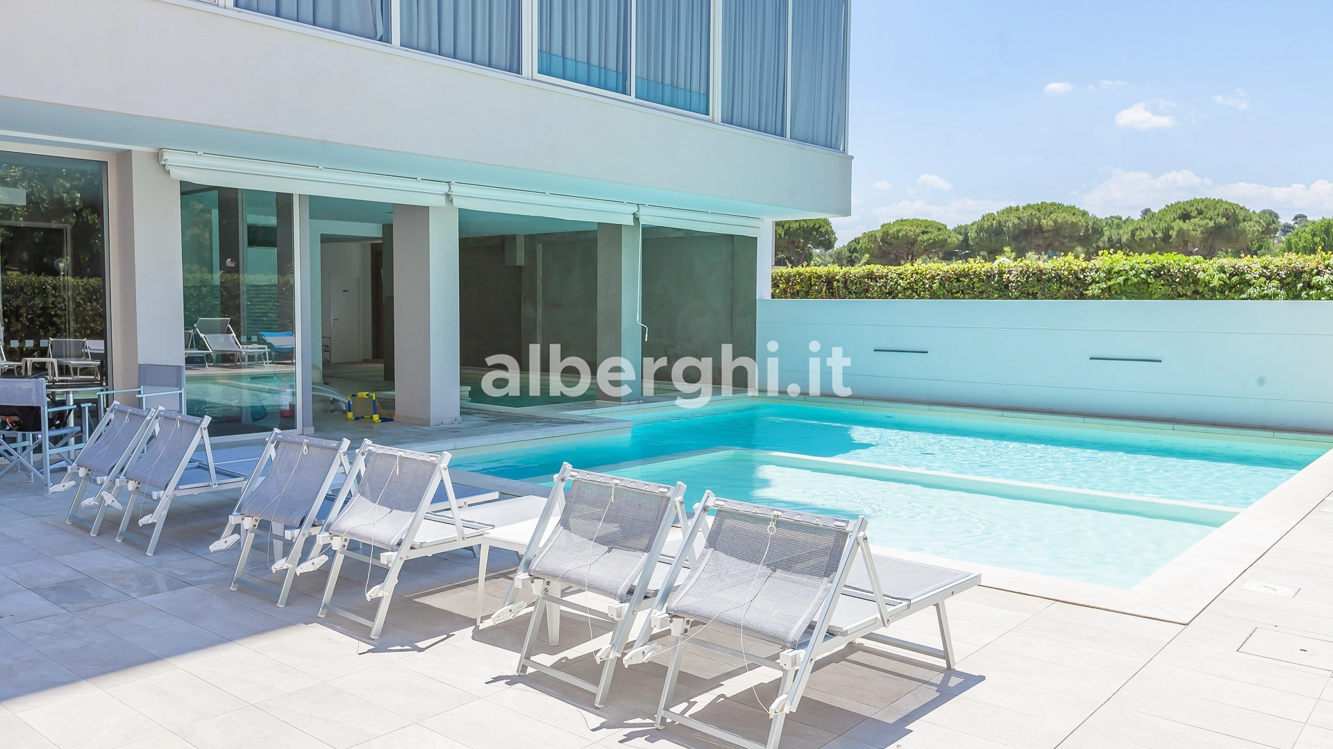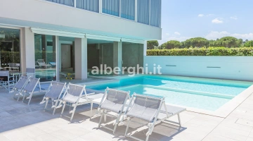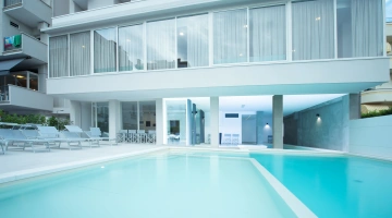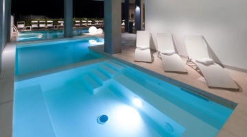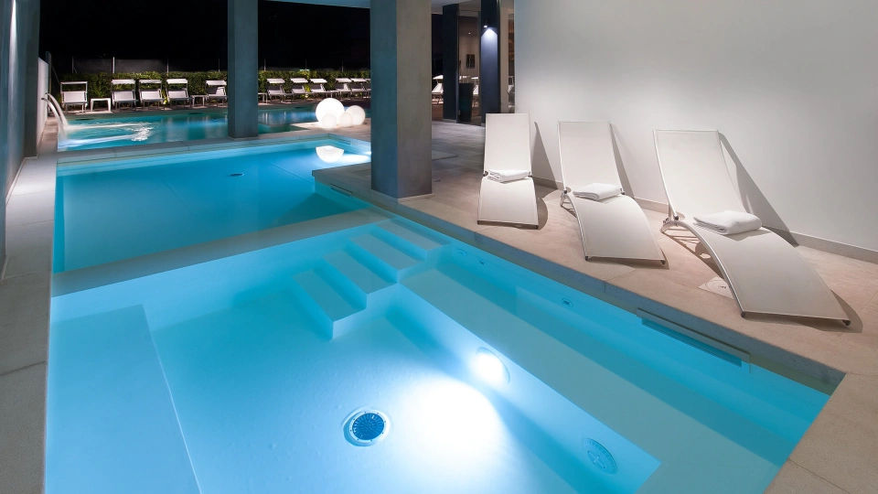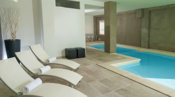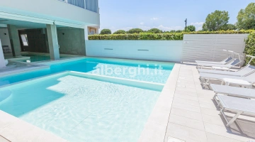 L'hôtel dispose d'une piscine composée de 2 bassins, un intérieur et un extérieur. Les bassins ont une hauteur variable – de 50 cm à 150 cm – idéale pour les adultes et les enfants. La piscine intérieure est équipée d'un bassin d'hydromassage et autour des bassins se trouve un espace solarium équipé.