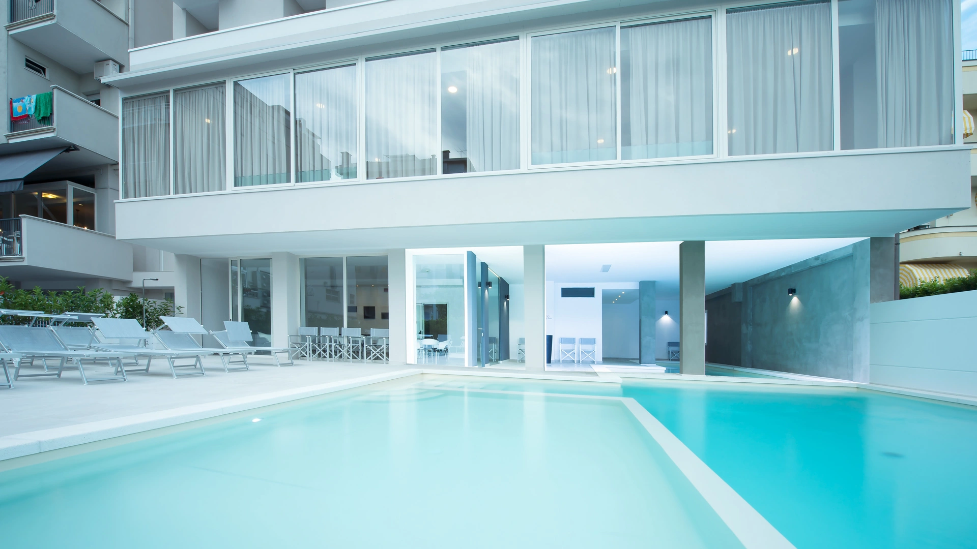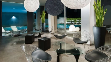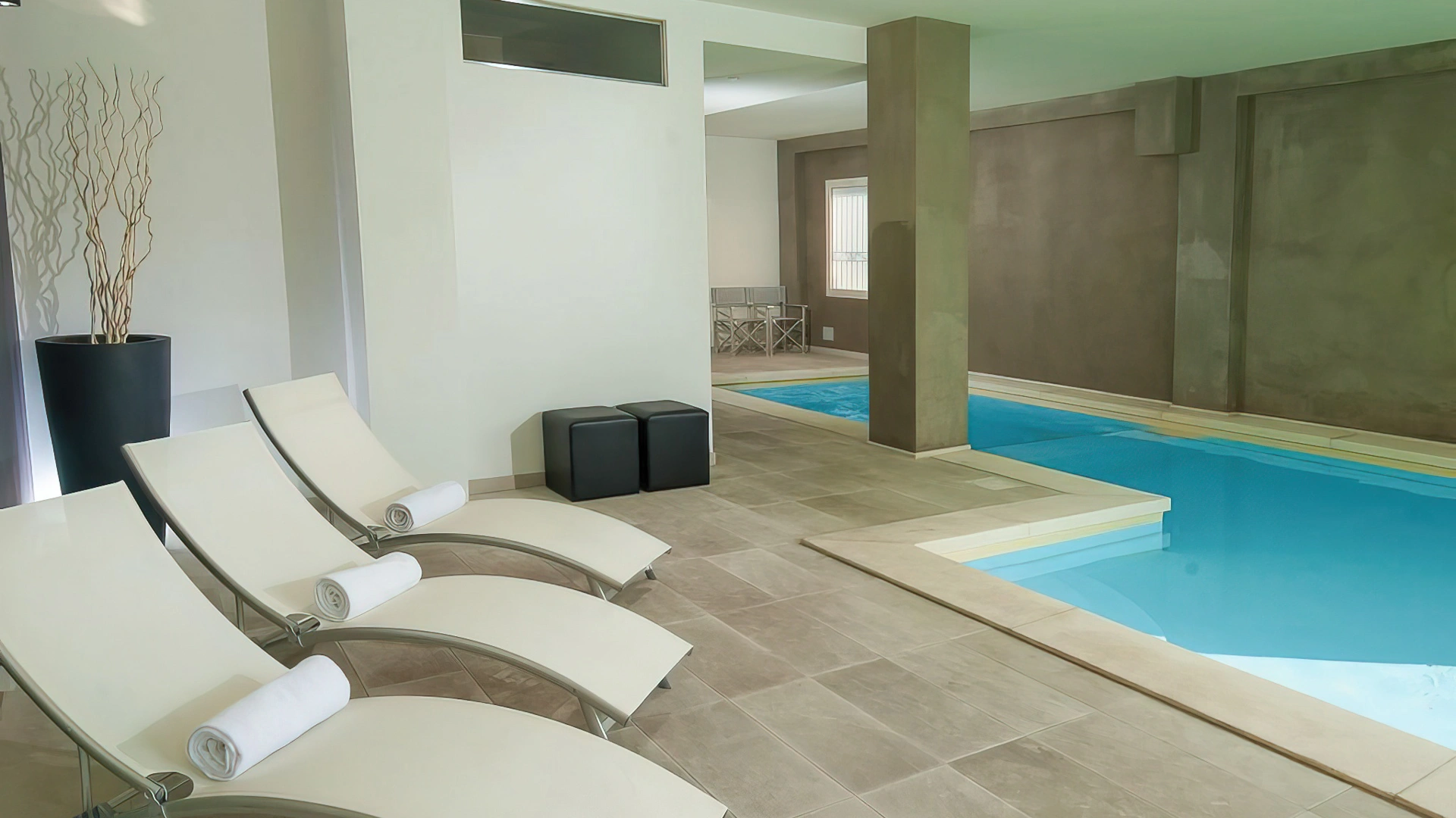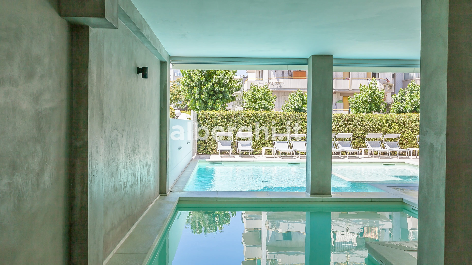 L'hôtel dispose d'une piscine composée de 2 bassins, un intérieur et un extérieur. Les bassins ont une hauteur variable – de 50 cm à 150 cm – idéale pour les adultes et les enfants. La piscine intérieure est équipée d'un bassin d'hydromassage et autour des bassins se trouve un espace solarium équipé.