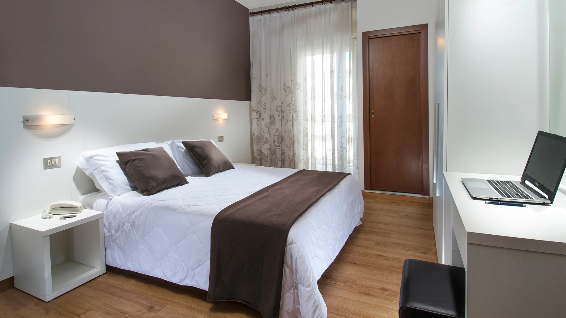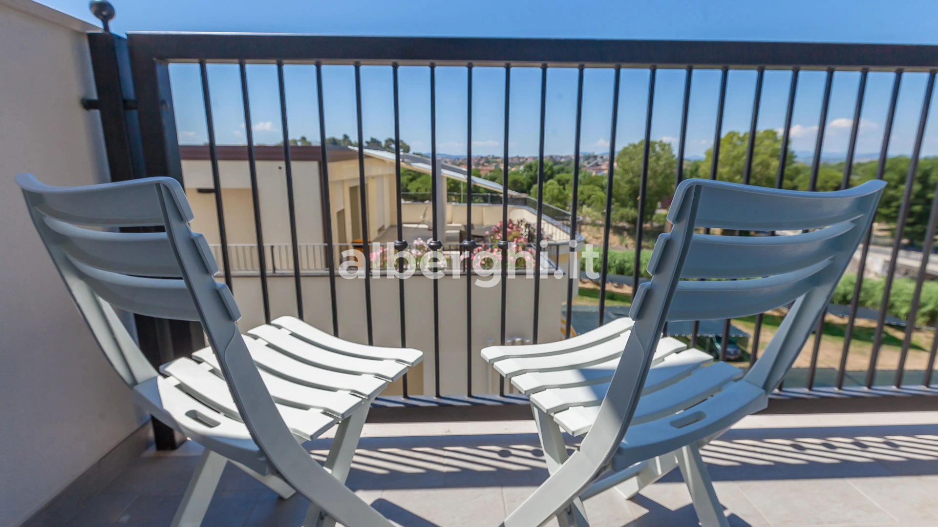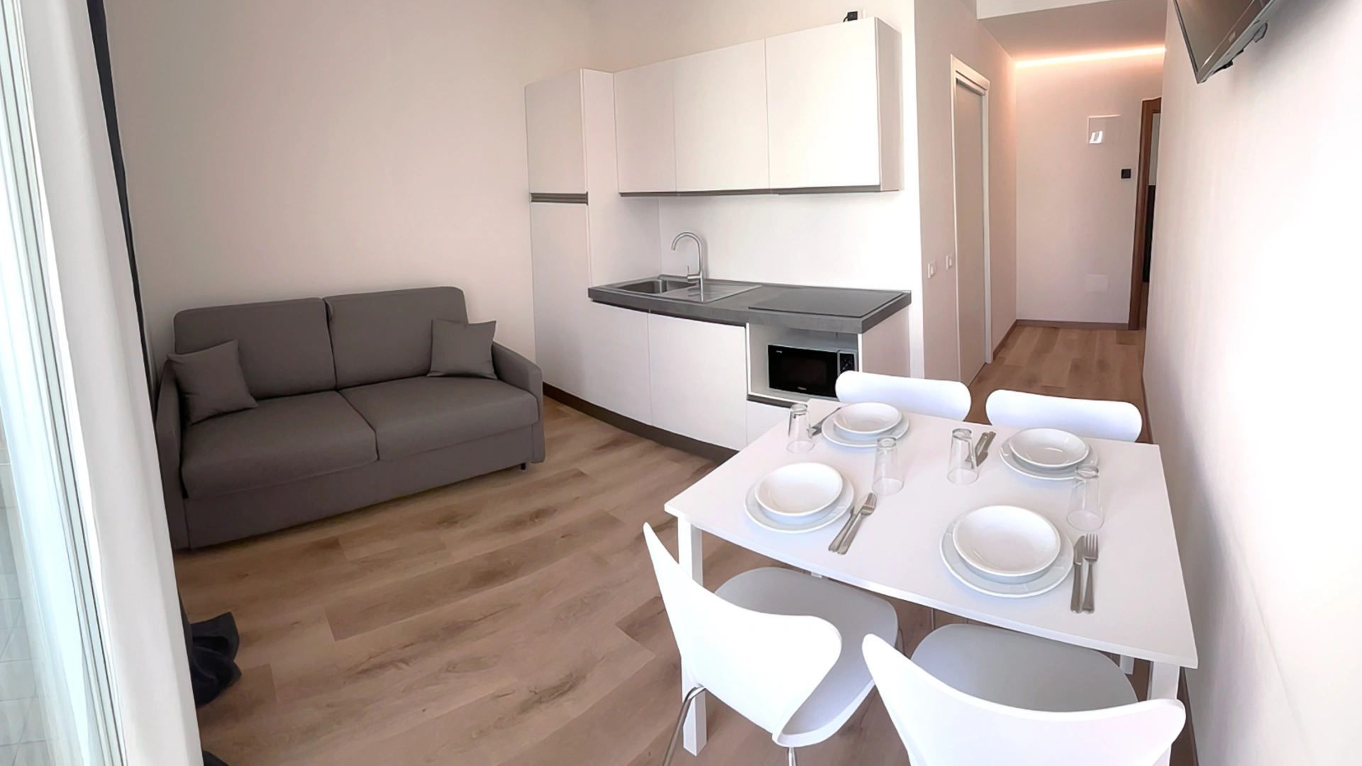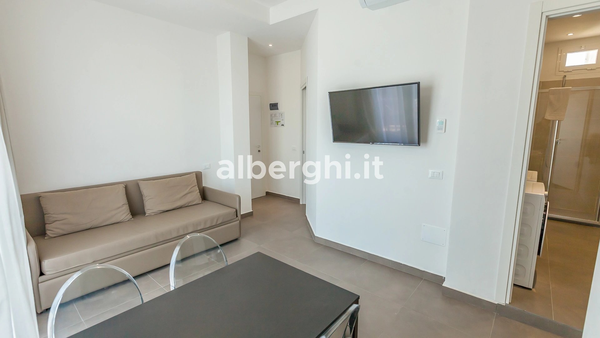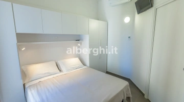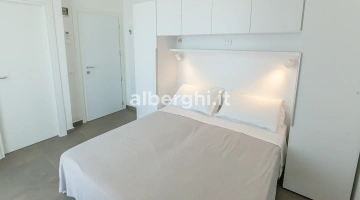 APPARTEMENTS CONFORT DEUX PIÈCES AVEC BALCON: ils mesurent environ 38/40 m2, se composent de 2 pièces séparées et peuvent accueillir jusqu'à 5 personnes (le salon dispose d'un canapé-lit tandis qu'un troisième lit peut être ajouté dans la chambre). Tous les appartements disposent de : climatisation, ventilateur de plafond, cuisine équipée de vaisselle, plaque de cuisson, four à micro-ondes, réfrigérateur, congélateur, lave-linge, connexion Wi-Fi, télévision dans la chambre et le salon. Le linge de lit est changé une fois par semaine, le linge de toilette deux fois par semaine. Les clients des appartements ont accès à la piscine et peuvent utiliser le parking.