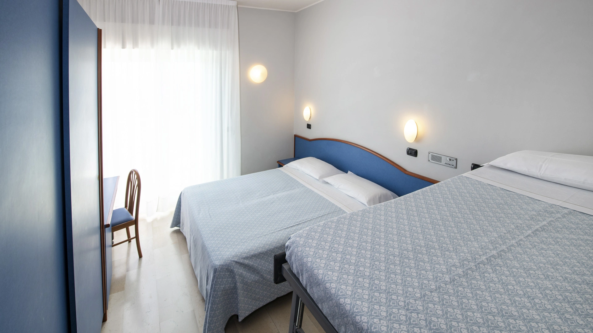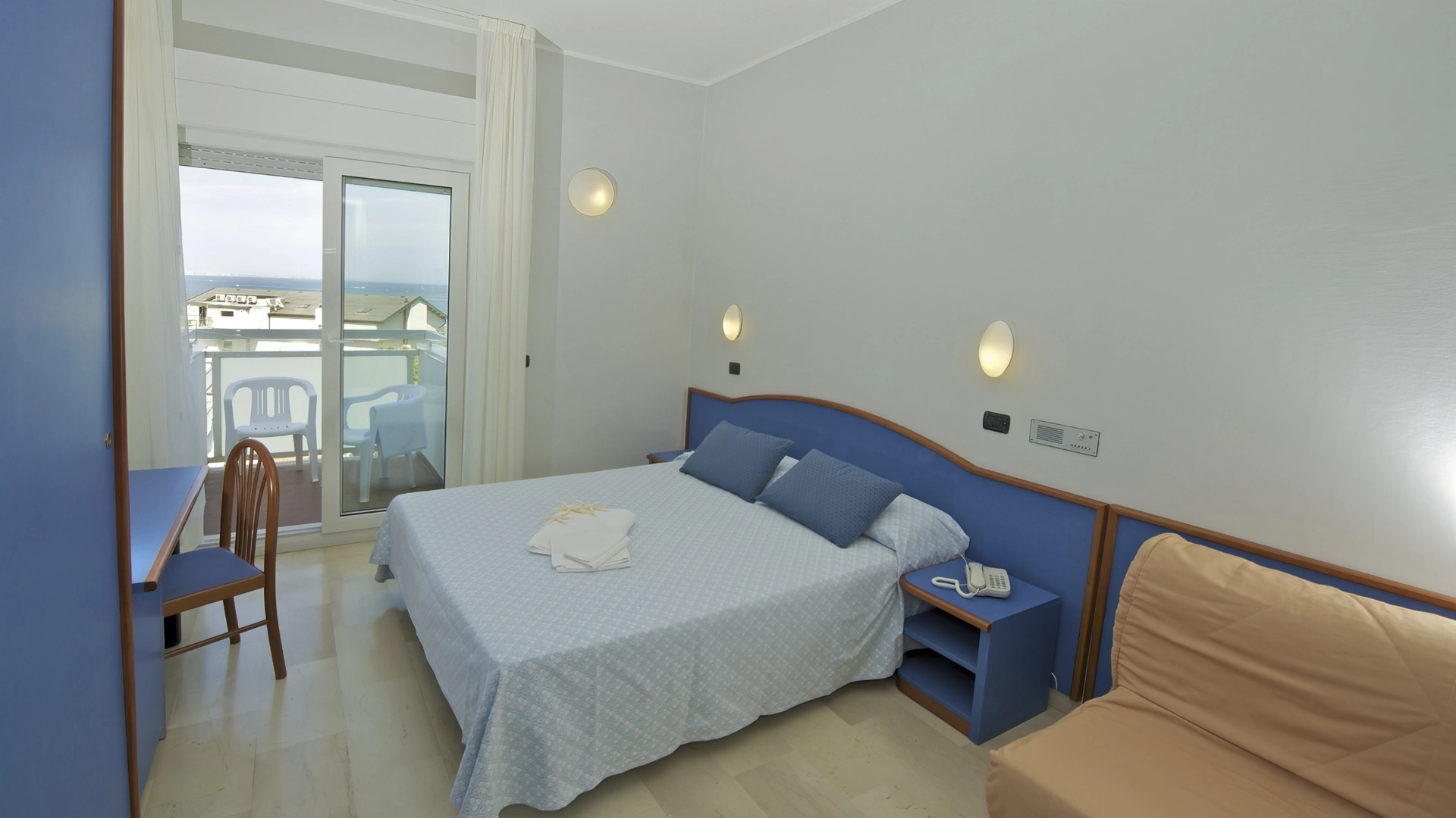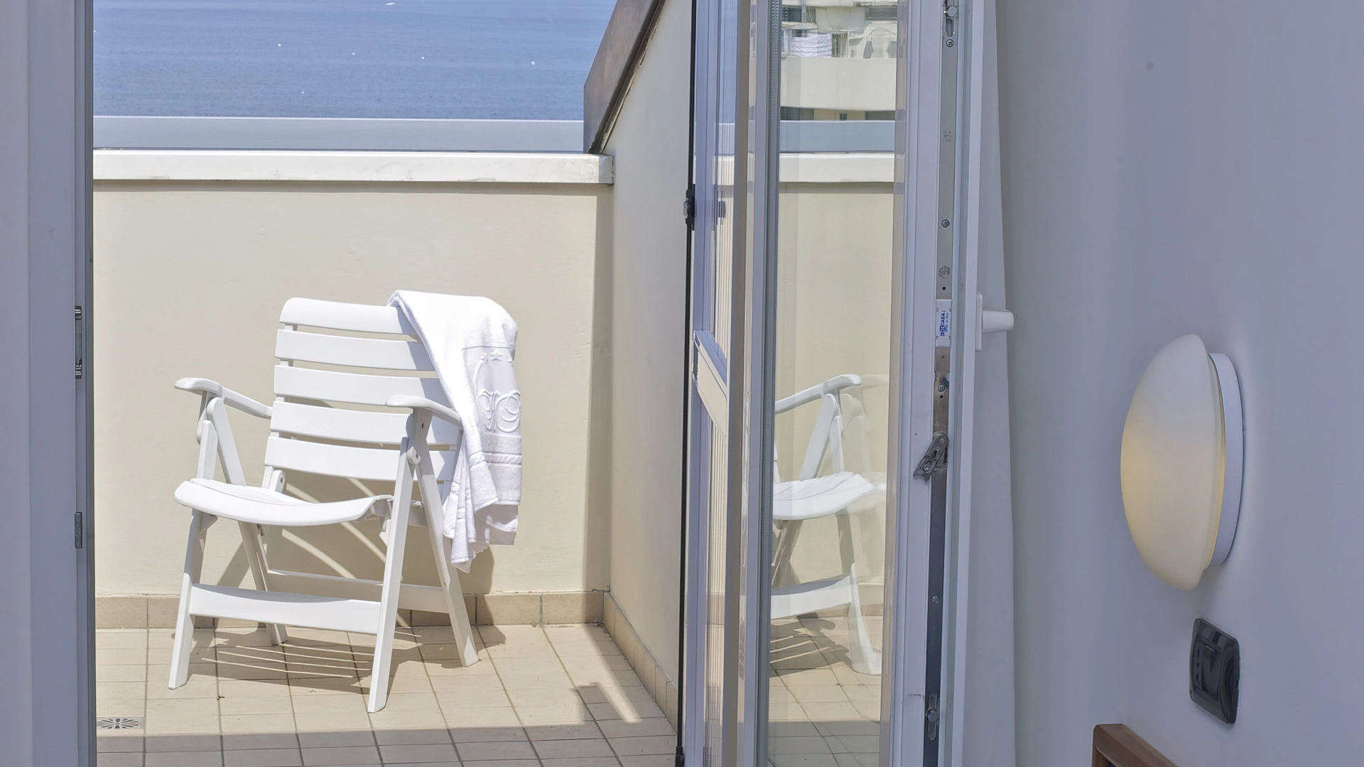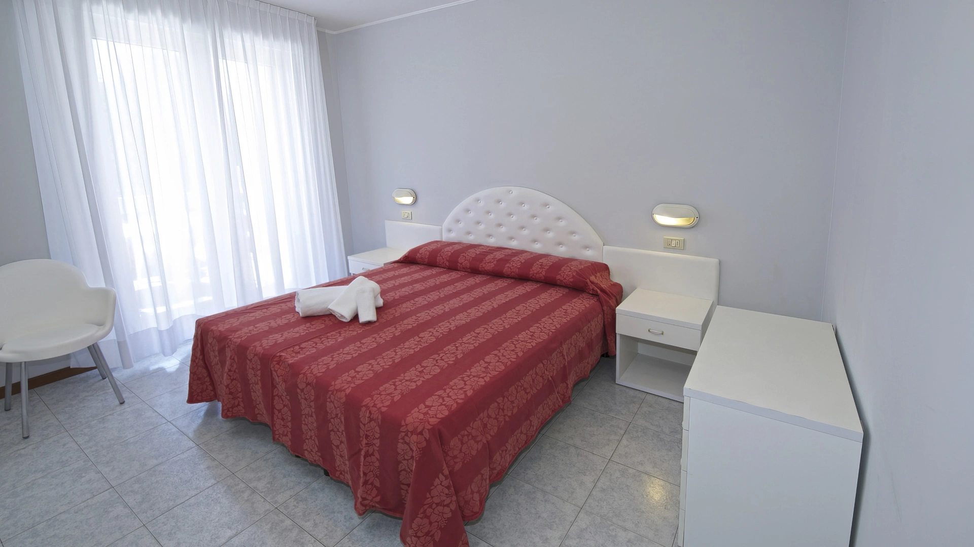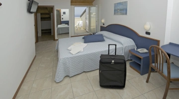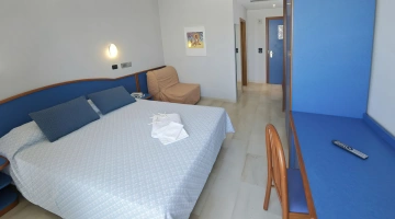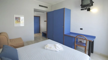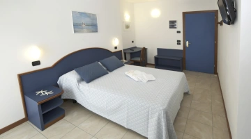 Les chambres récemment rénovées offrent une vue sur la mer, la piscine ou l'intérieur. Elles disposent toutes d'un balcon, d'une climatisation indépendante, d'une télévision avec chaînes Sky, d'une connexion Wi-Fi fibre optique 100 Mbit/s, d'un coffre-fort, d'un téléphone, d'une salle de bain complète avec douche, d'un sèche-cheveux et d'un set de courtoisie. Le minibar n'est pas approvisionné en cours d'utilisation.