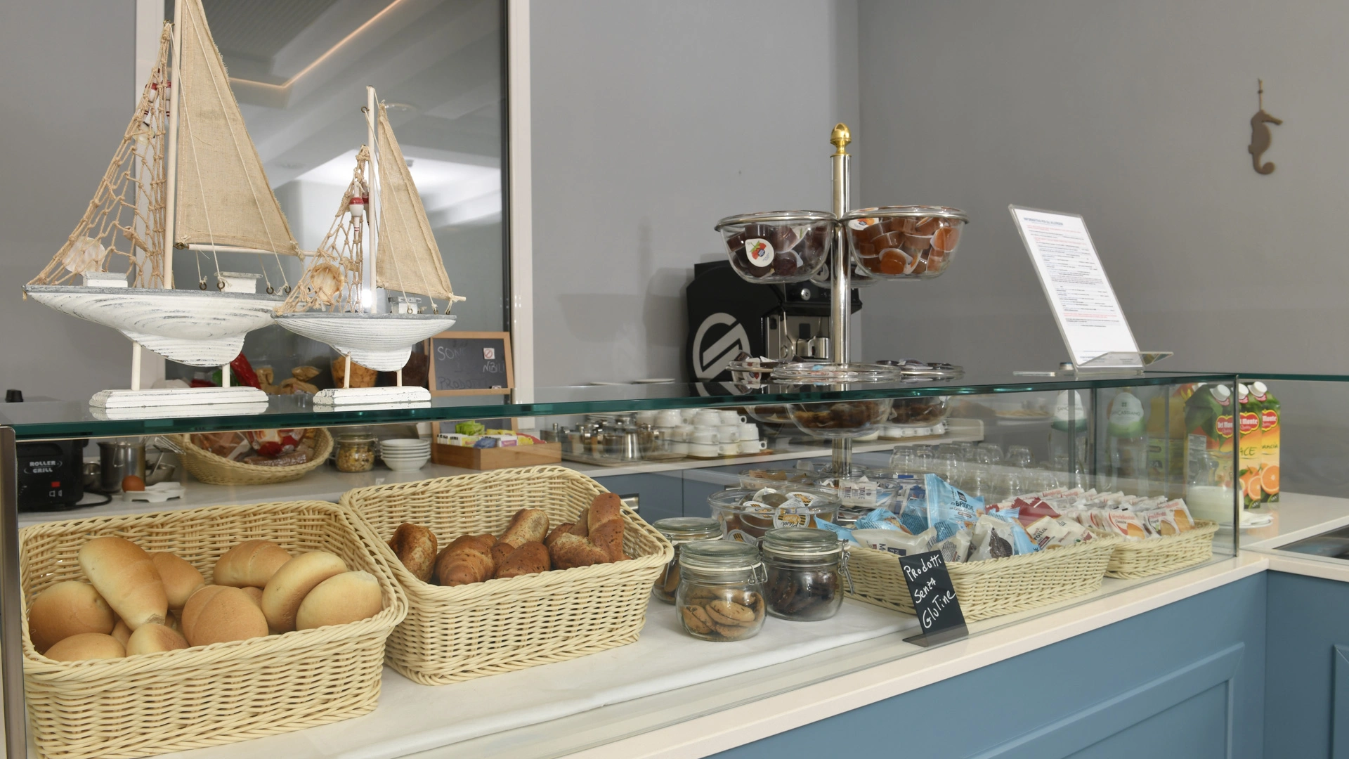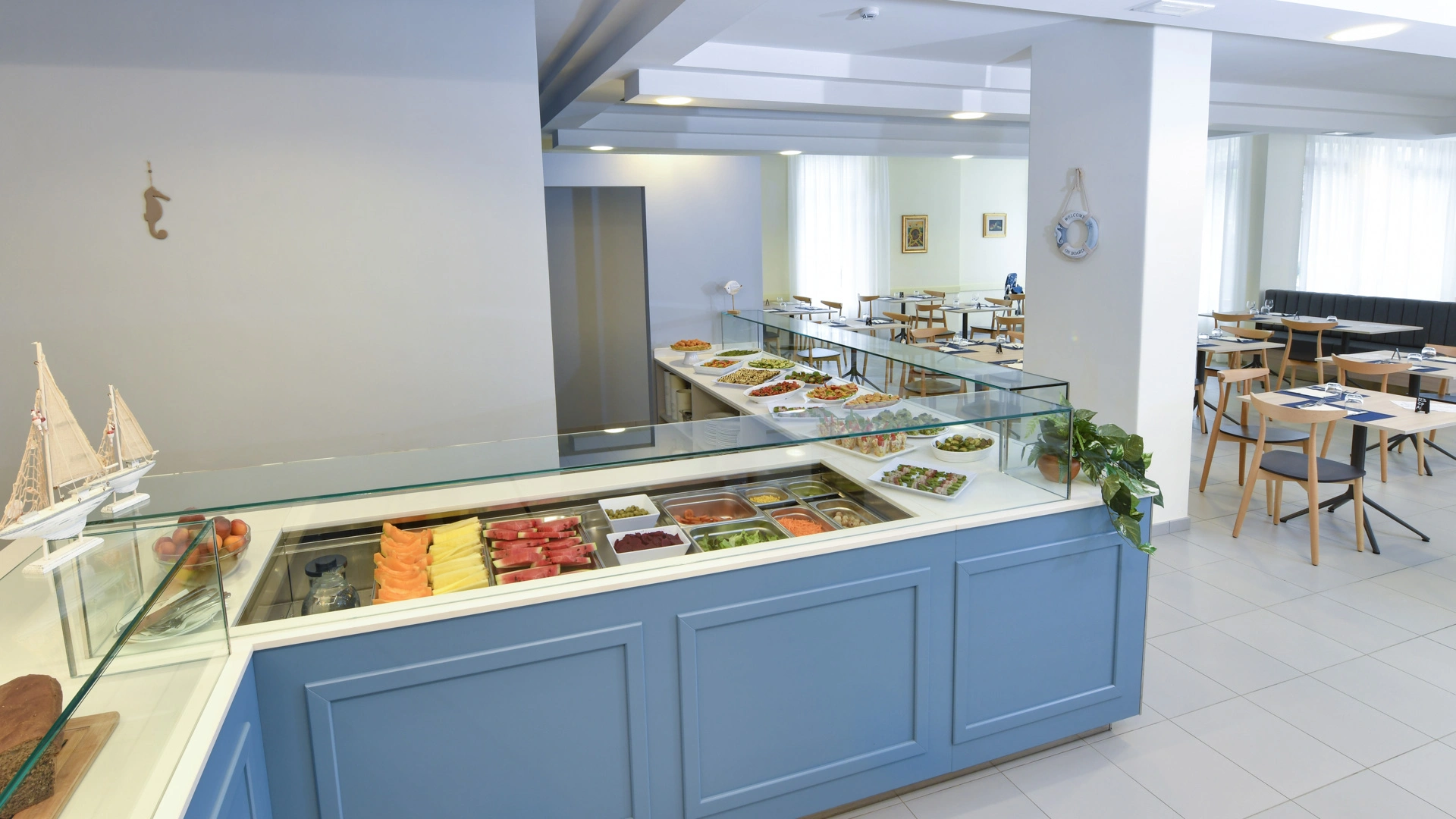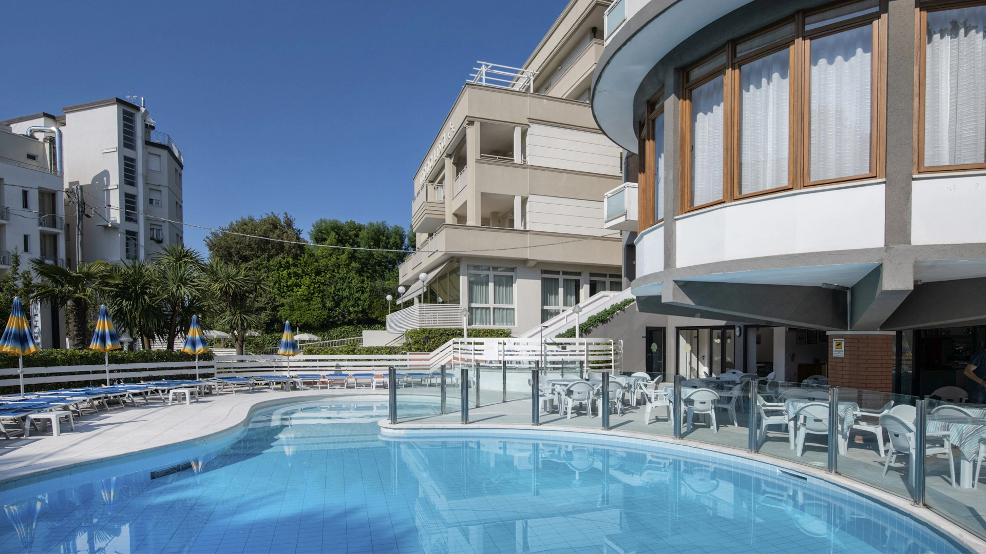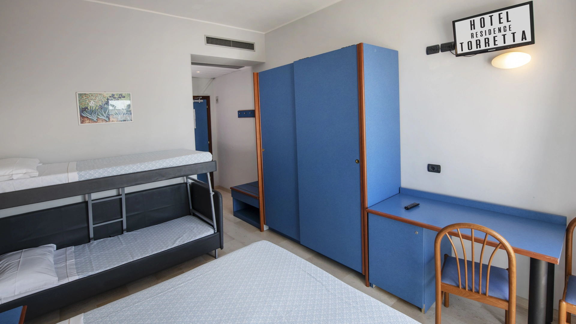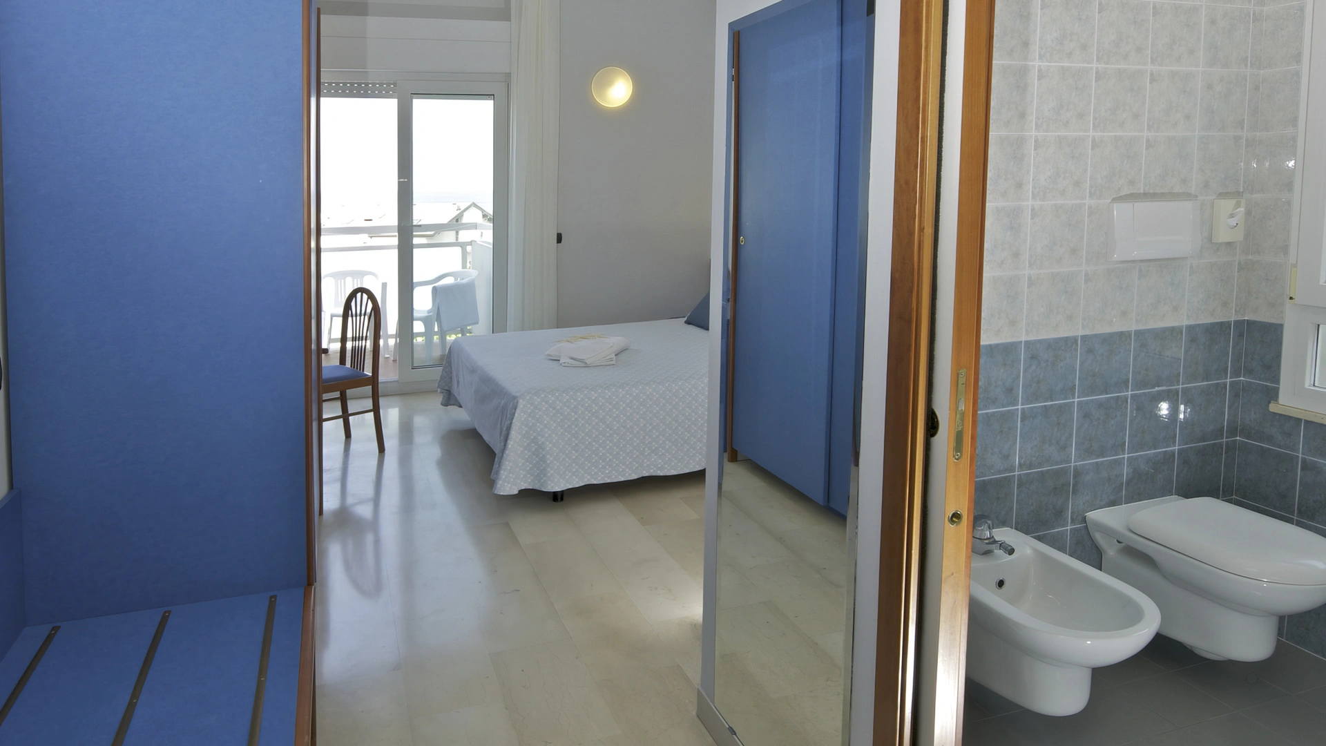 Les chambres récemment rénovées offrent une vue sur la mer, la piscine ou l'intérieur. Elles disposent toutes d'un balcon, d'une climatisation indépendante, d'une télévision avec chaînes Sky, d'une connexion Wi-Fi fibre optique 100 Mbit/s, d'un coffre-fort, d'un téléphone, d'une salle de bain complète avec douche, d'un sèche-cheveux et d'un set de courtoisie. Le minibar n'est pas approvisionné en cours d'utilisation.