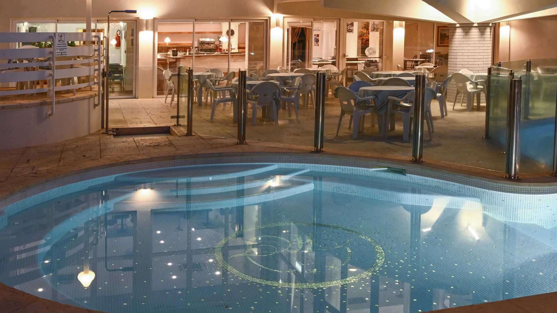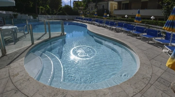 Tous les clients de l'établissement peuvent utiliser la piscine extérieure chauffée à 28-30°, d'une superficie de 130 m2 et équipée d'hydromassage et d'une zone d'eau peu profonde dédiée aux enfants. Au bord de la piscine se trouve un espace solarium équipé de parasols et de chaises longues.