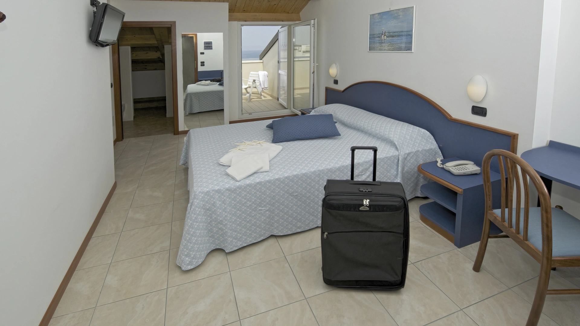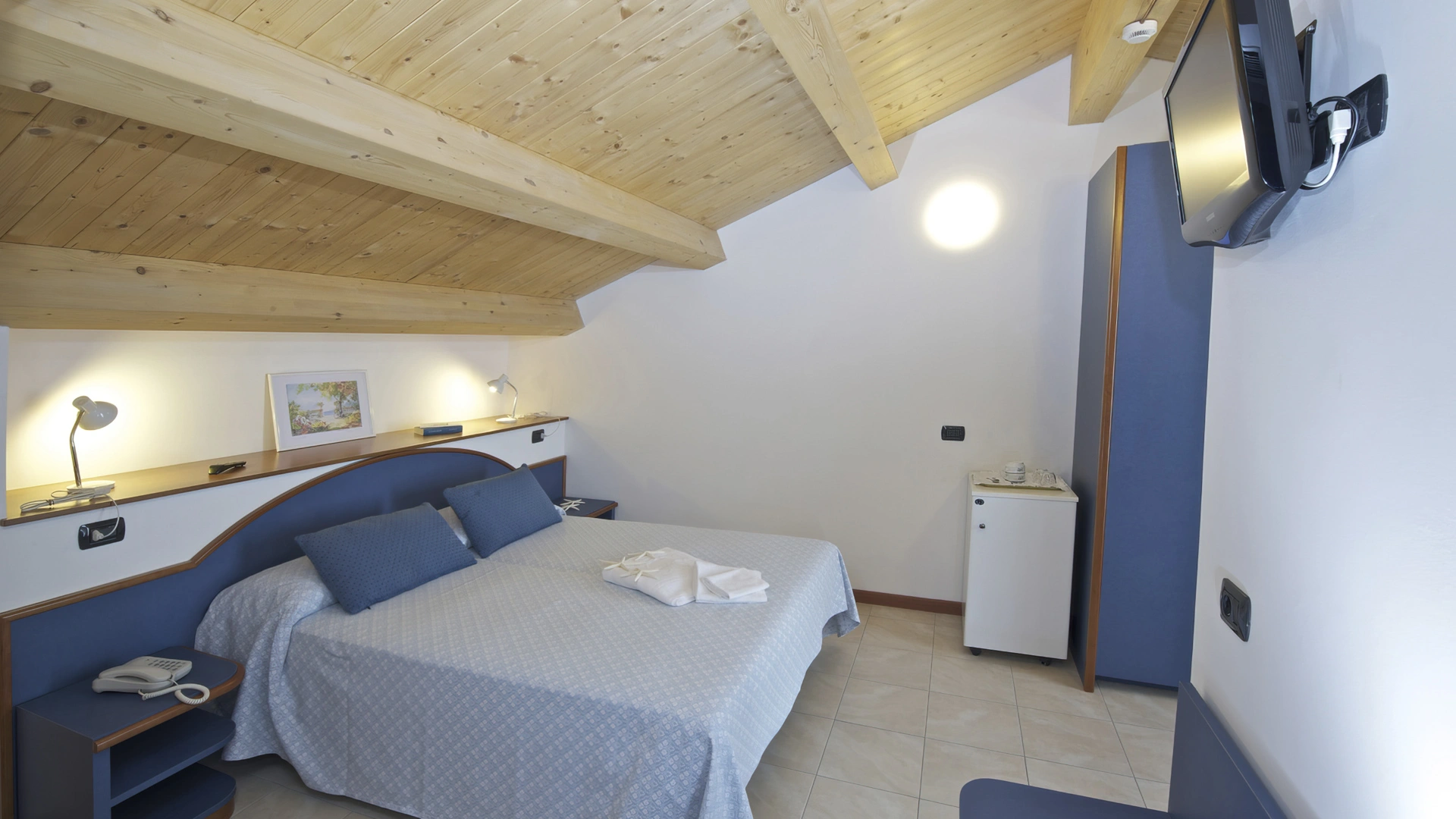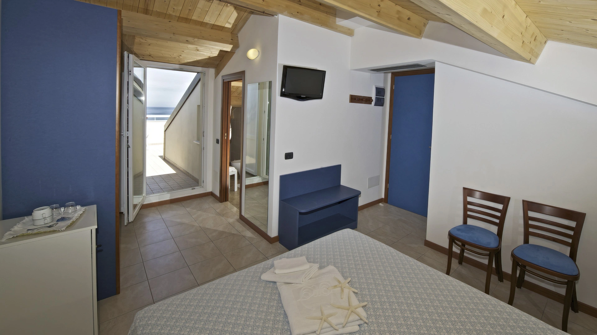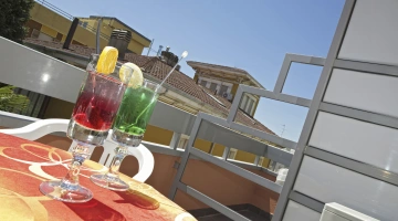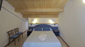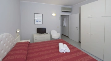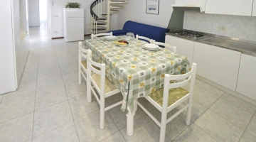 BILOCALI PLUS: appartement de deux pièces de 42 m2 avec grenier de 14 m2 et terrasse de 3,5 m2. Ils sont situés au troisième étage. Ils peuvent accueillir jusqu'à 6 personnes. En plus des commodités des appartements de deux pièces, ils offrent 2 lits supplémentaires dans le grenier avec petite salle de bain et terrasse, reliés à l'étage inférieur par un escalier en colimaçon, parfaits pour les enfants/adolescents. Pendant votre séjour, le changement du linge de lit deux fois par semaine et du linge de toilette une fois par semaine est effectué gratuitement.