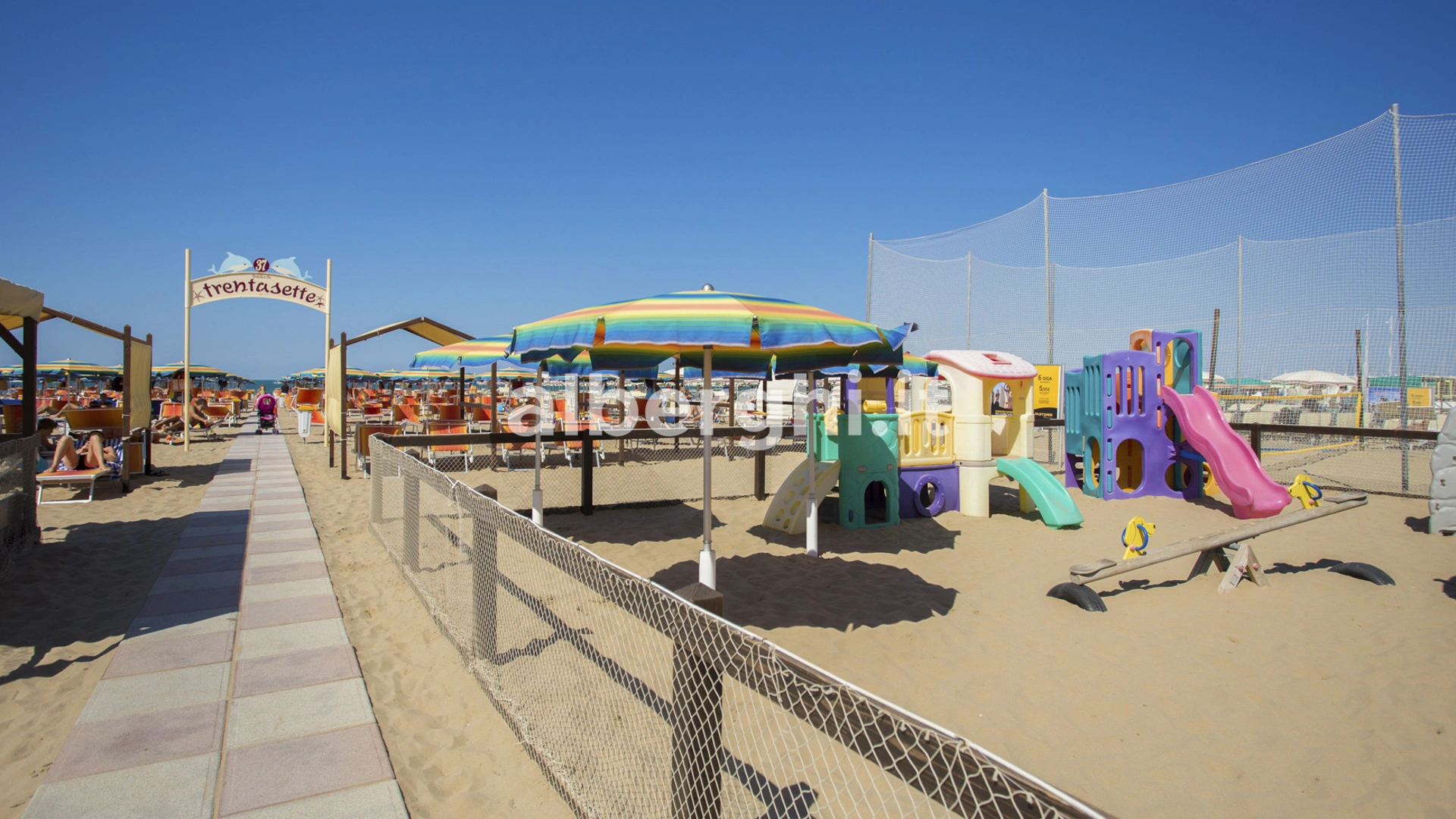 Sur la plage: espace animation et aire de jeux.