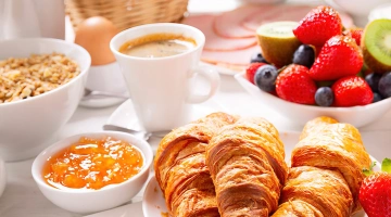 PETIT-DÉJEUNER: buffet avec produits sucrés et salés.