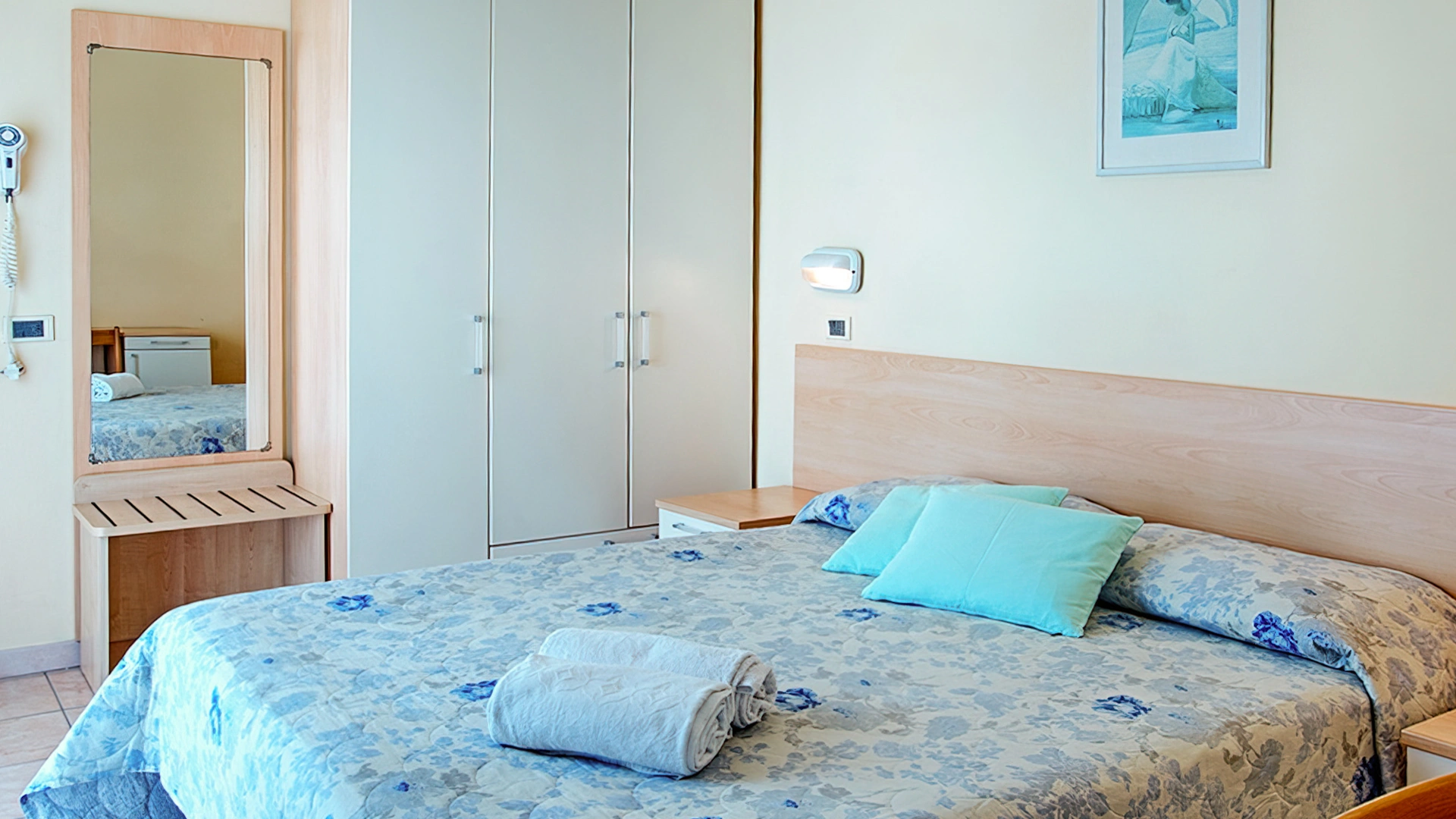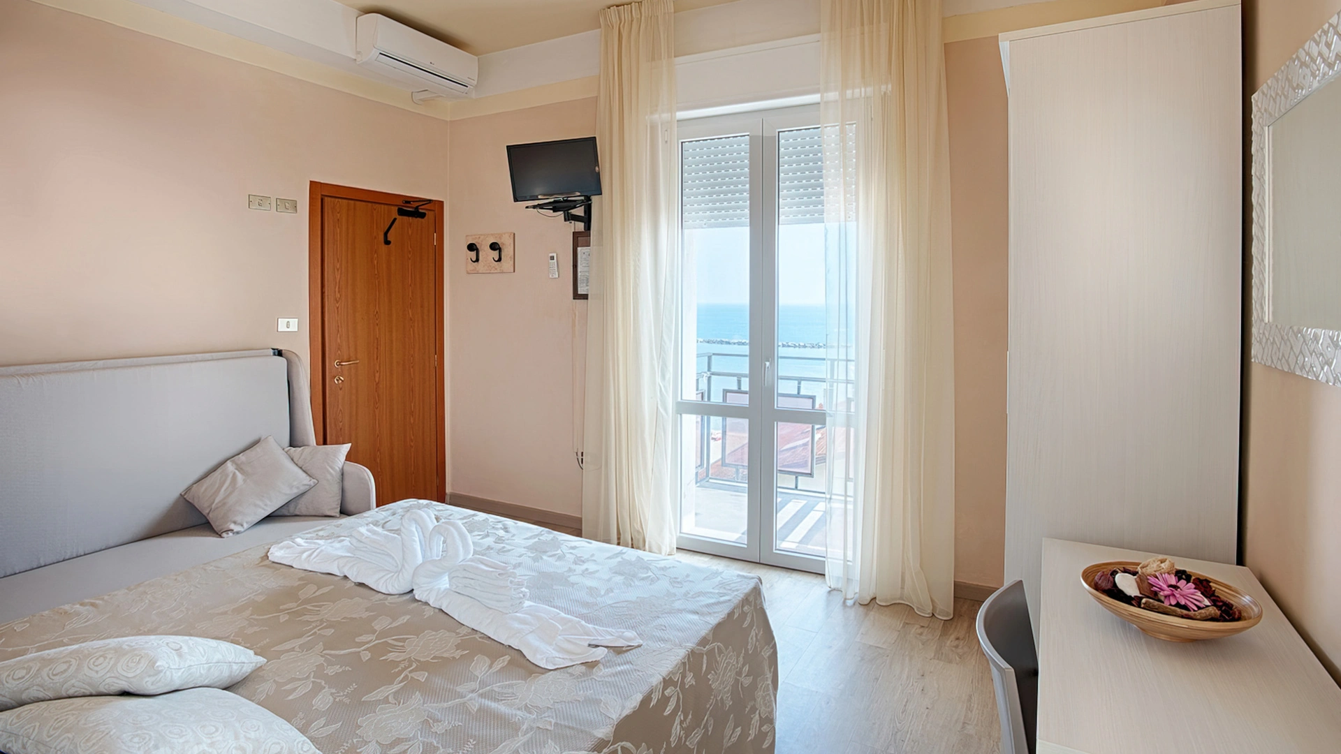 Les chambres sont climatisées et équipées de balcon, TV satellite, coffre-fort, Wi-Fi, téléphone, salle de bain privée avec douche, sèche-cheveux et set de courtoisie. Minibar sur demande.