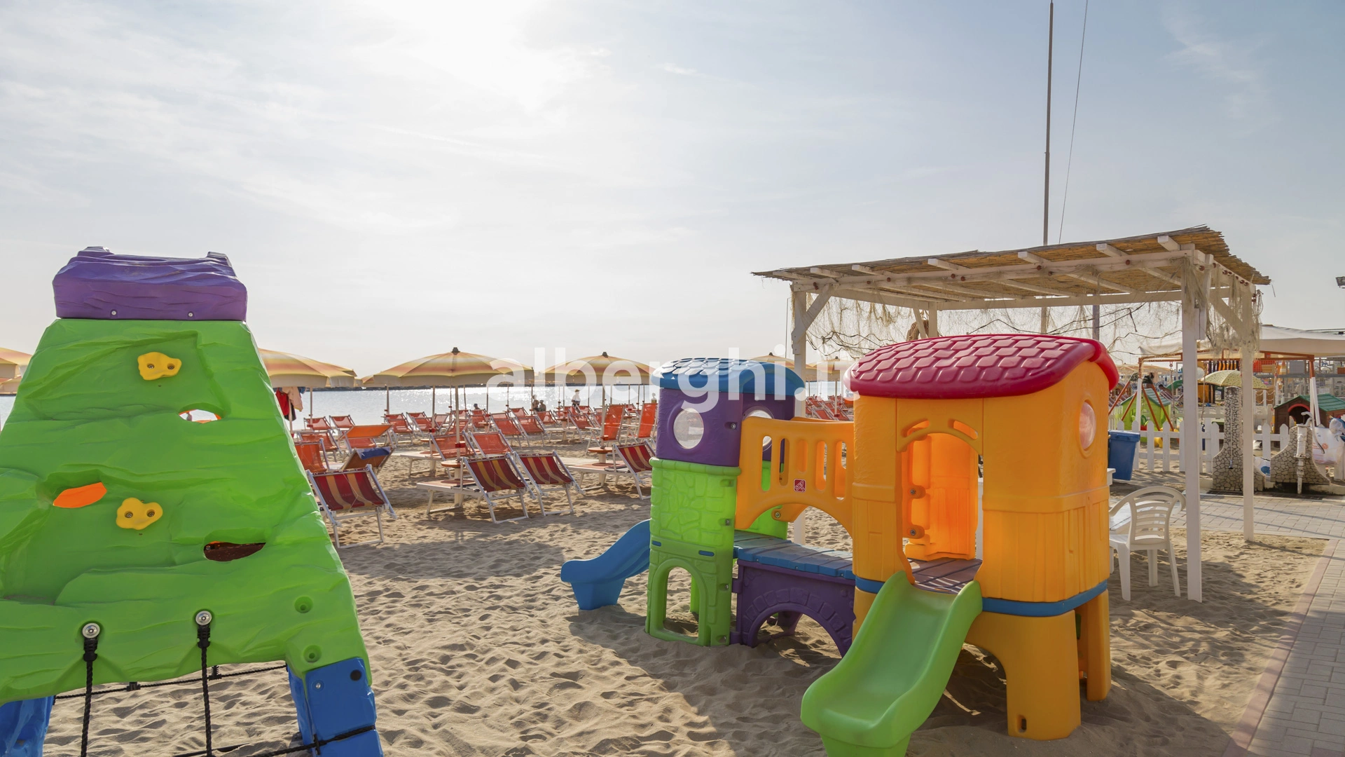 Sur la plage: aire de jeux pour enfants.