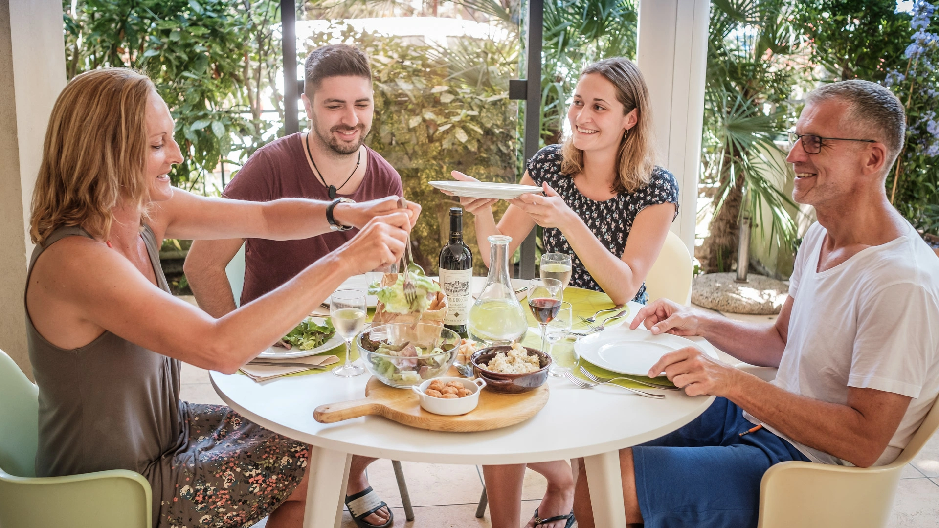 DÉJEUNER ET DÎNER: cuisine locale avec menu à 2 choix, suivi d'un buffet d'accompagnements et de desserts ; les pâtes et les desserts sont faits maison.