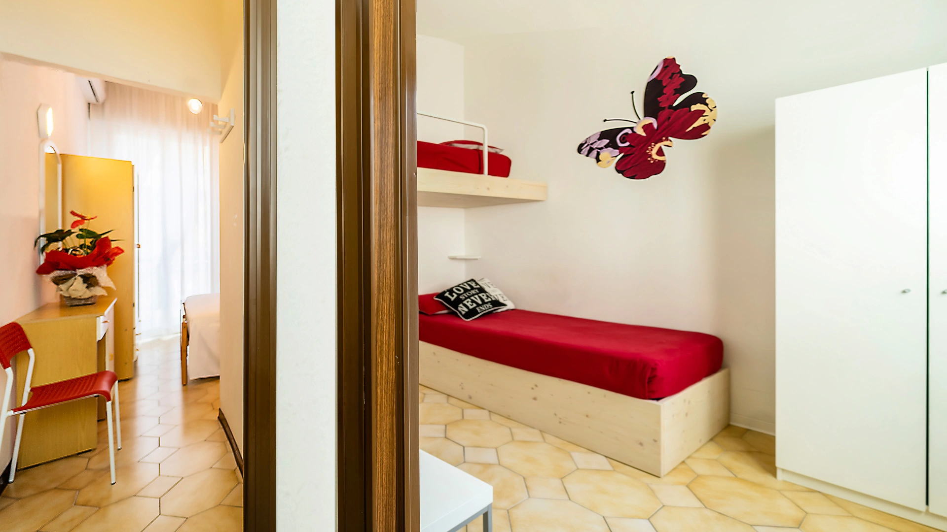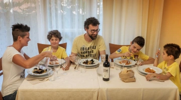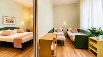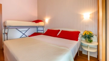 FAMILLE: chambres triples et quadruples, ou chambres communicantes avec lits étendus, climatisation.