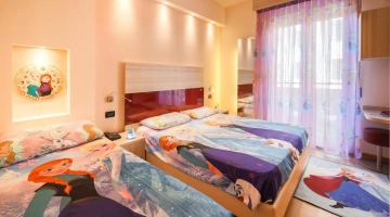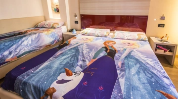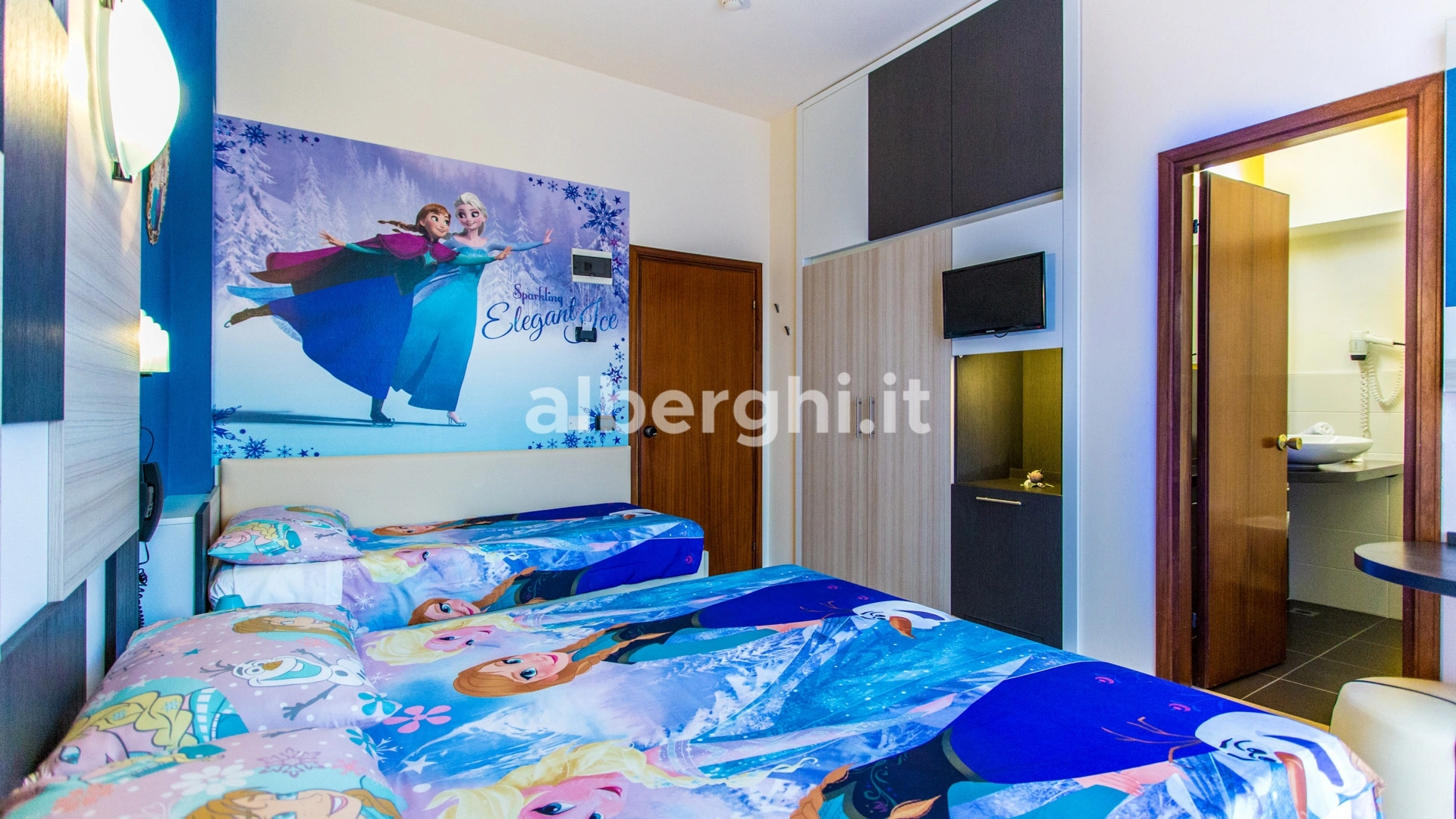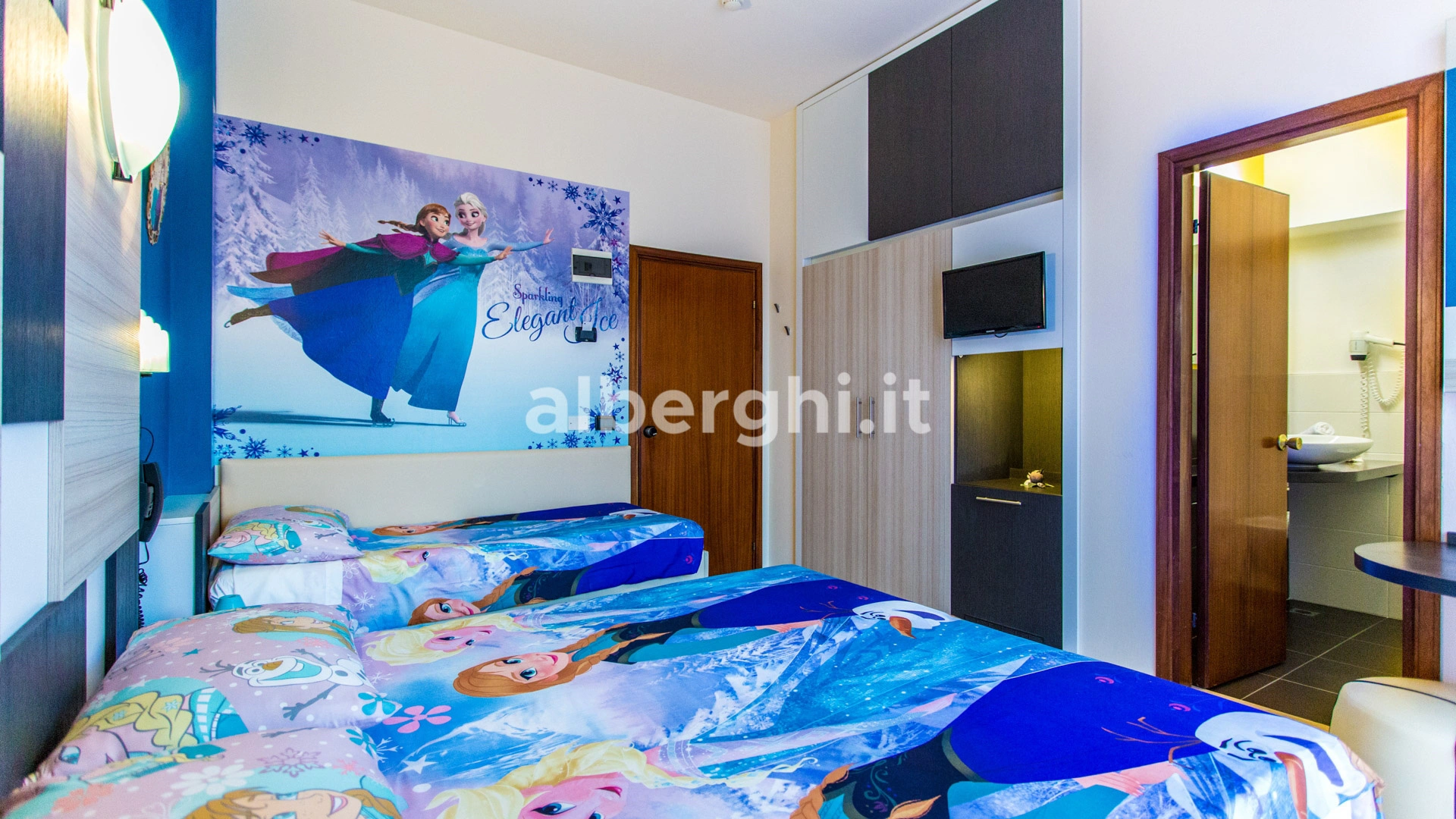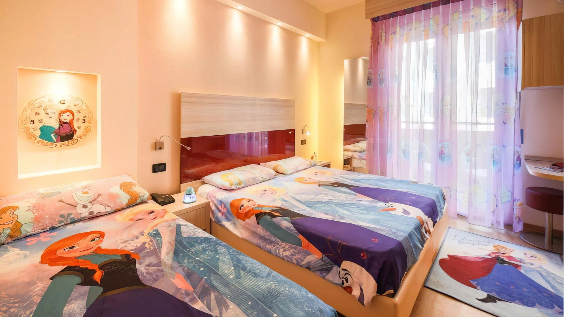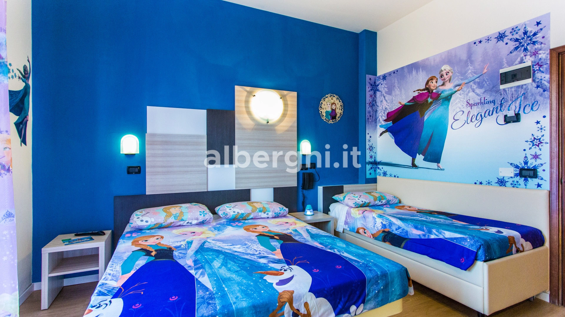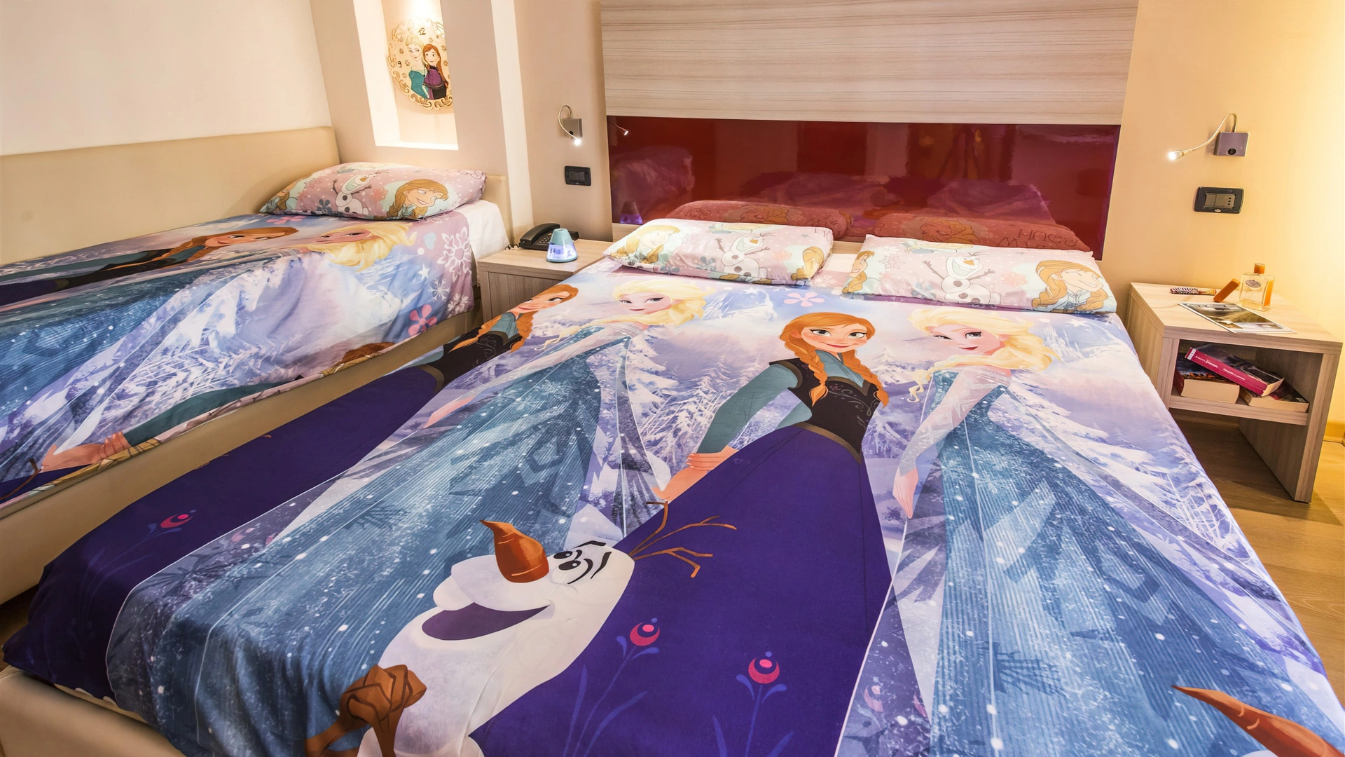 CHAMBRE PRINCESSE DE GLACE: une chambre entièrement thématisée dédiée à Frozen, incluant un mini-bar.