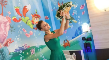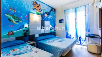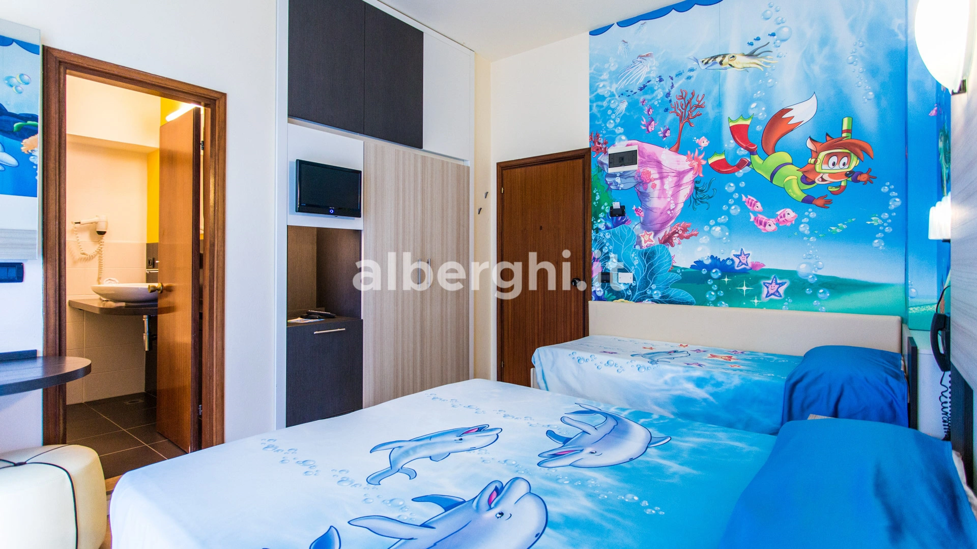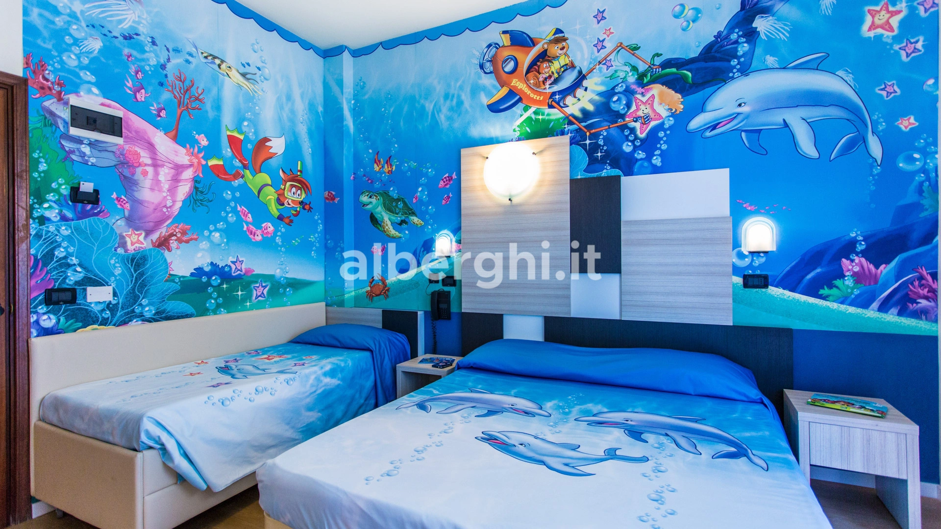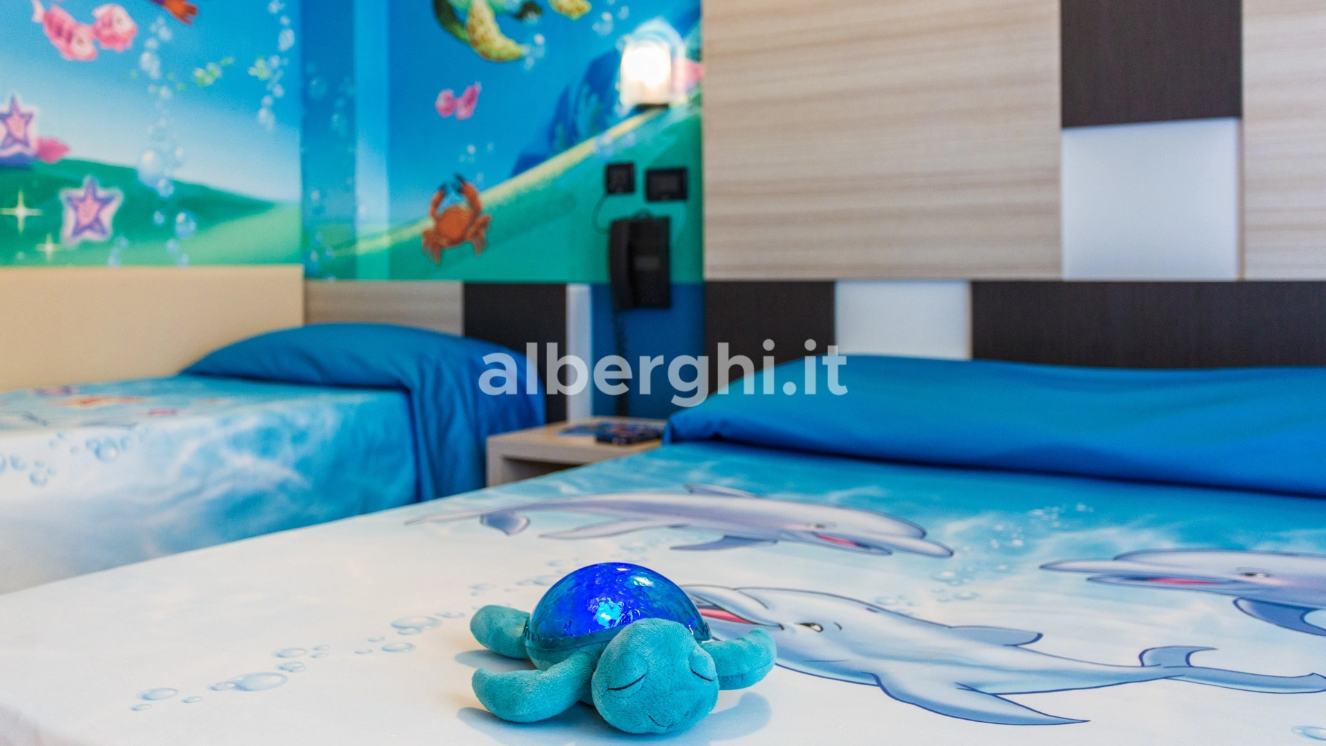 GINA ESPLOROOM: aménagement sur le thème marin avec lampe magique qui recrée les sons marins, incluant un mini-bar.