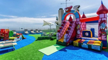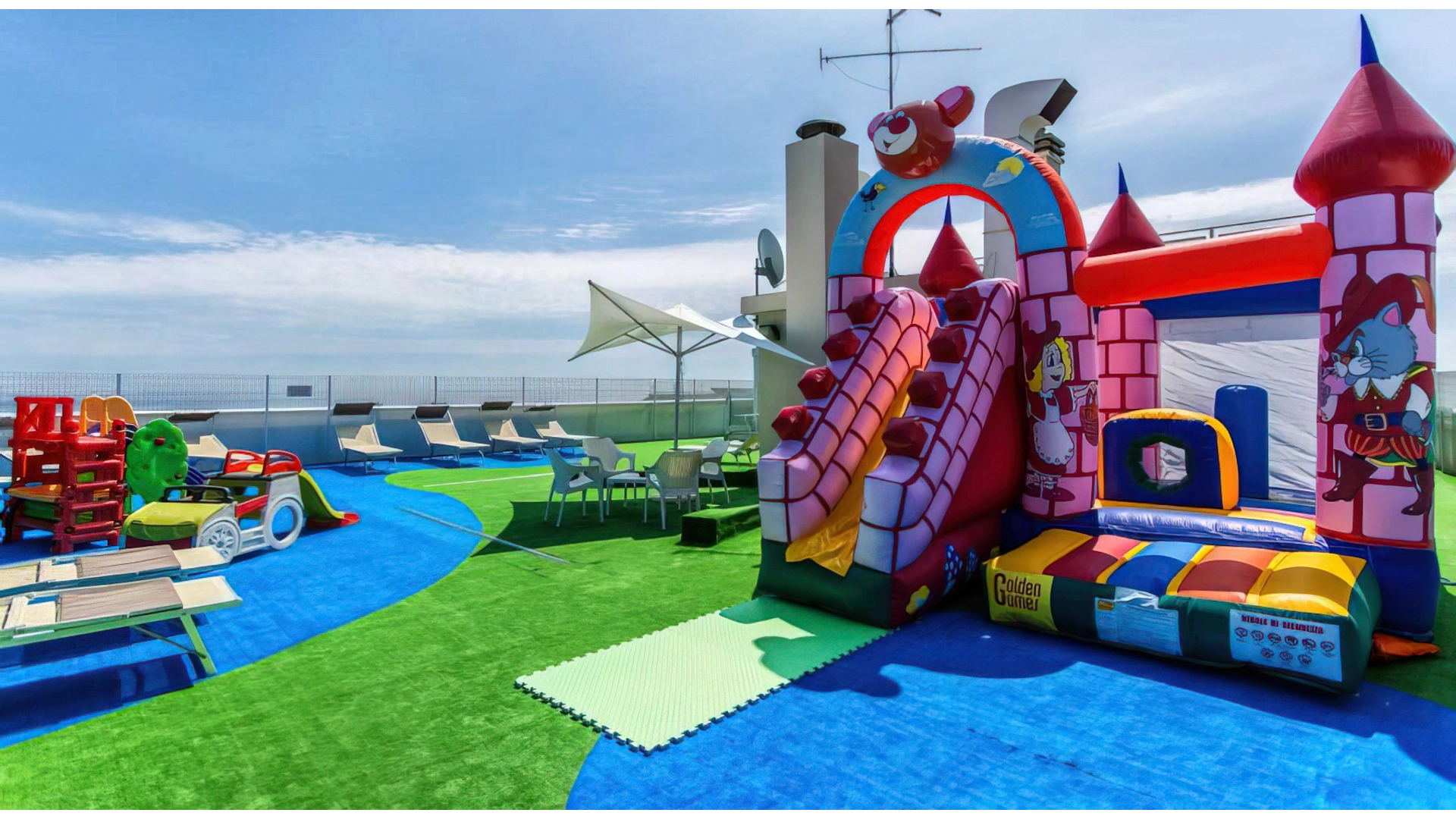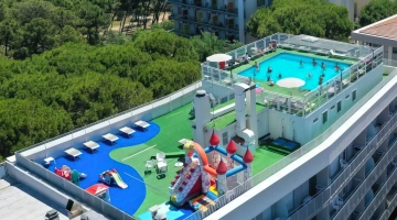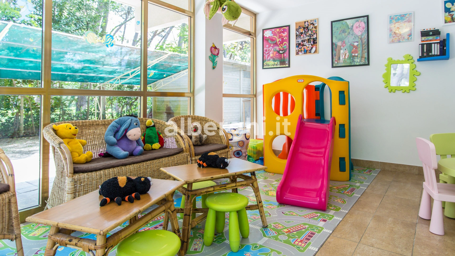 A l'hôtel: nouvelle mascotte Marino l'écureuil et nouvelles activités dédiées à la nature (jeux, ateliers thématiques et pique-niques dans la pinède), poussettes, piscine pour enfants avec aire de jeux et structures gonflables, aire de jeux intérieure, ateliers créatifs, animations avec 3 opérateurs tous les jours (hors week-end), pédiatre sur demande (payant). Espace de jeux de 200 m² avec aire de jeux, aire de jeux, structure gonflable et PlayStation 5 ! Pour les repas, les clients peuvent manger avec l'animateur à une table dédiée.