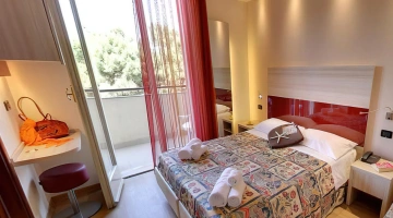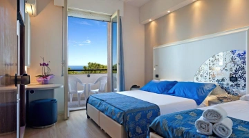 REGINA: balcon avec vue sur la mer et la pinède, nouveaux matelas Dorelan, service de bar le soir et tous les services de la chambre Principessa.