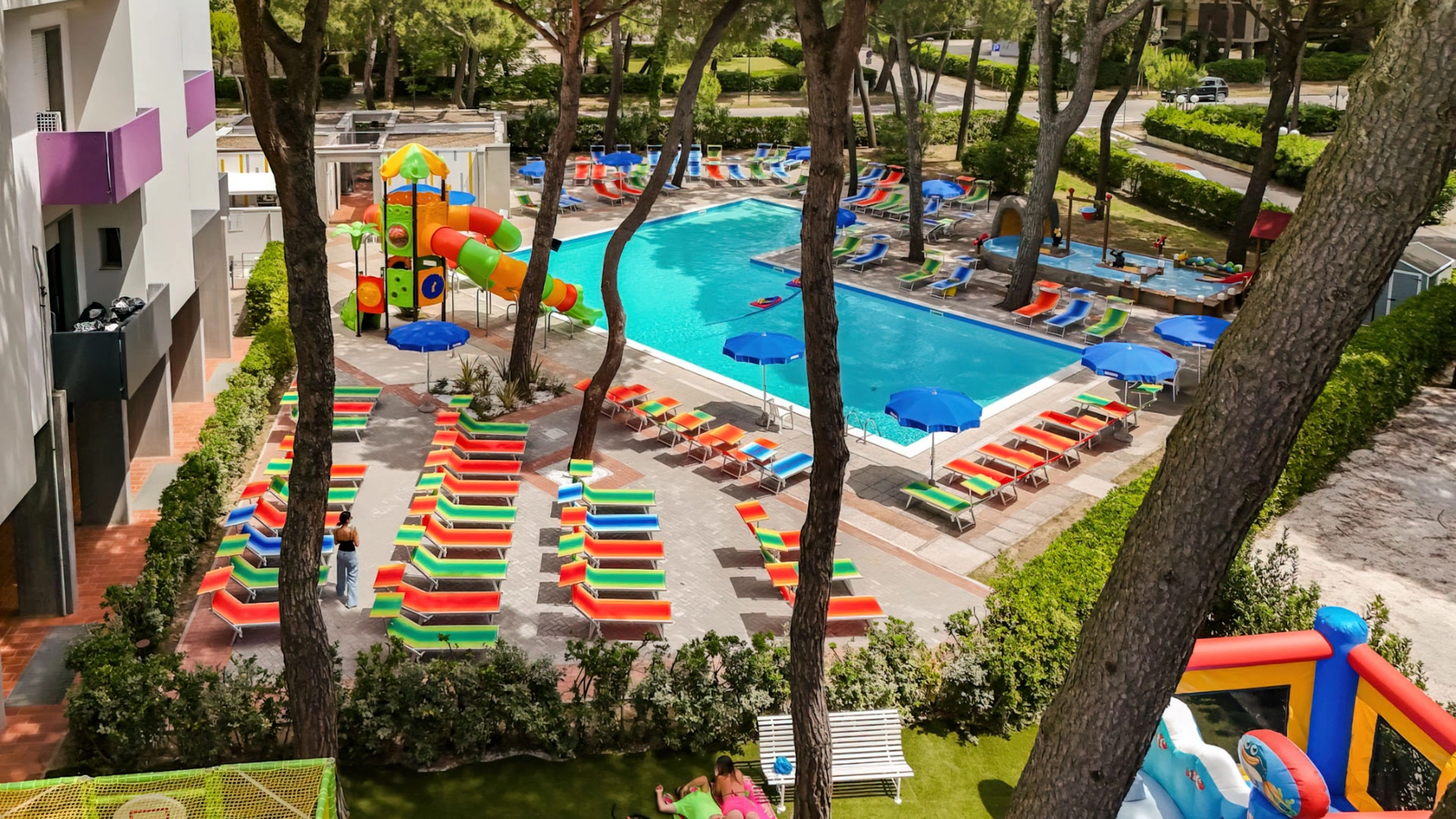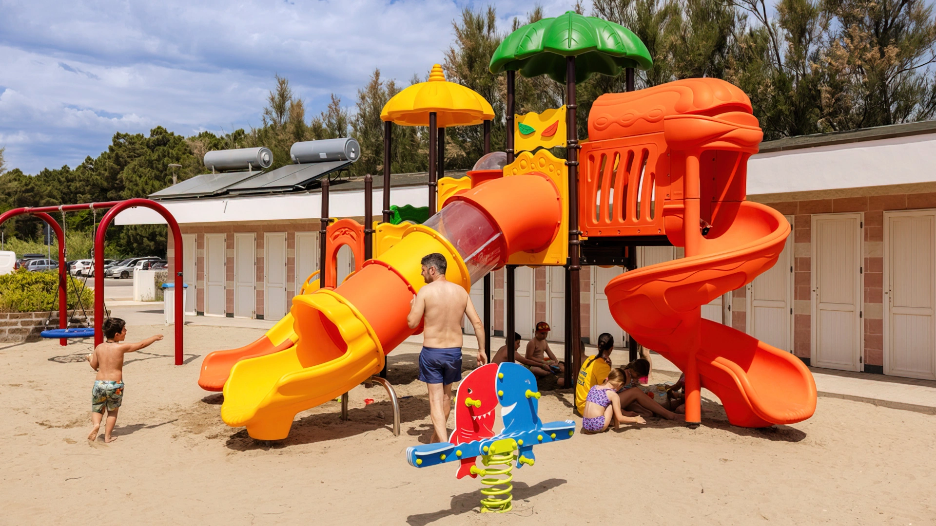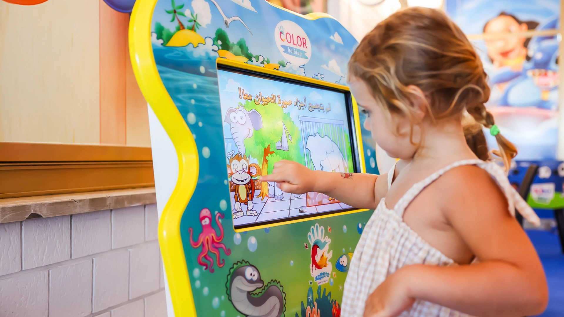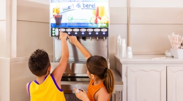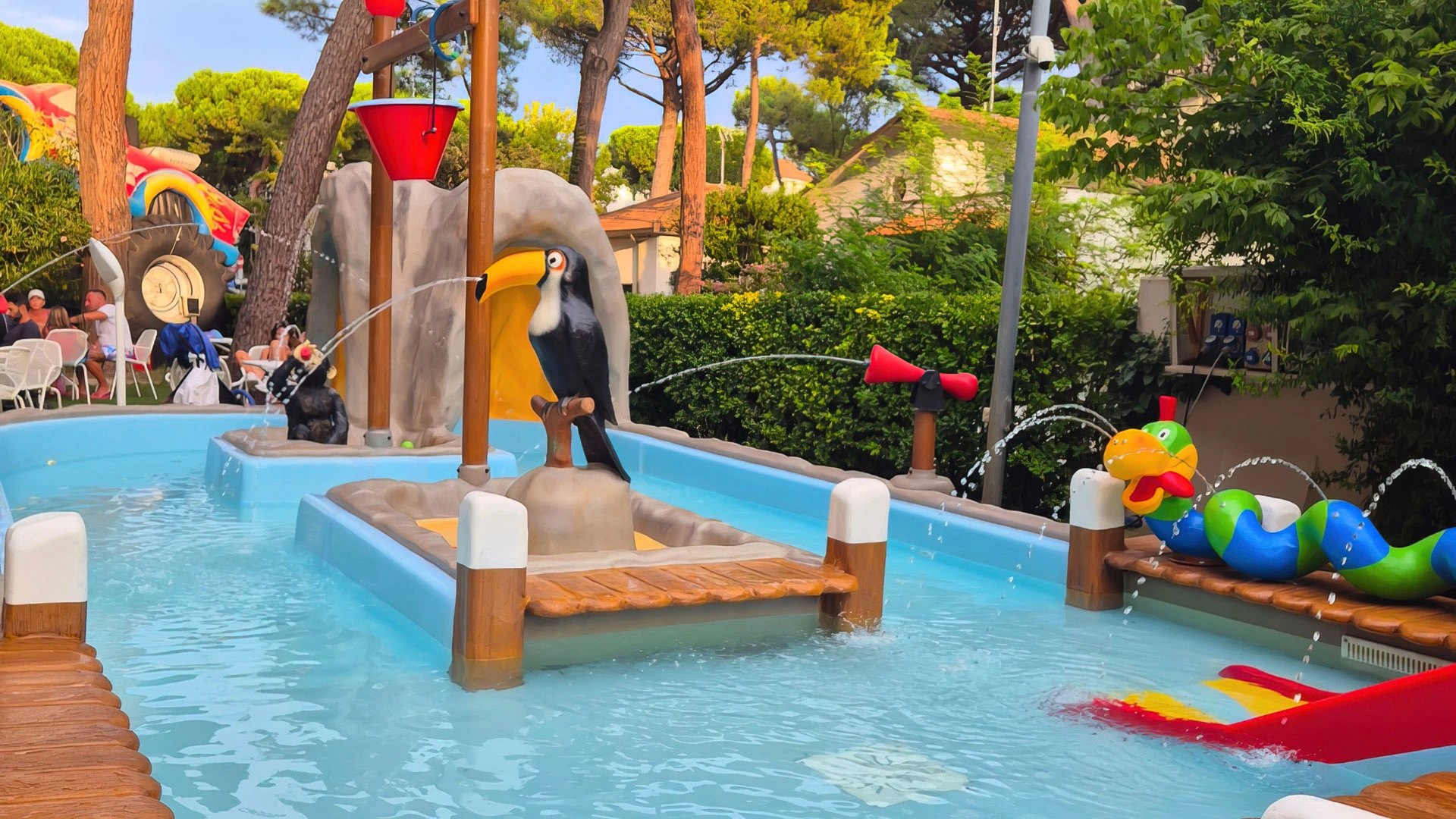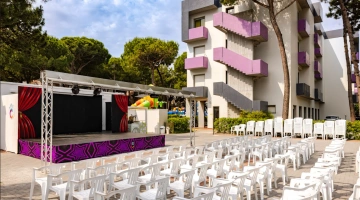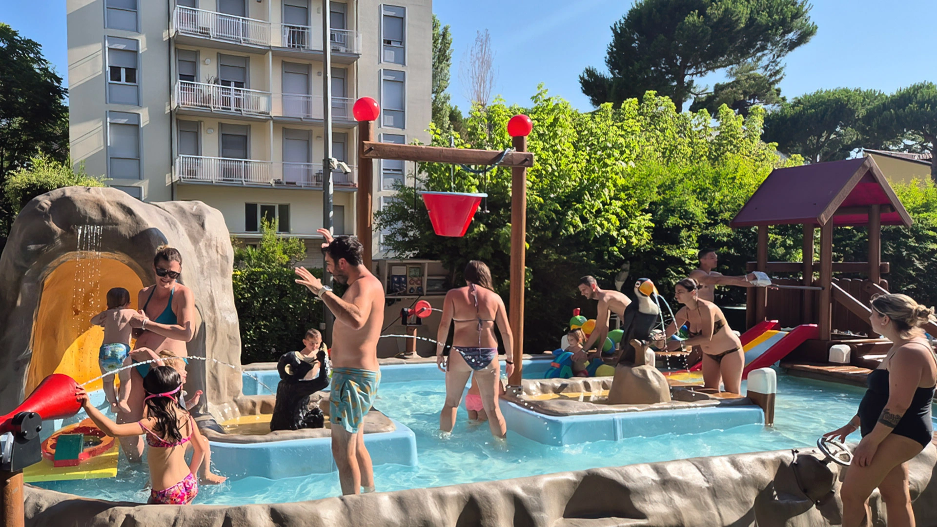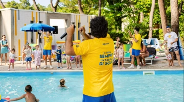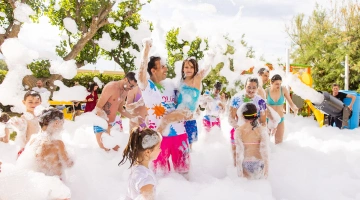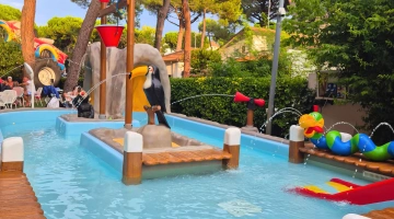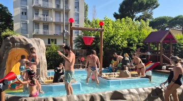 L'hôtel propose : un parc aquatique Acqua Splash avec toboggans et jeux d'eau pour enfants, une piscine, une aire de jeux gonflable, un distributeur de jus ouvert 24h/24 à hauteur d'enfant, des aires de jeux intérieures et extérieures, une piste de voitures, des animations, des vélos avec sièges enfant, des poussettes, des goûters et un espace dédié aux nounous.
