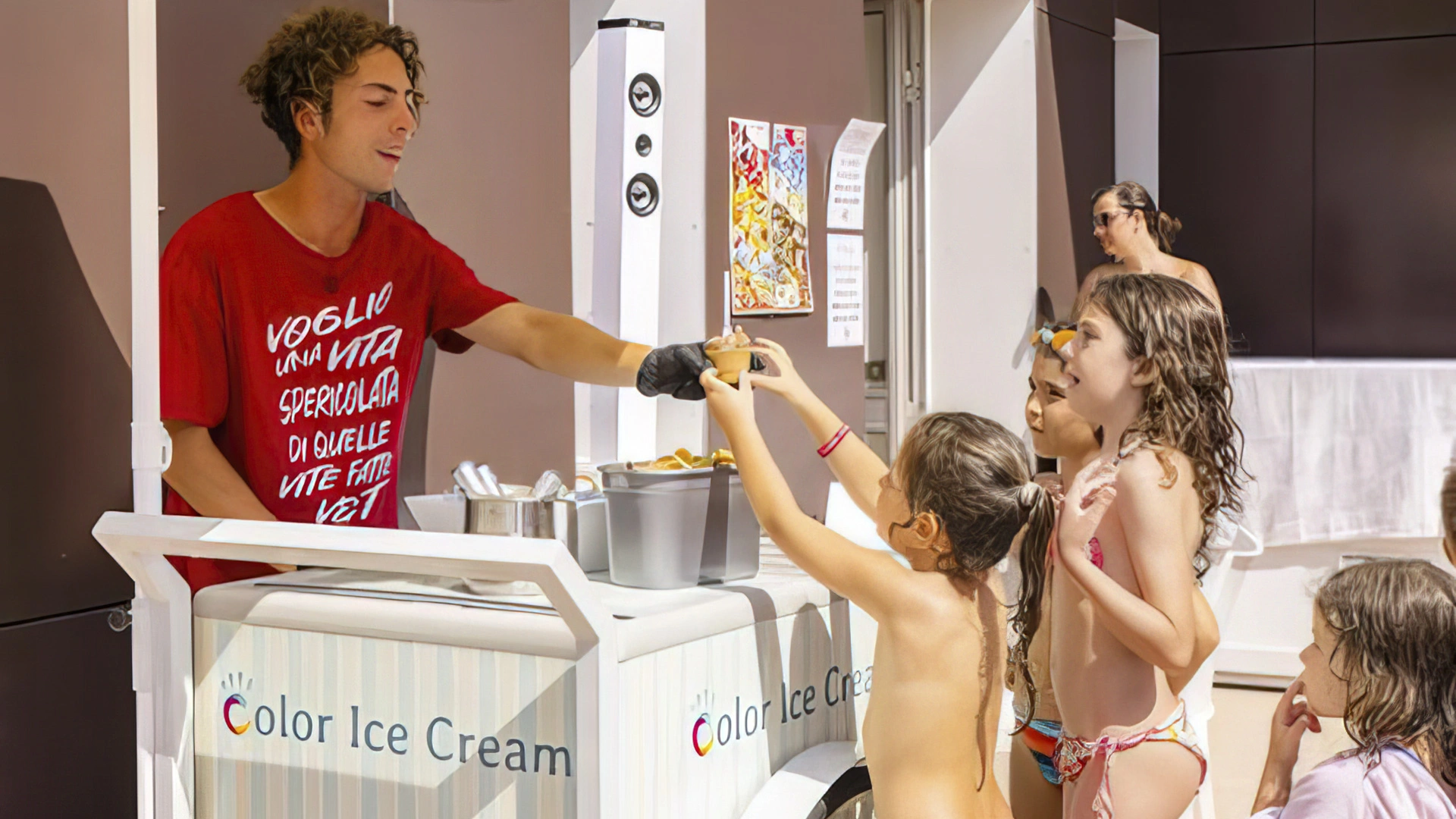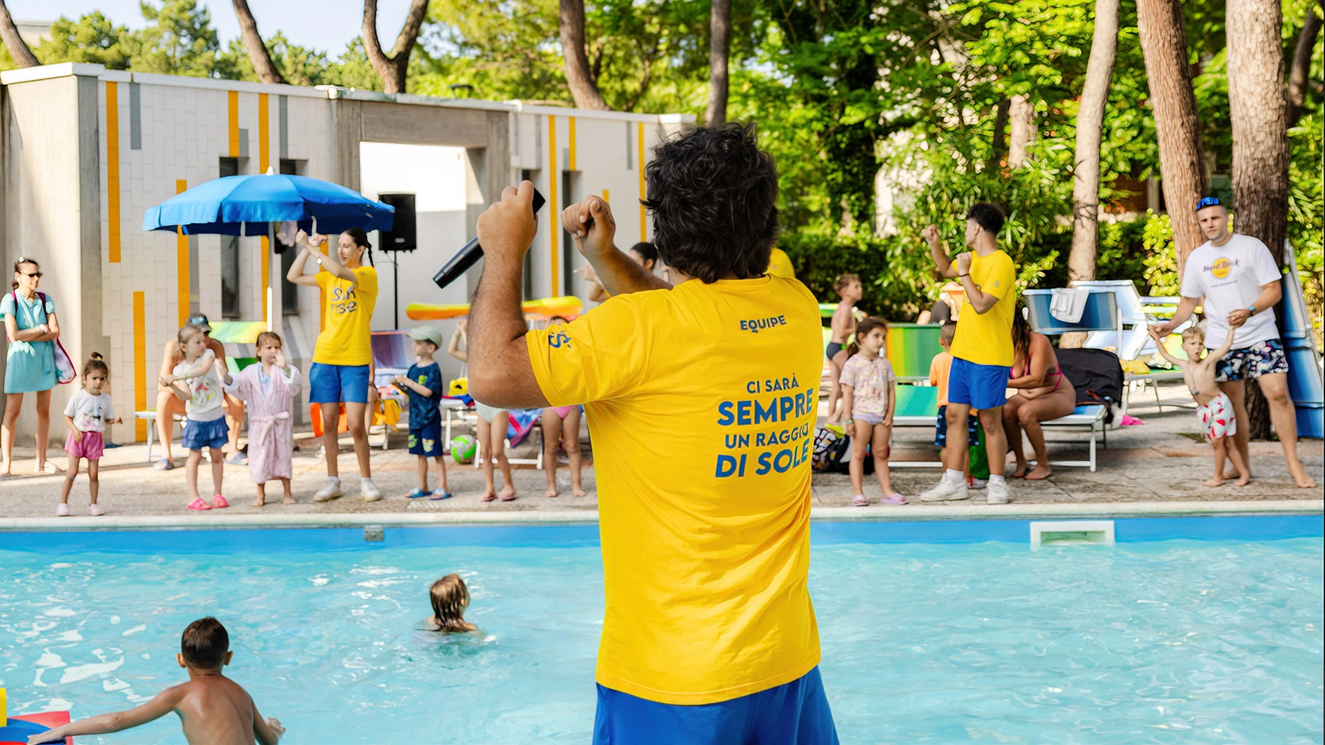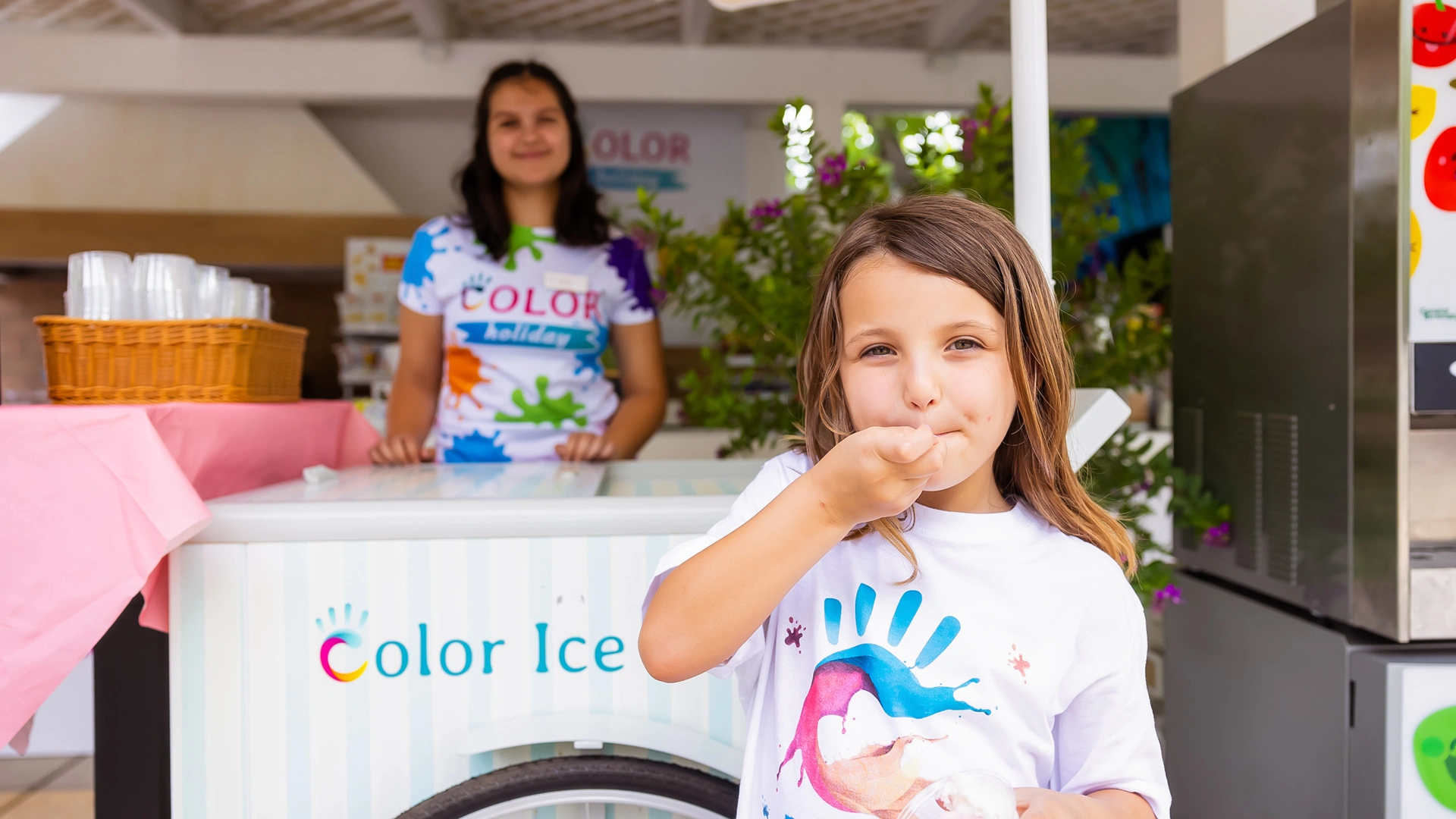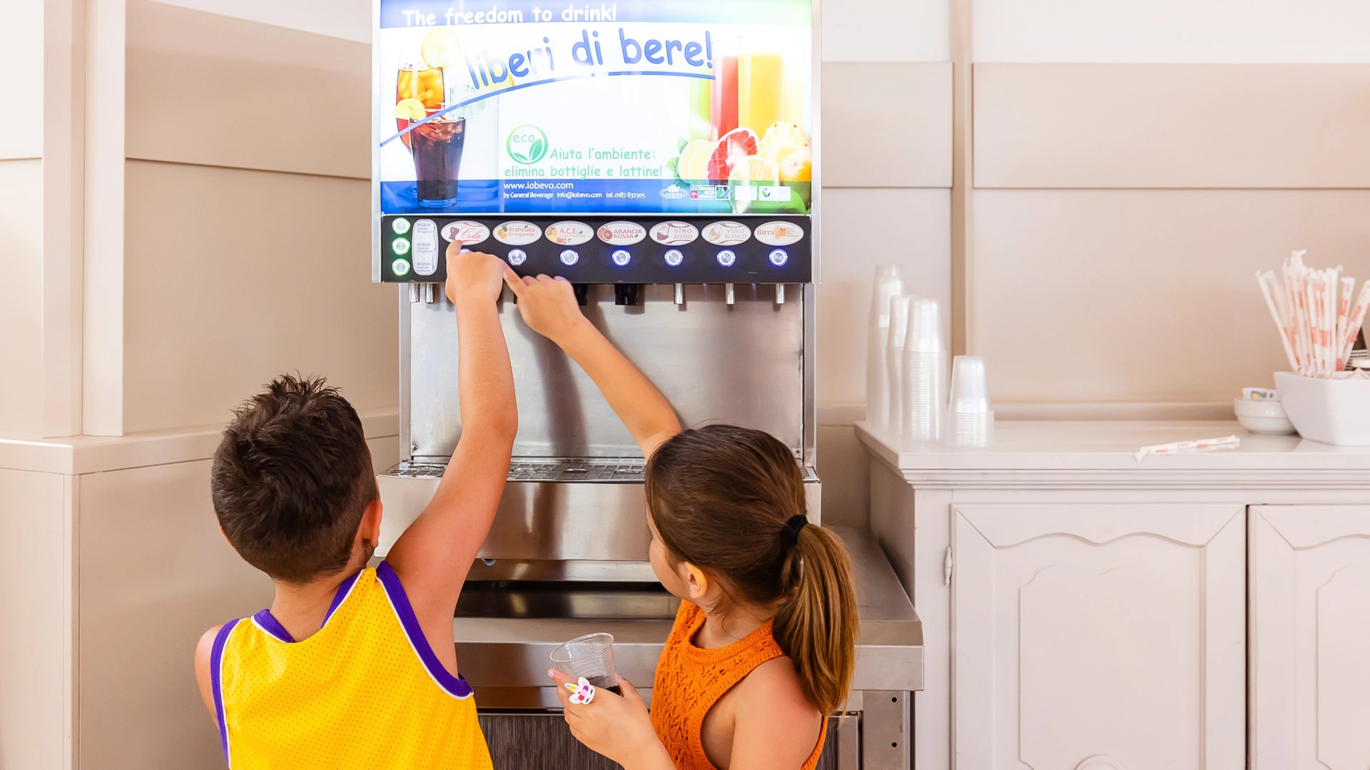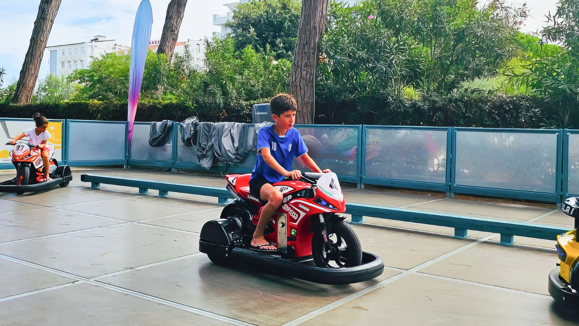 L'hôtel propose : un parc aquatique Acqua Splash avec toboggans et jeux d'eau pour enfants, une piscine, une aire de jeux gonflable, un distributeur de jus ouvert 24h/24 à hauteur d'enfant, des aires de jeux intérieures et extérieures, une piste de voitures, des animations, des vélos avec sièges enfant, des poussettes, des goûters et un espace dédié aux nounous.