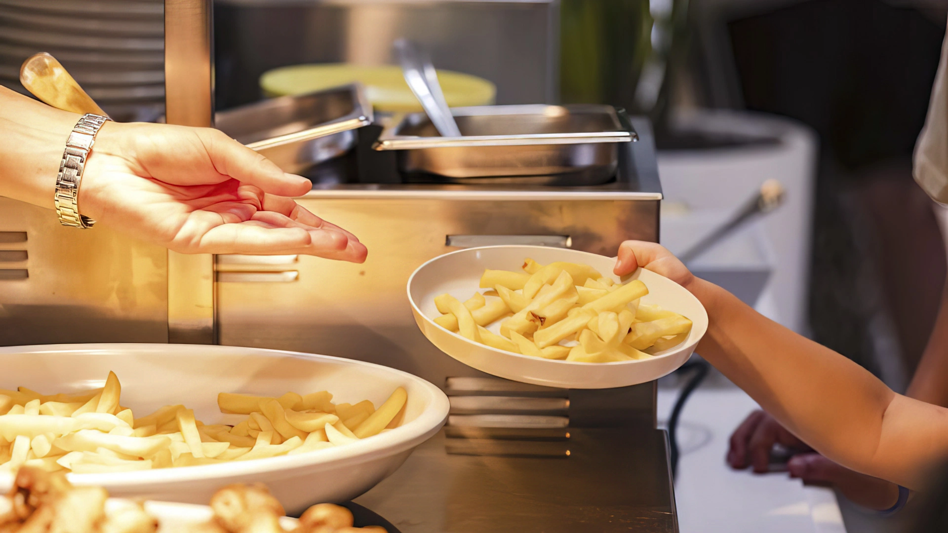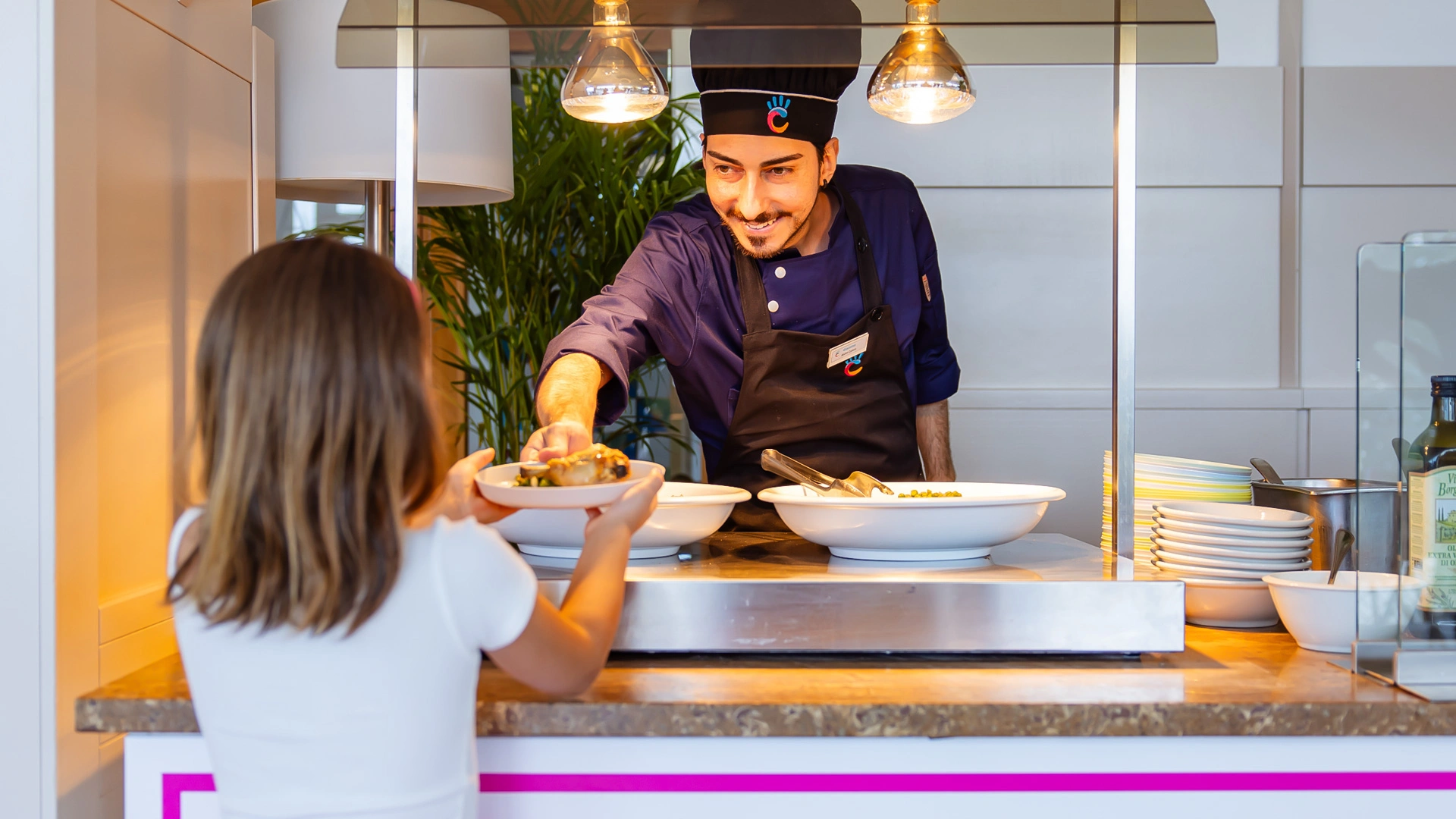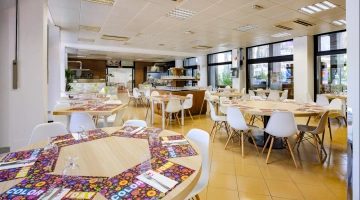 Aux heures des repas : chaises hautes, menus pour bébés, cuisine équipée, chauffe-biberons, déjeuner avec l’animateur.