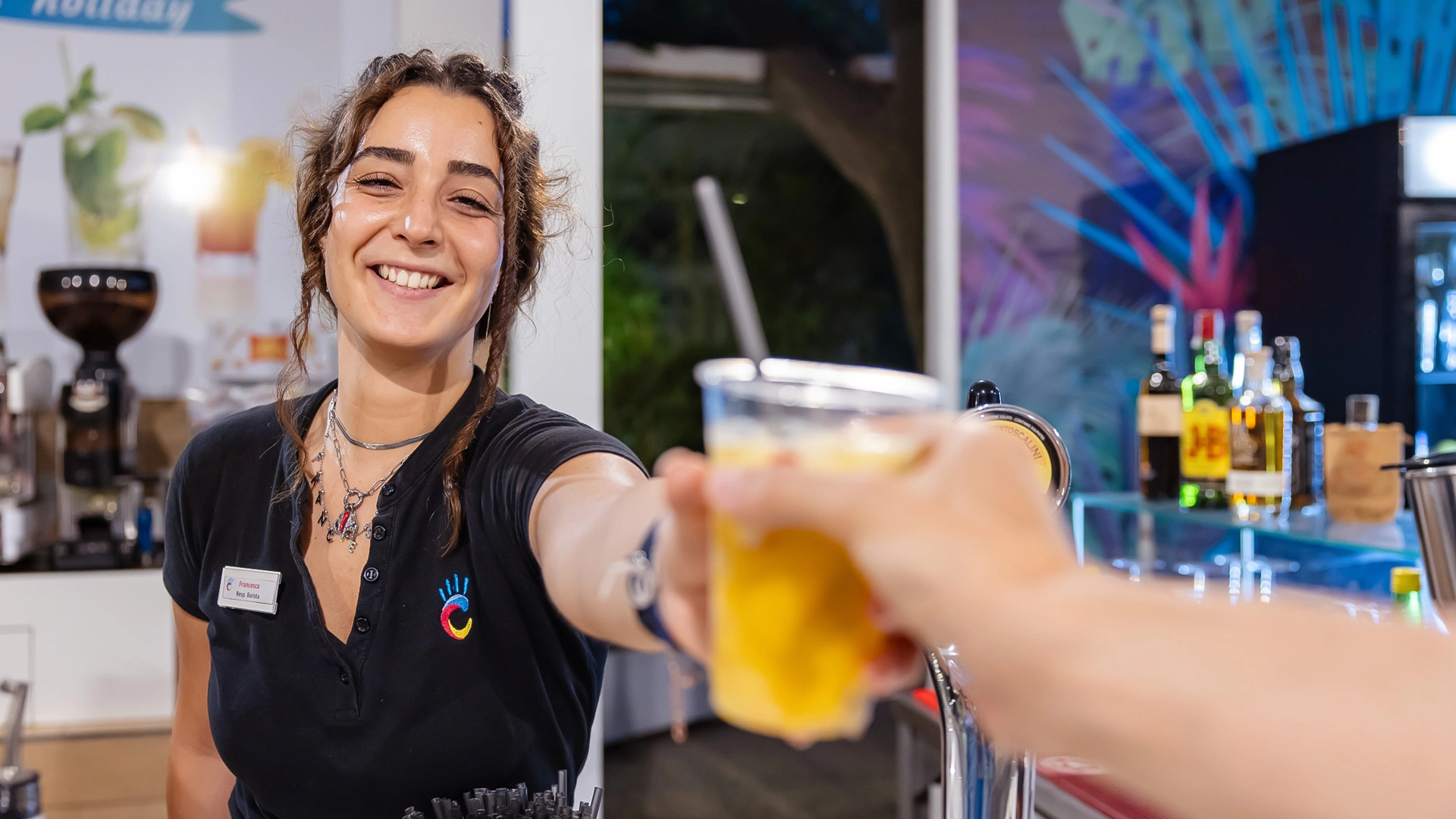 AUTRES : Apéritif maison au déjeuner et au dîner, boissons pression à volonté toute la journée, vin blanc ou rouge, bière pression, café et cappuccinos, cocktails offerts de 20h à minuit. Coin restauration l'après-midi de 15h à 18h avec piadinas et hot-dogs.