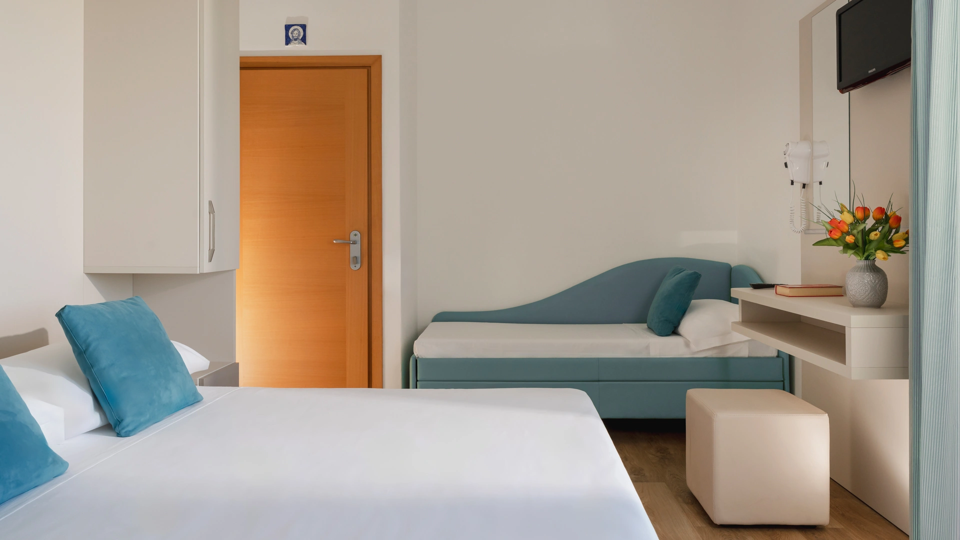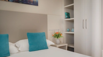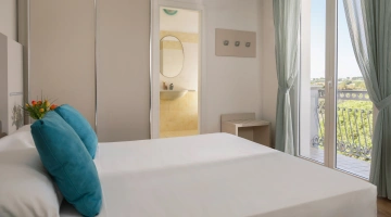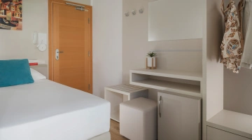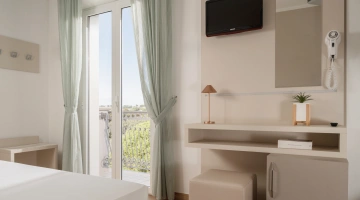 Les chambres sont lumineuses et modernes, avec un mobilier neuf, lits, matelas et surmatelas neufs pour un repos parfait. Chaque chambre dispose de balcon, climatisation, Wi-Fi rapide, TV, salle de bain privée et de nombreux autres conforts. Espaces soignés et propres, pensés pour un séjour relaxant.