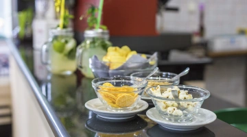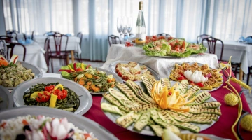 DÉJEUNER ET DÎNER: menu à 2 choix avec plats typiques de la cuisine locale, entrées de légumes servies à table. Eau incluse dans toutes les formules.