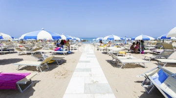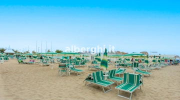 L'Hôtel a un accord avec Bagni Gianni et Bagni Calypso à Misano Adriatico et avec Bagni Ale zone 3 à Riccione, un peu plus loin. Les Bains Calypso sont équipés d'une piscine et de baignoires d'hydromassage dont l'utilisation est cotée séparément et doit être réglée directement sur la plage. Les deux solutions offrent aux clients des espaces de détente, des terrains de sport sur le sable, des jeux pour les enfants et des animations pour tous. Les animaux sur la plage disposent de places dédiées et leur présence doit être signalée au moment de la réservation.