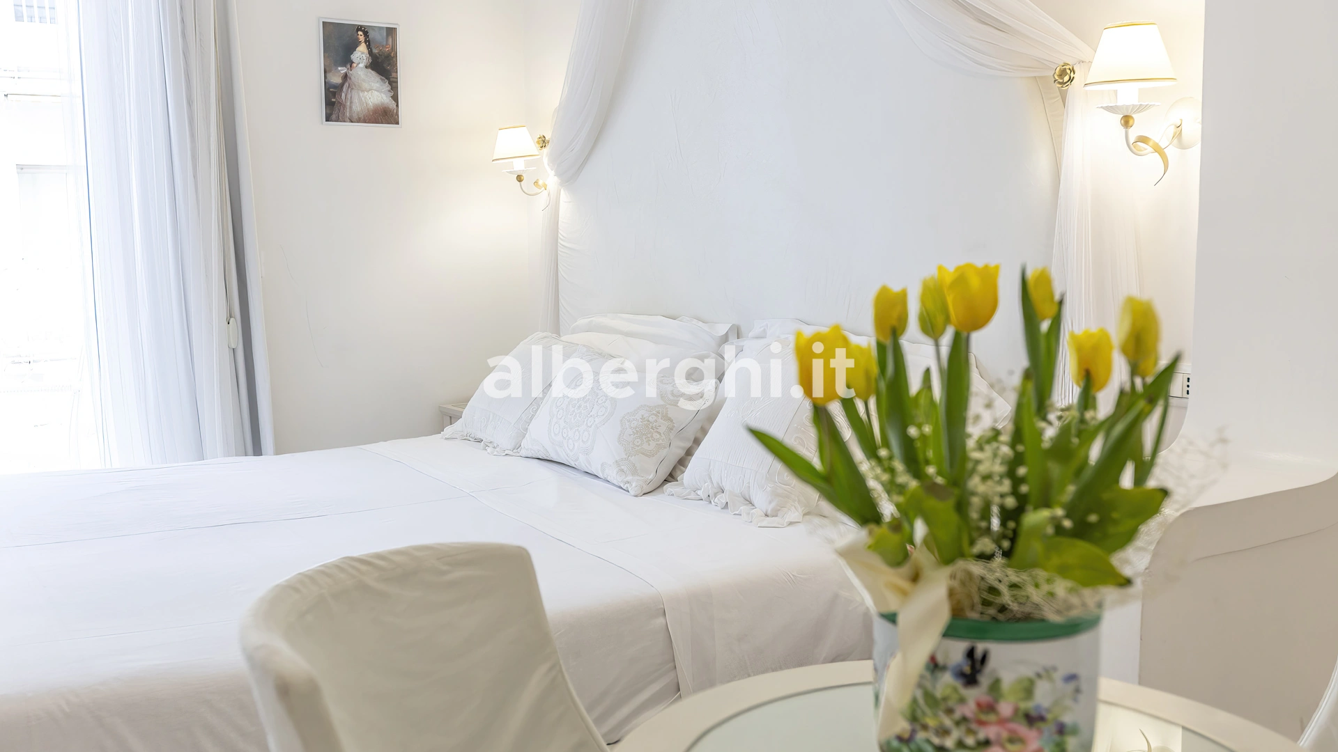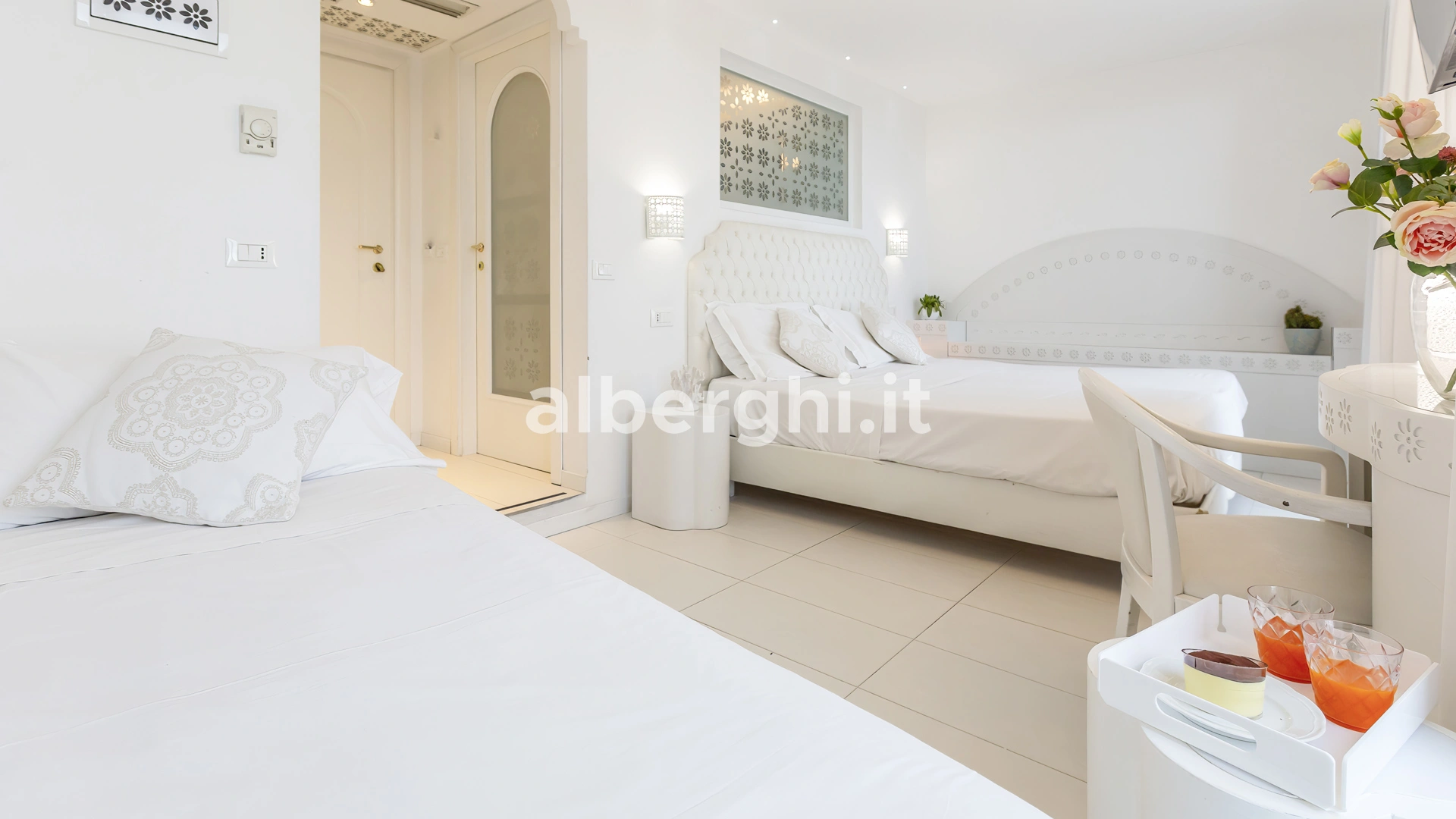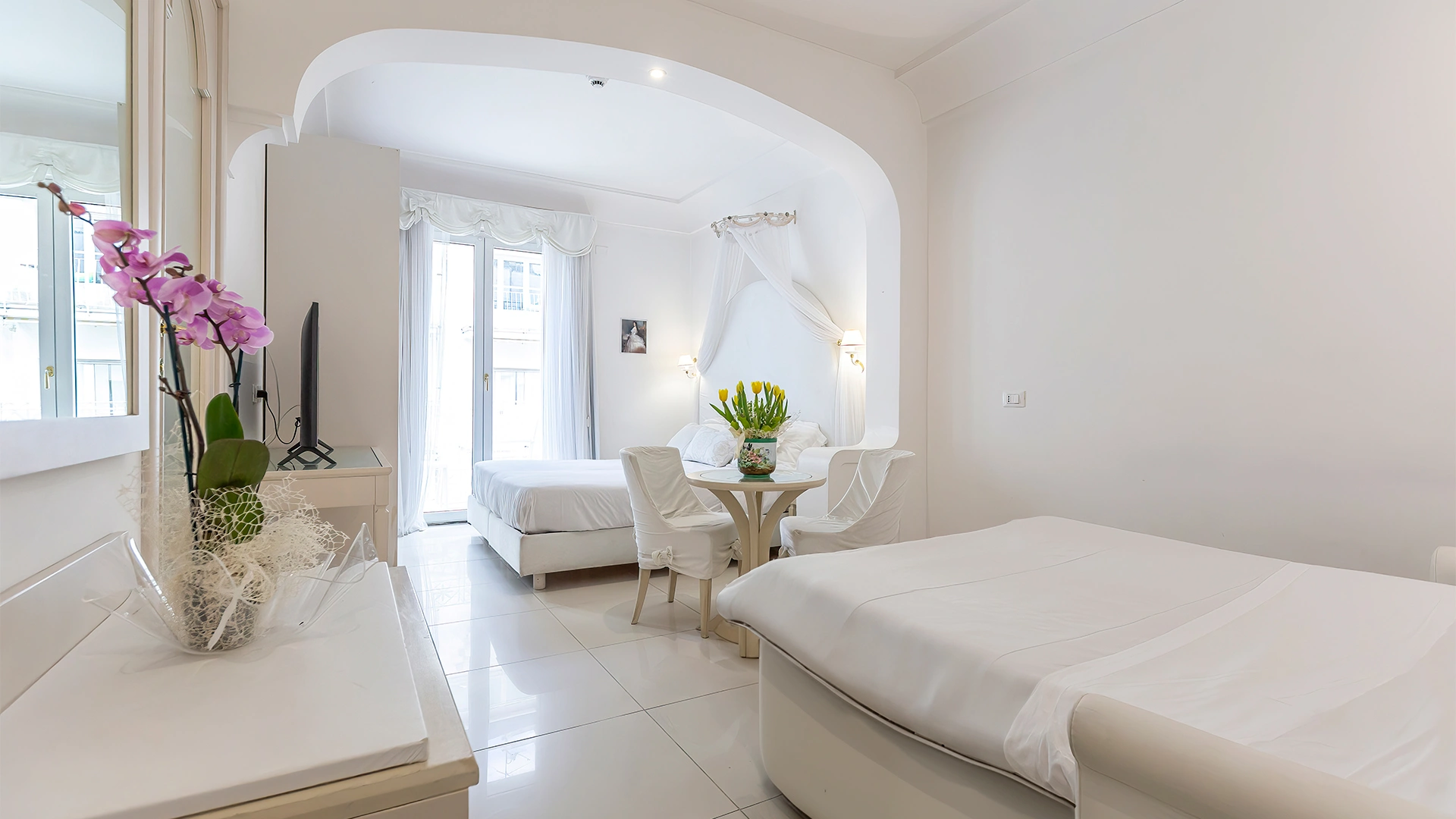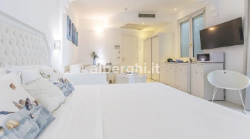 SUITE PRINCESS JUNIOR: de style romantique, balcon donnant sur le quai ou Viale Dante, salle de bain avec douche hydromassante et chromothérapie, lavabo en cristal.
