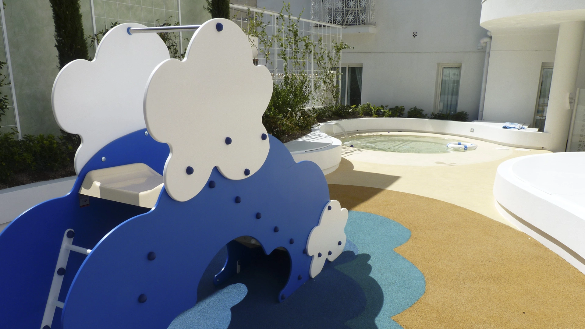 Sur la plage: piscine pour enfants, animations, aires de jeux en sable, aire de jeux.