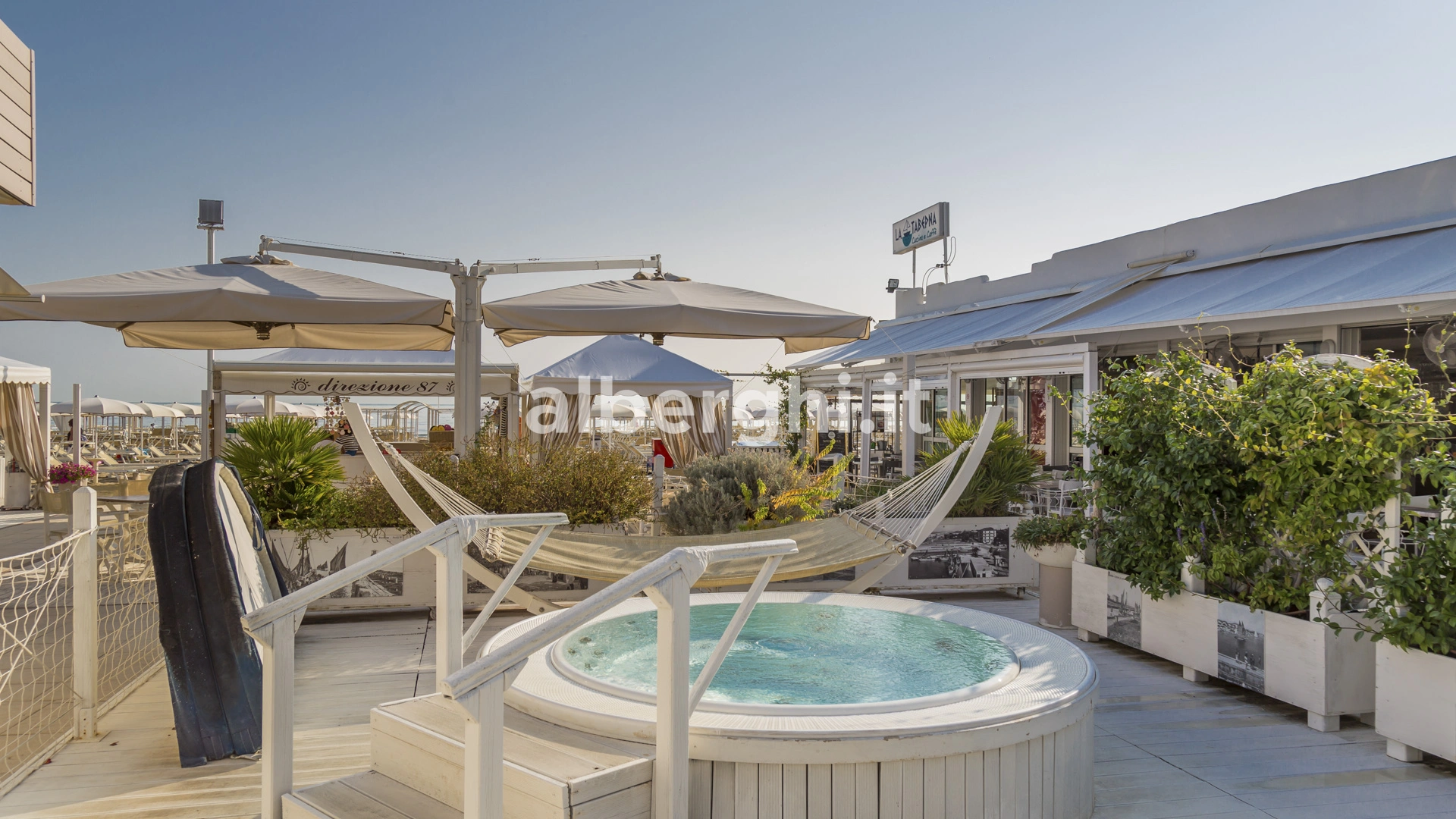 L'hôtel a un accord avec l'établissement balnéaire Spiaggia del Sole n.86/87, équipé de 2 piscines, douches chaudes, 5 aires de jeux, mini club, crèche, table de ping-pong, petit terrain de basket. Les clients de l'hôtel peuvent également profiter de l'accord avec Bagno n.90 équipé d'un espace pour chiens.