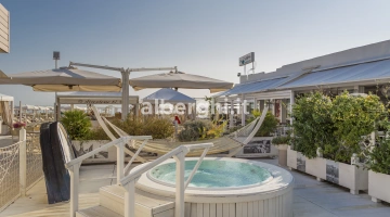 Jardin sur le toit avec grande baignoire d'hydromassage, véranda en plein air, terrasse solarium panoramique, petite salle de réunion, journaux, buanderie extérieure.